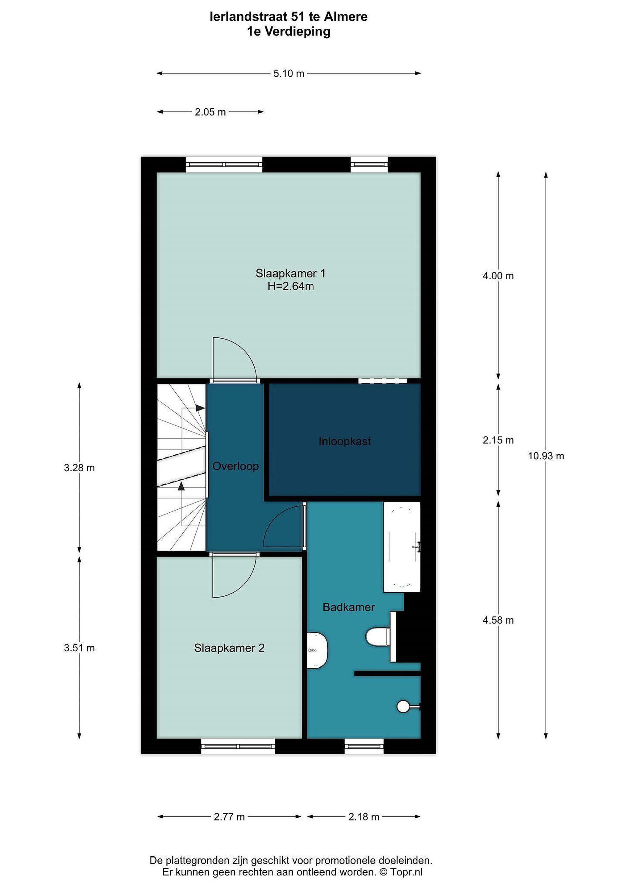 Twee slaapkamers, waarvan één met een ruime inloopkast