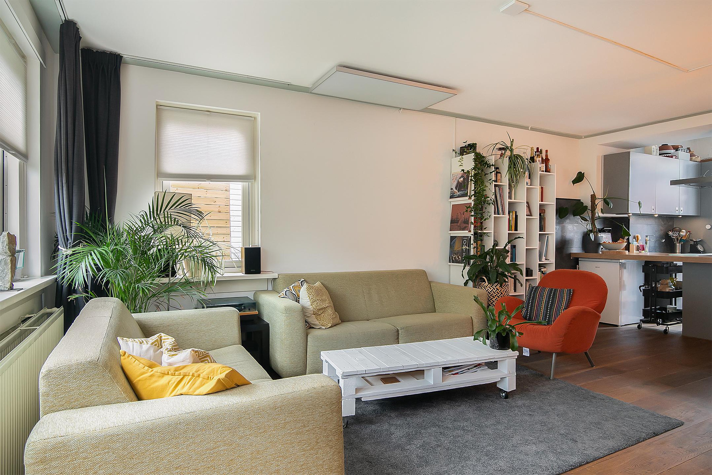 - Lichte woonkamer met open keuken aan de achterzijde