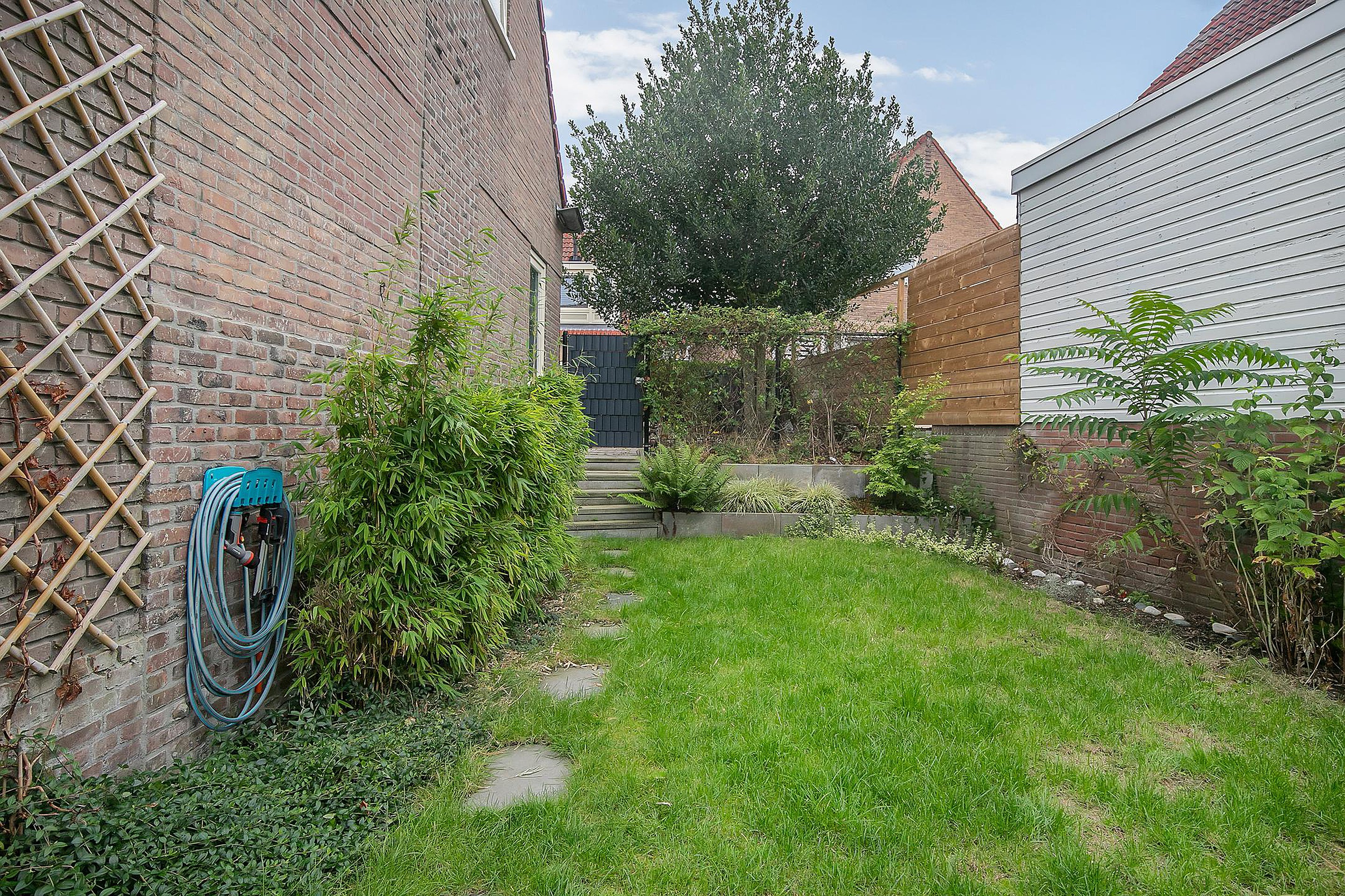 -Grote tuin met achterom en schuur