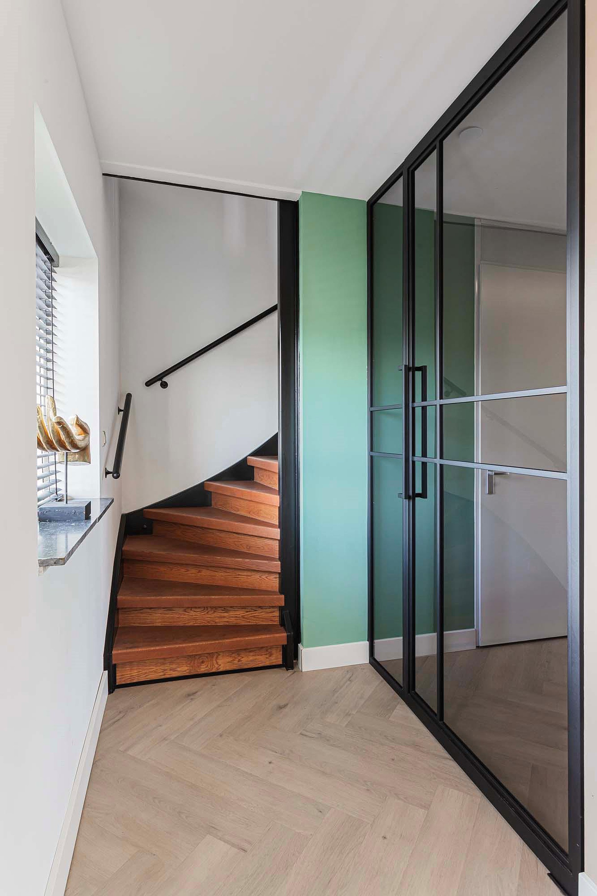 Vanuit deze verdieping leidt een vaste trap naar de bovenste etage.