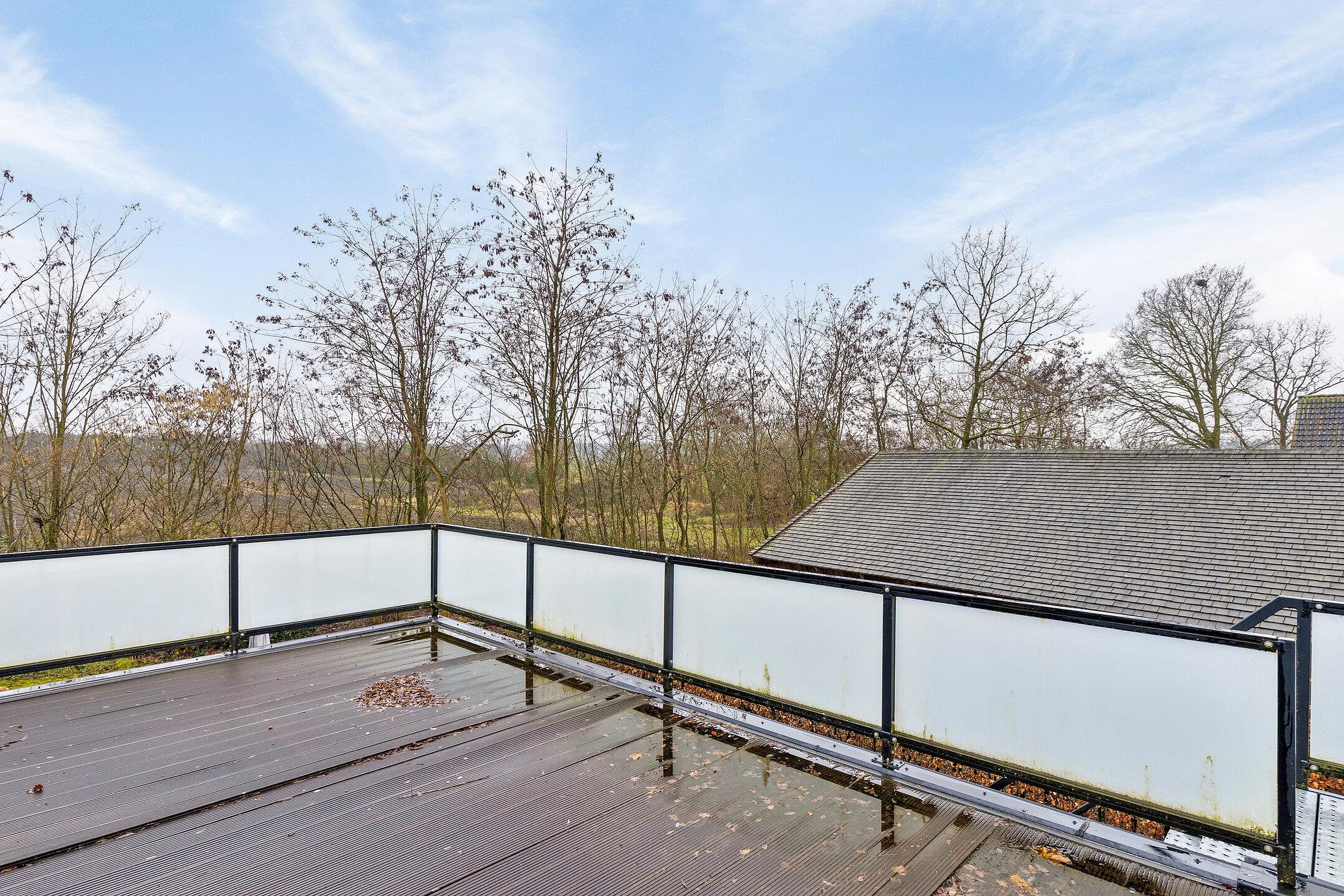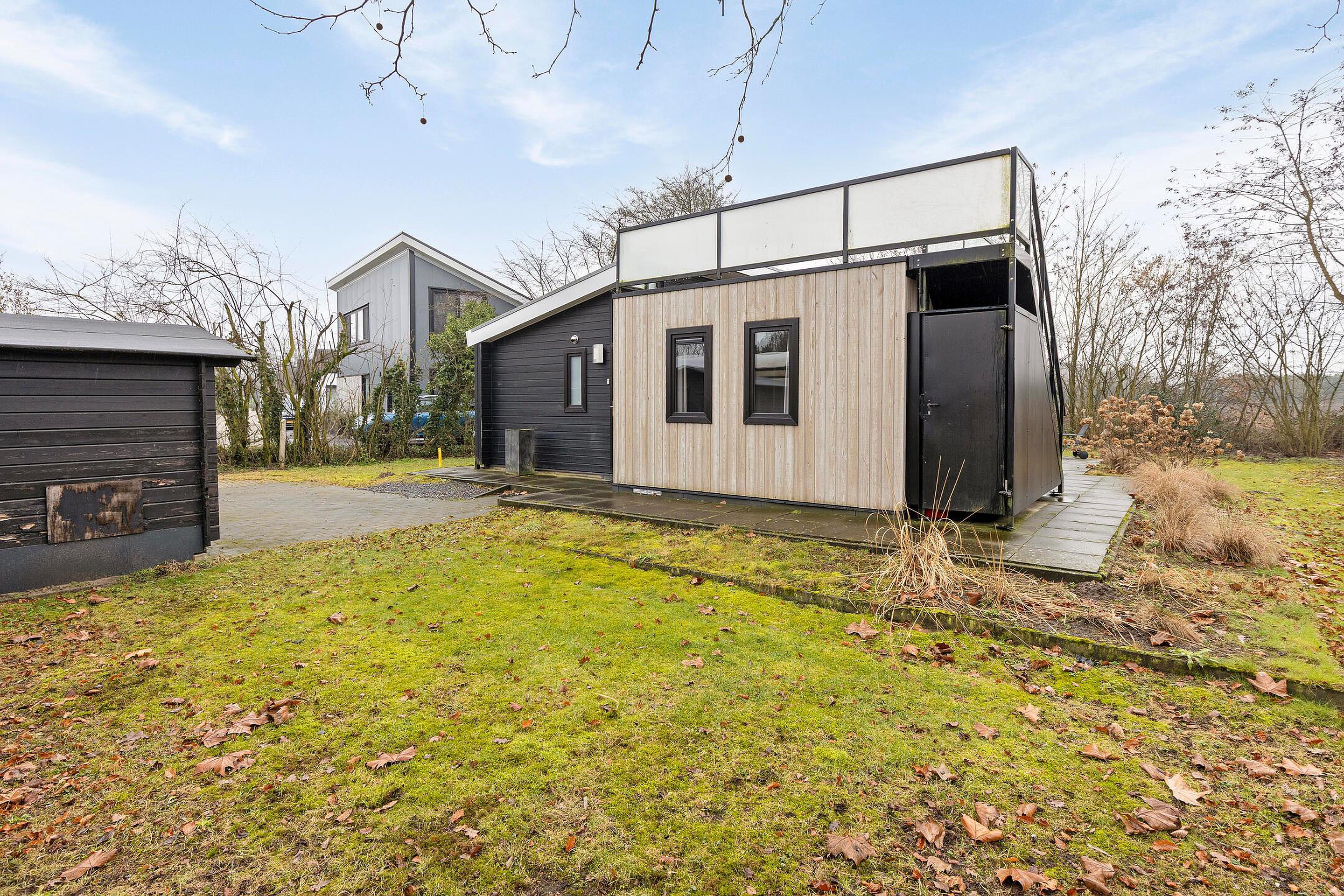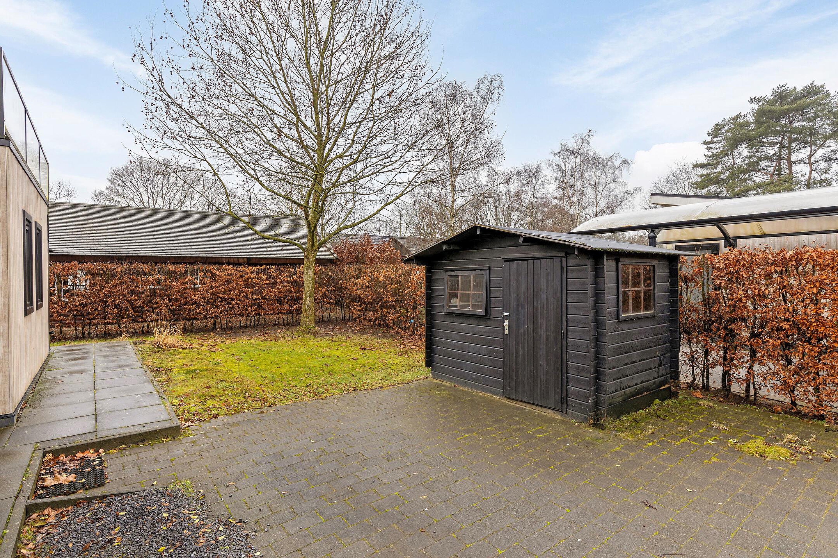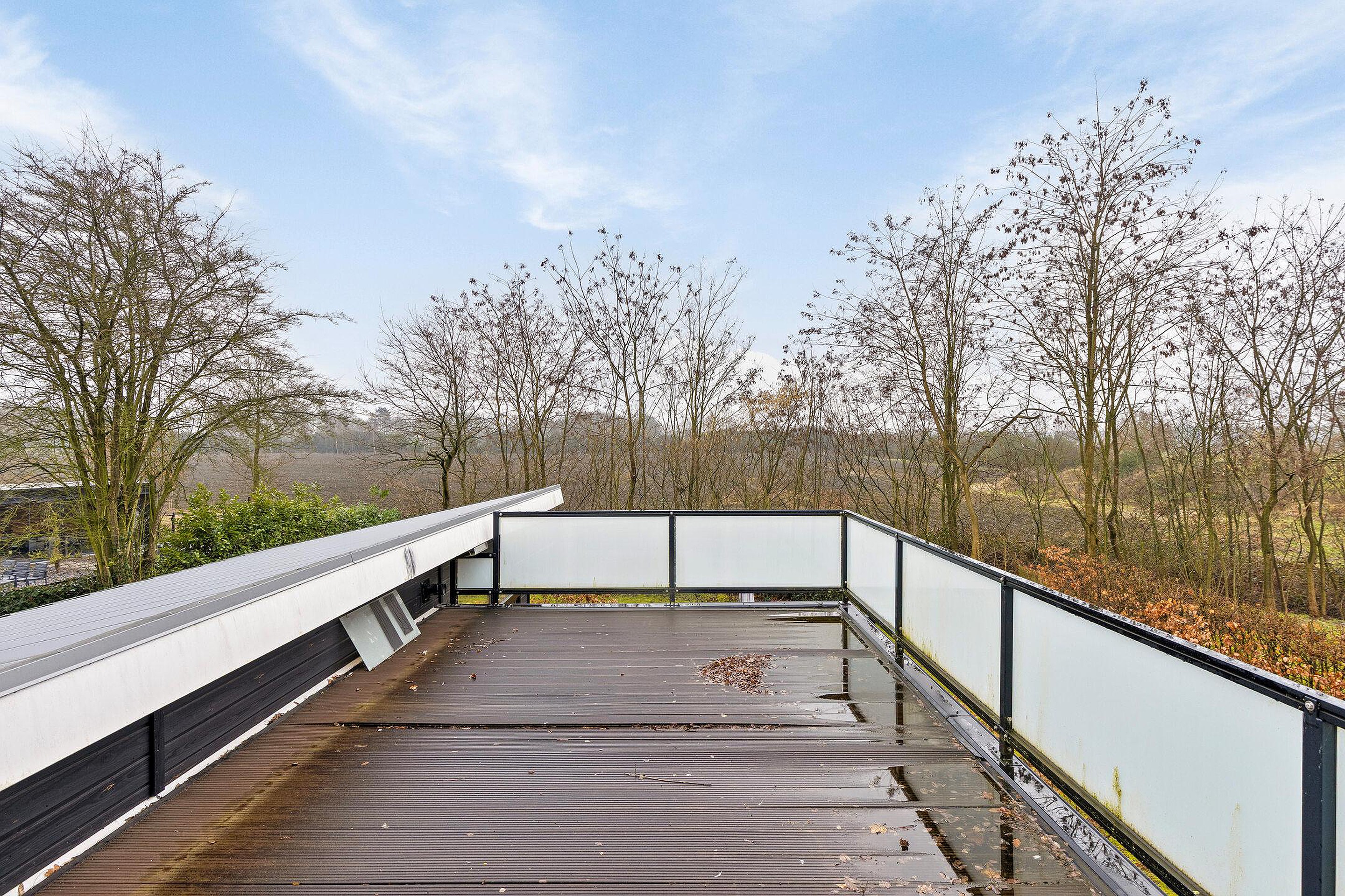 Het royale terras is een heerlijke plek om te ontspannen, te eten of te genieten van de zon. Via de trap bereik je het dakterras, hier kun je heerlijk genieten van zon. De vrijstaande berging biedt extra opslagruimte voor fietsen, tuingereedschap of hobbyspullen.