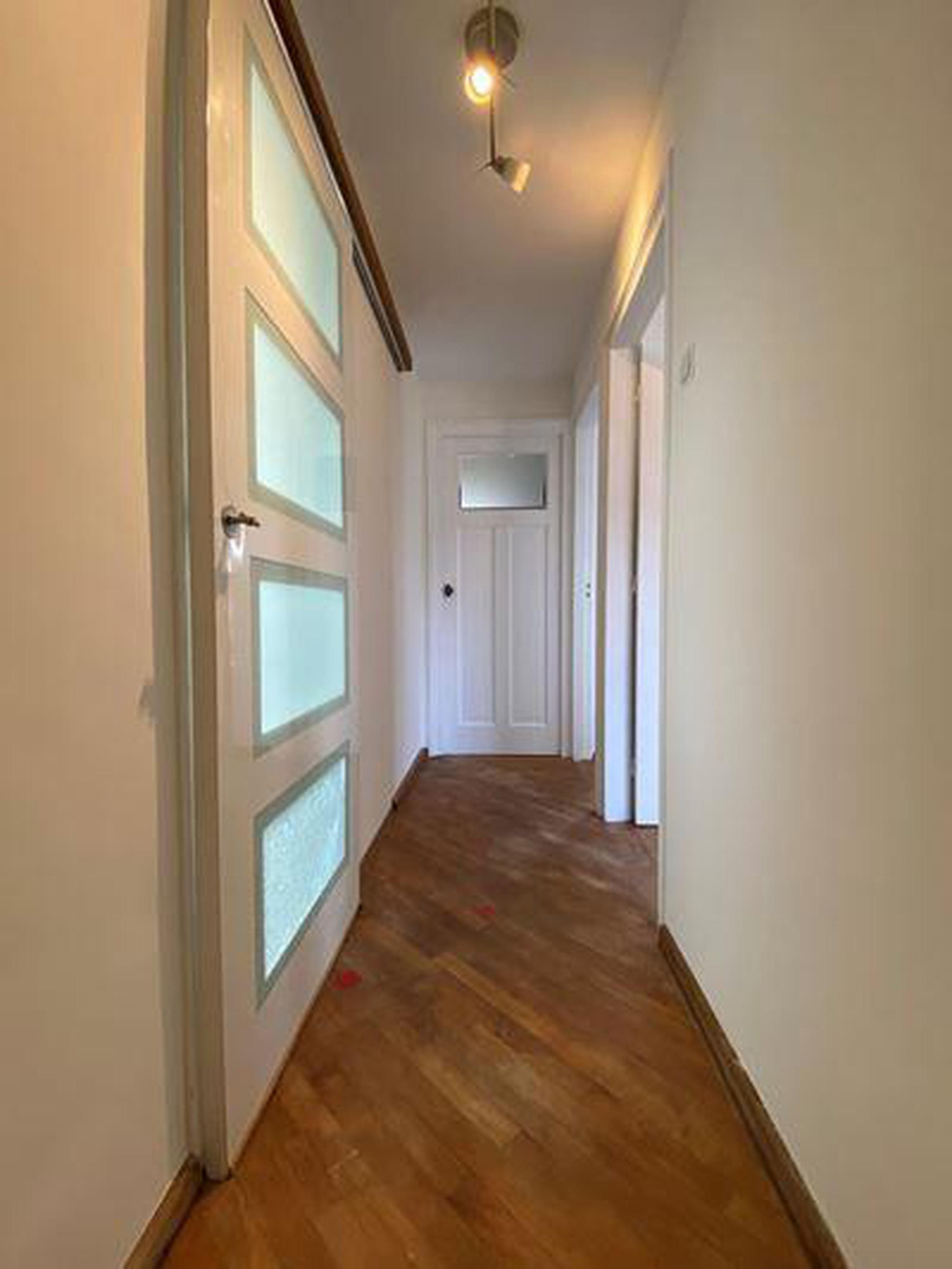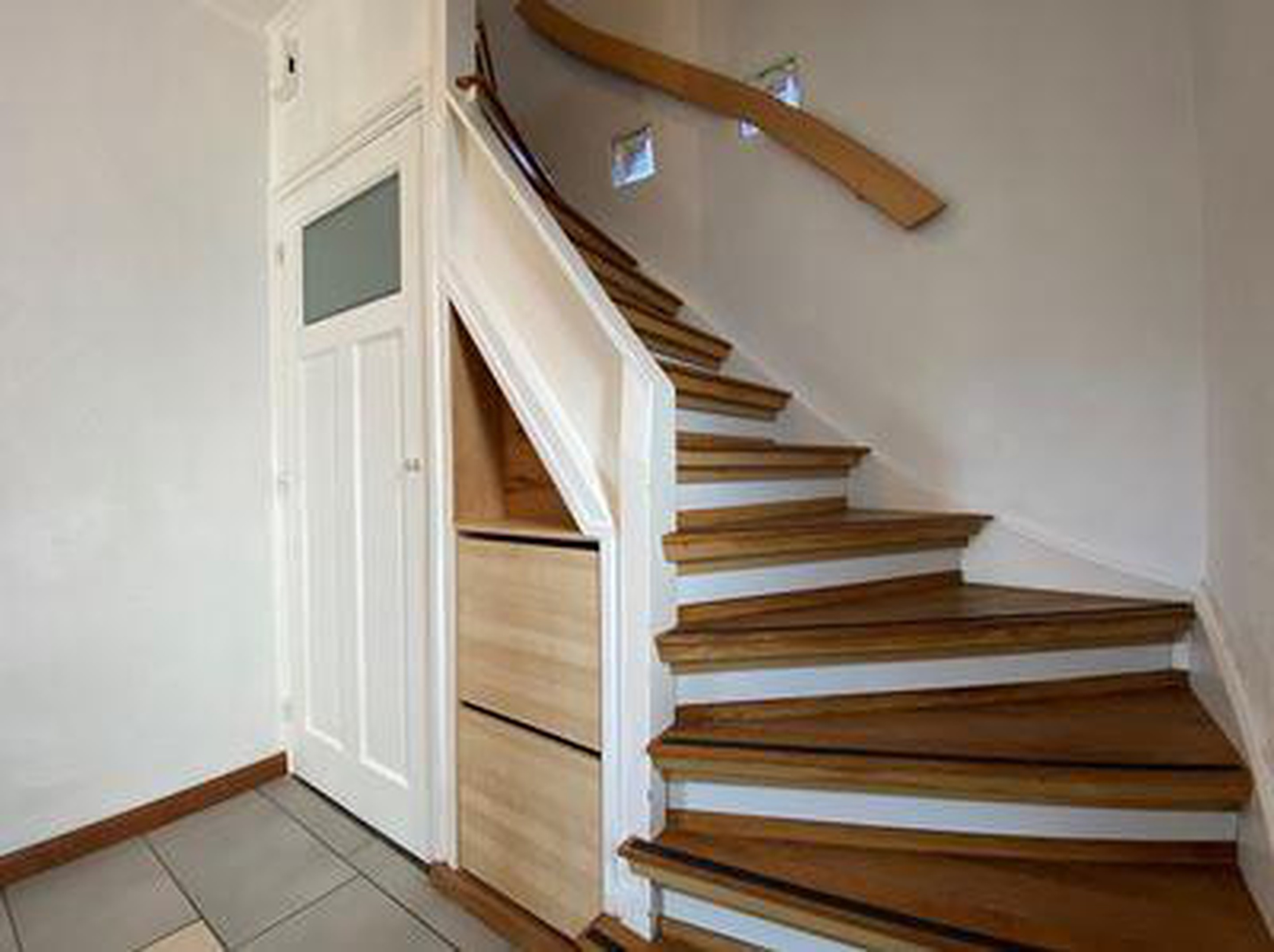 Bij binnenkomst in de hal vindt u het gastentoilet met fonteintje. Via een stijlvolle schuifdeur bereikt u de ruime L-vormige woonkamer. Dankzij de vele raampartijen geniet u hier de hele dag door van een prachtige lichtinval.