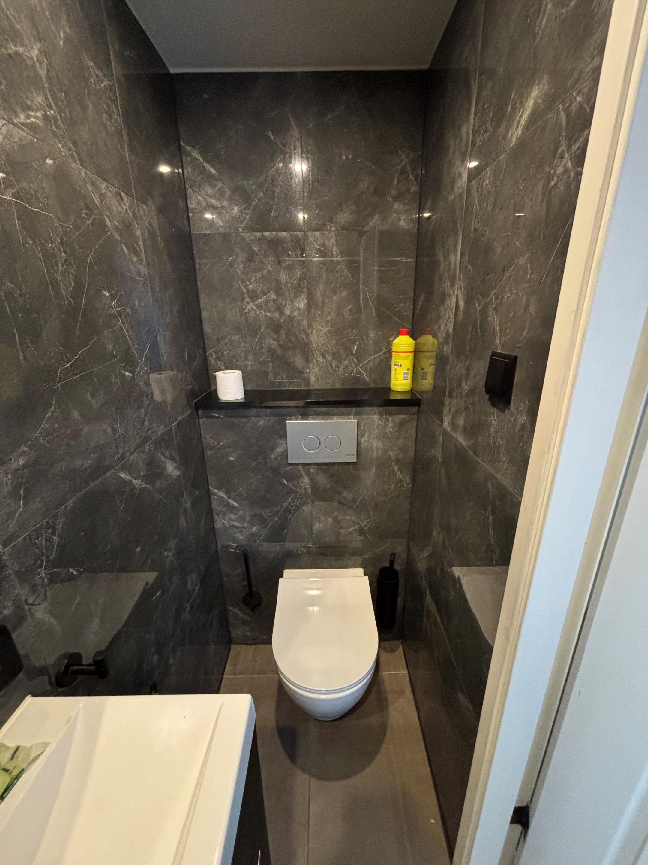 Upon entering, you step directly into the bright living room. The living area is elegantly finished and filled with natural light, creating an open and spacious feel. The living room is equipped with its own air conditioning unit.