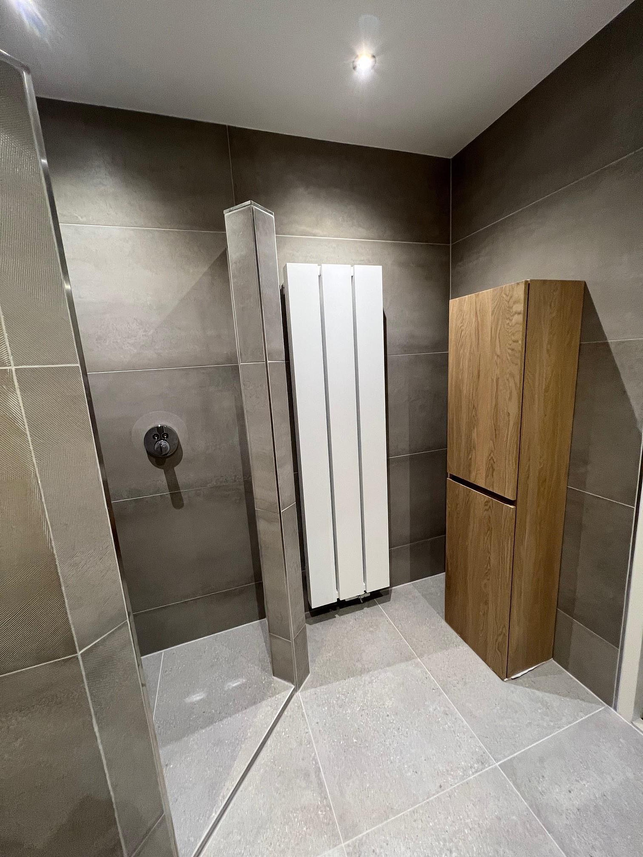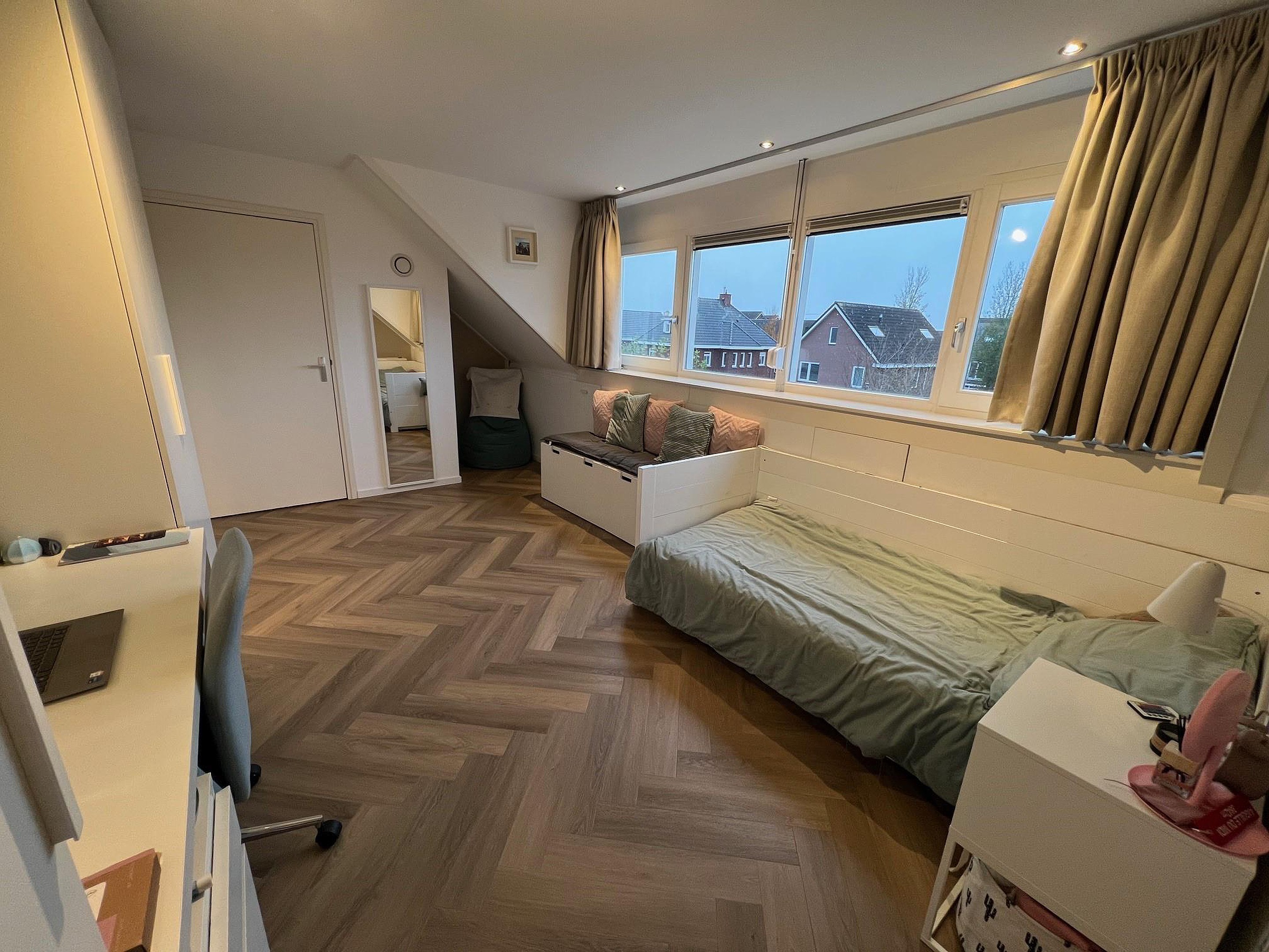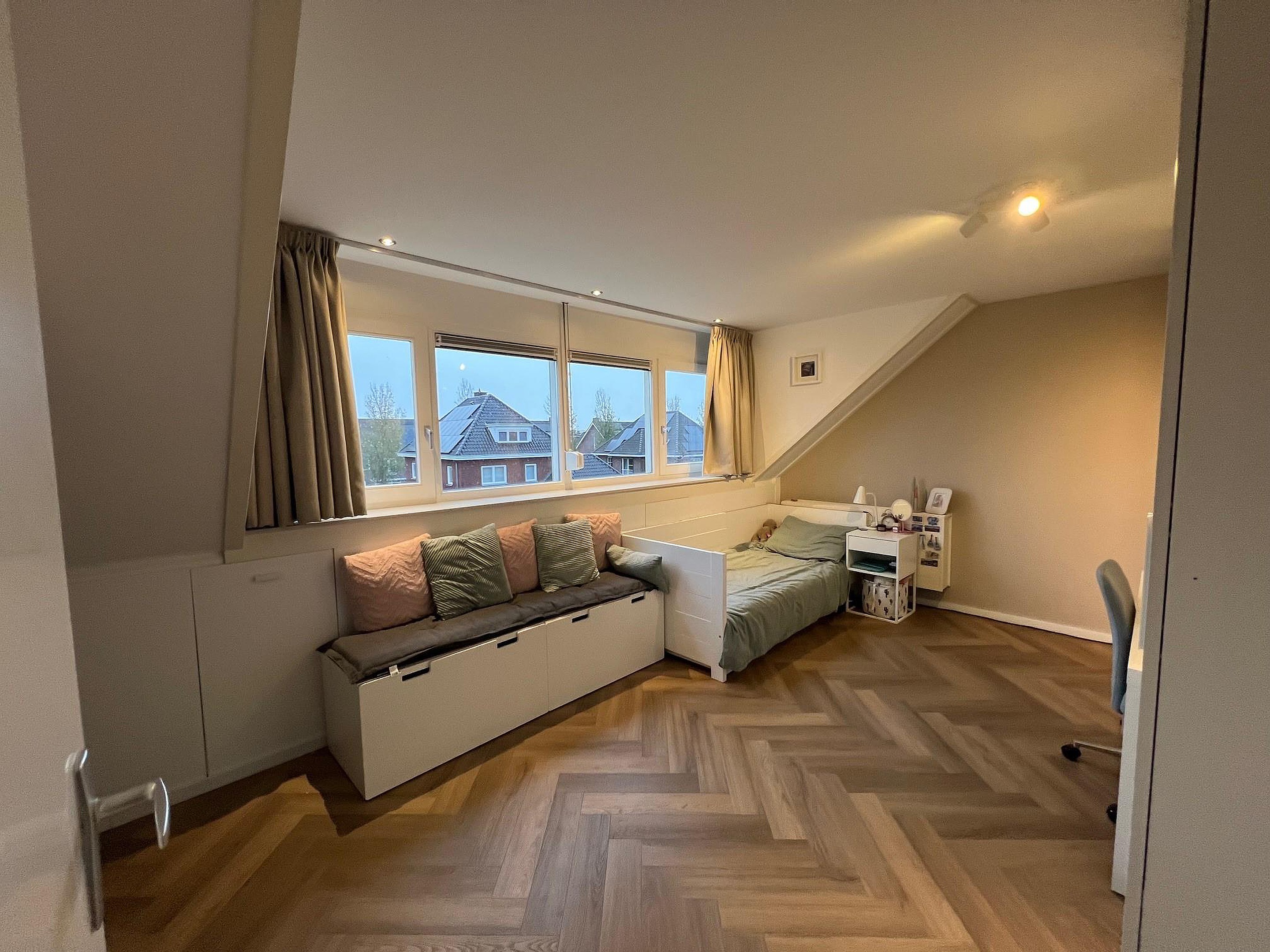 Op de eerste verdieping bevinden zich drie mooi afgewerkte slaapkamers en een strakke in 2025 vernieuwde badkamer met dubbele wastafel, inloopdouche en luxe eikenhouten afwerking. Het toilet is separaat en eveneens vernieuwd. Ook op de eerste verdieping is de staat van onderhoud meer dan uitstekend te noemen.
