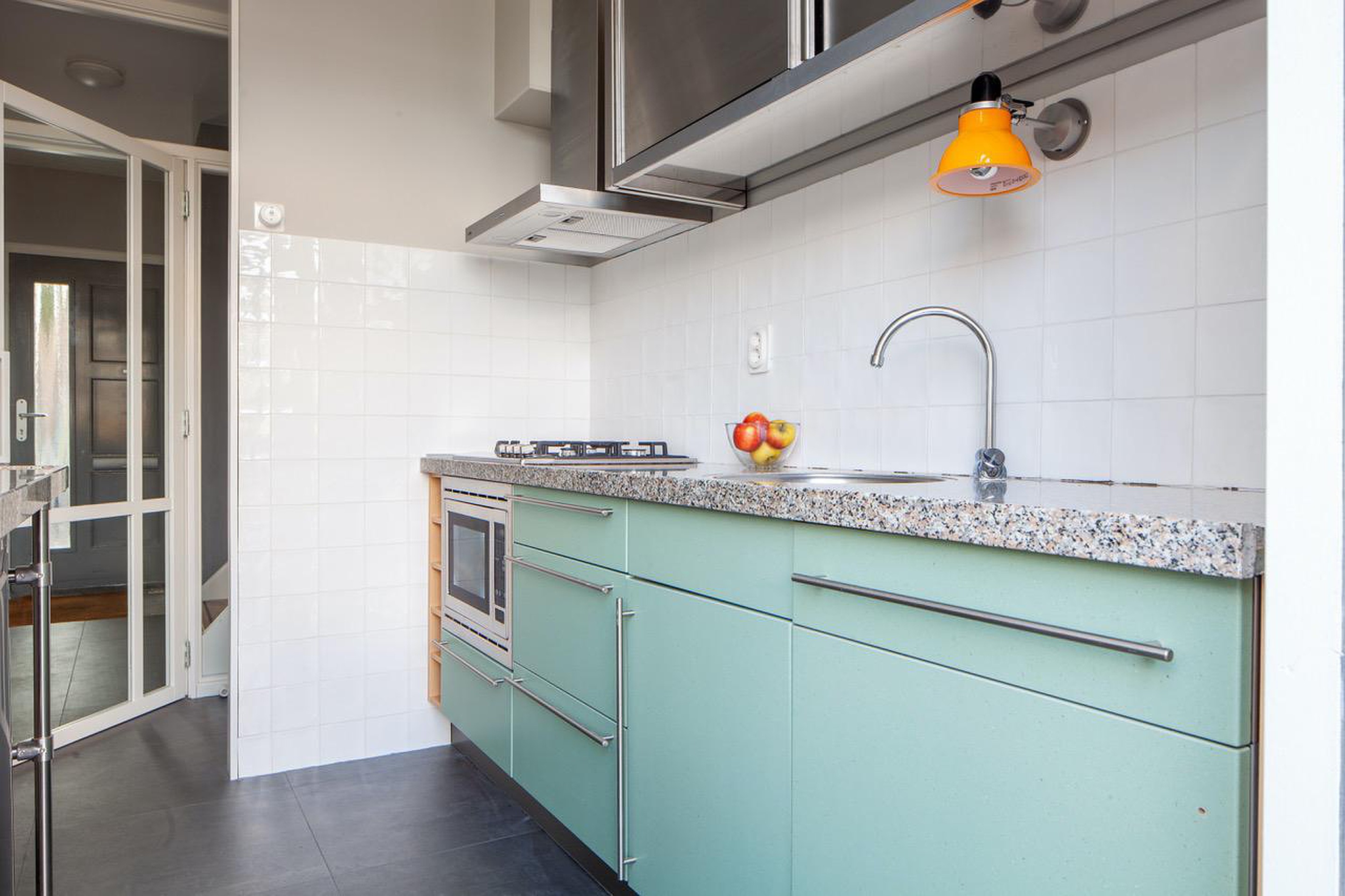 Through the entrance hall with a separate toilet on the ground floor, you enter the living room, kitchen, and garden. The living room offers both a comfortable sitting area and a dining area. The kitchen is fully equipped with quality built-in appliances.