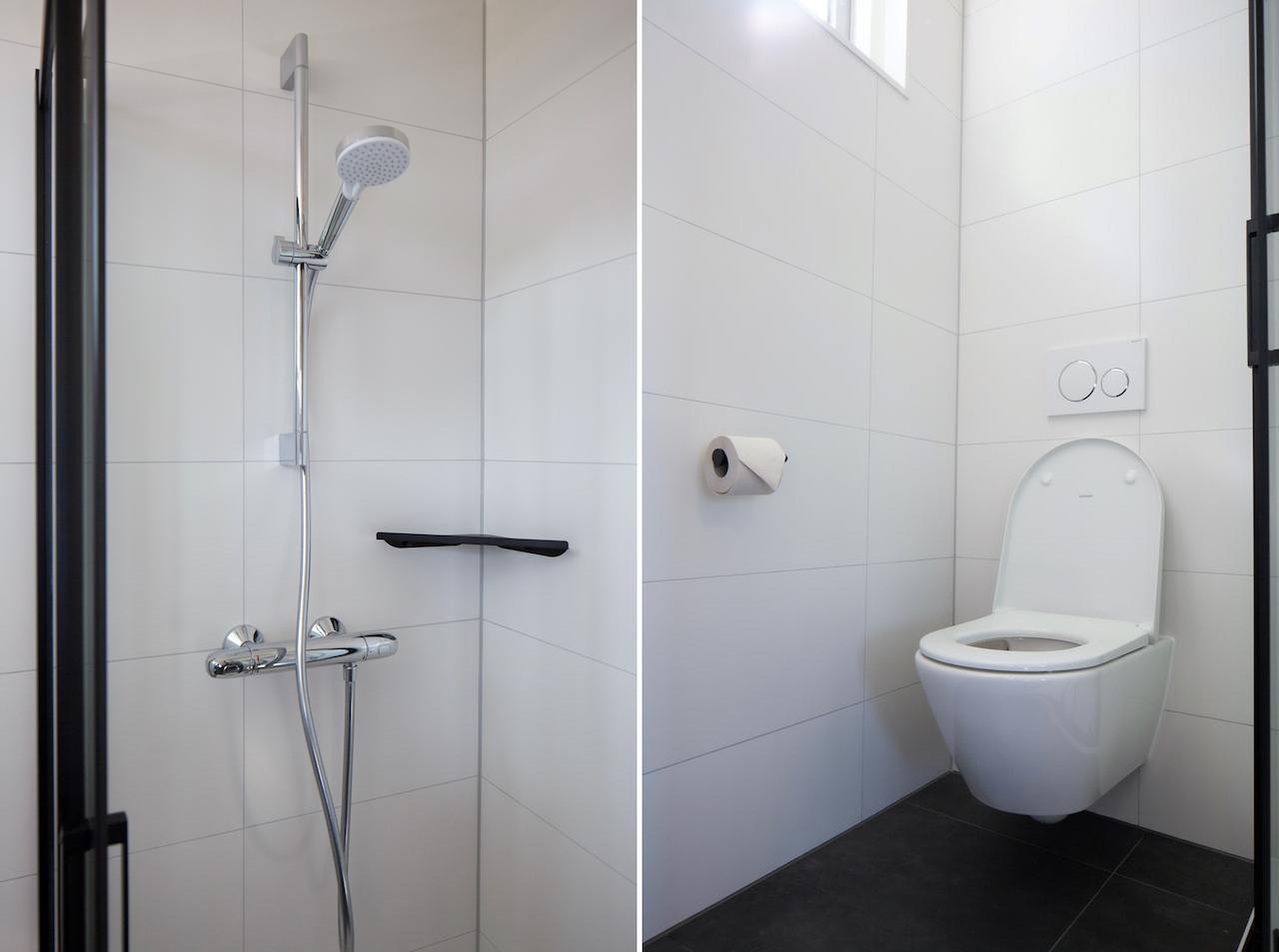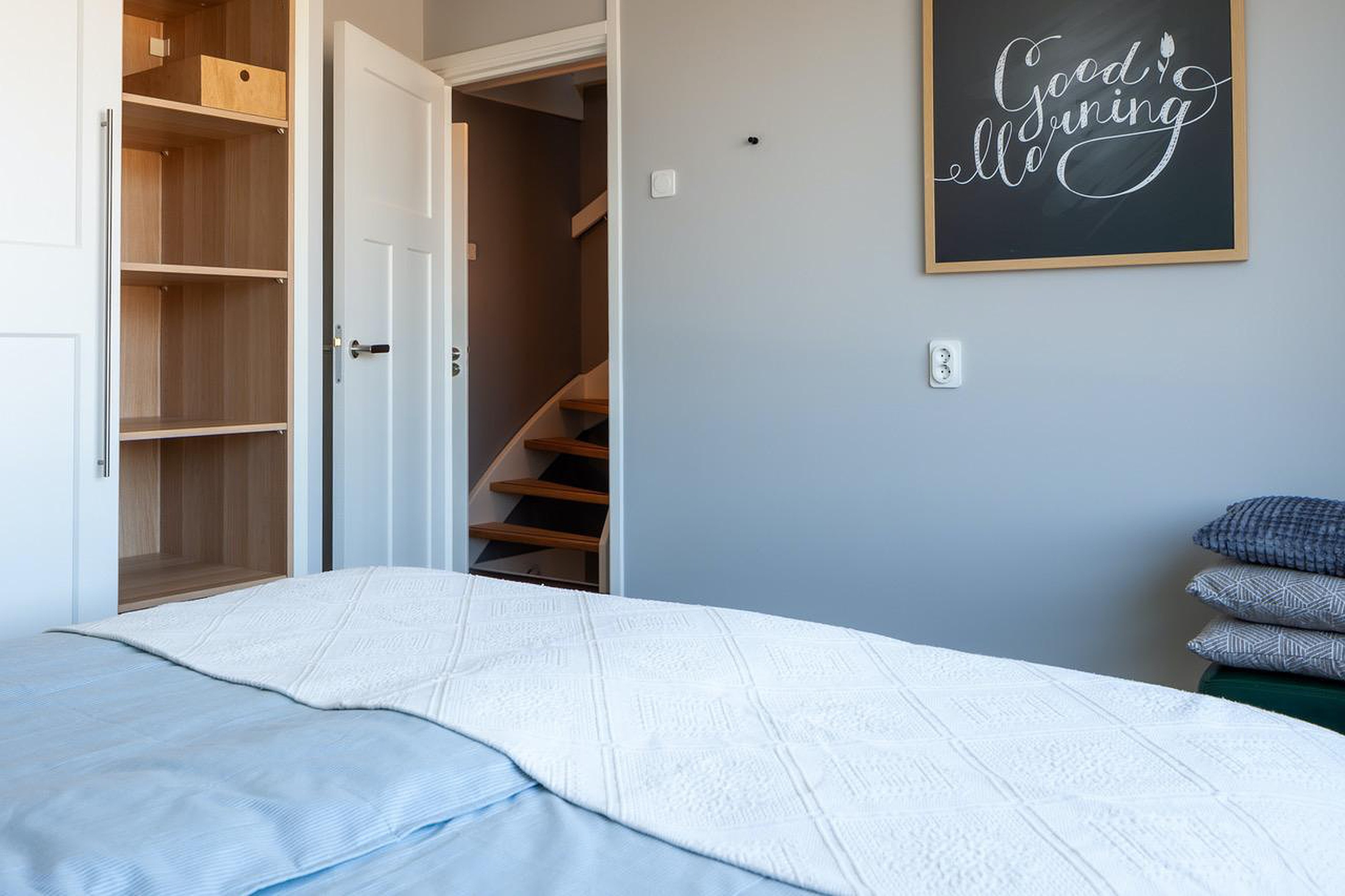 Op de eerste verdieping vinden we 2 ruime slaapkamers en een kleinere kamer, deze is momenteel ingericht als inloopkast maar leent zich ook uitstekend als werk-/studeerkamer. De twee ruime slaapkamers zijn ingericht met tweepersoonsbedden en kledingkasten. Op deze verdieping vinden we tot slot de badkamer met wastafel, toilet en inloopdouche.