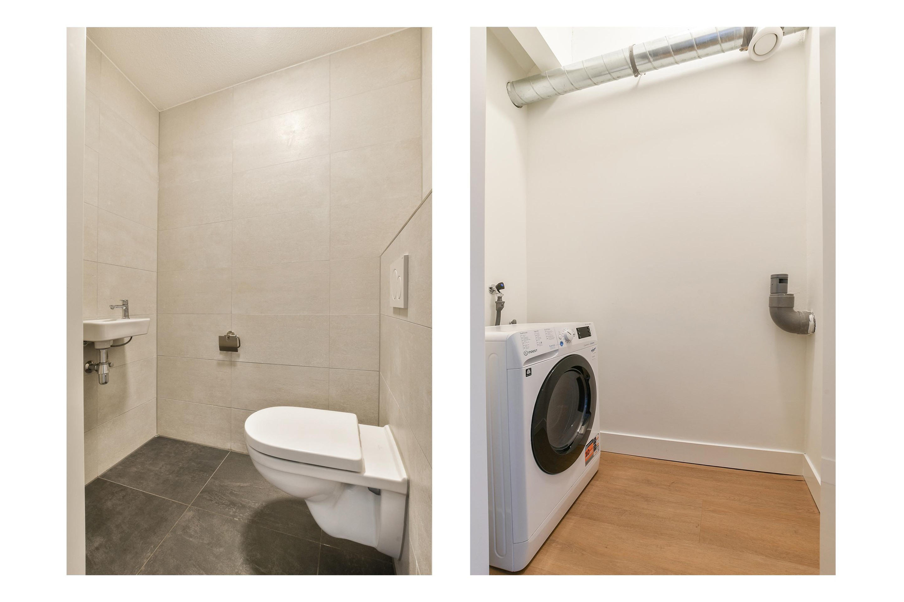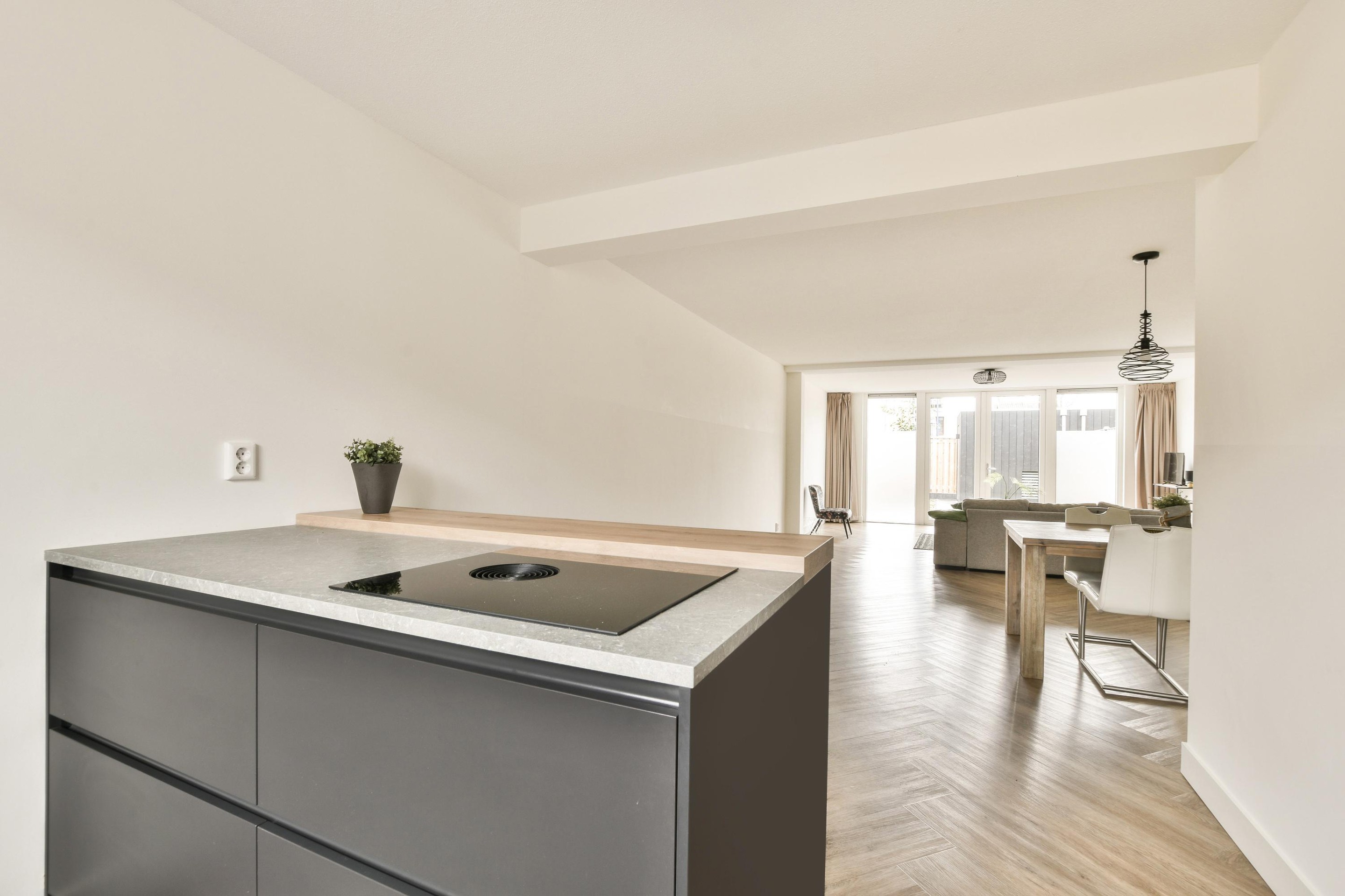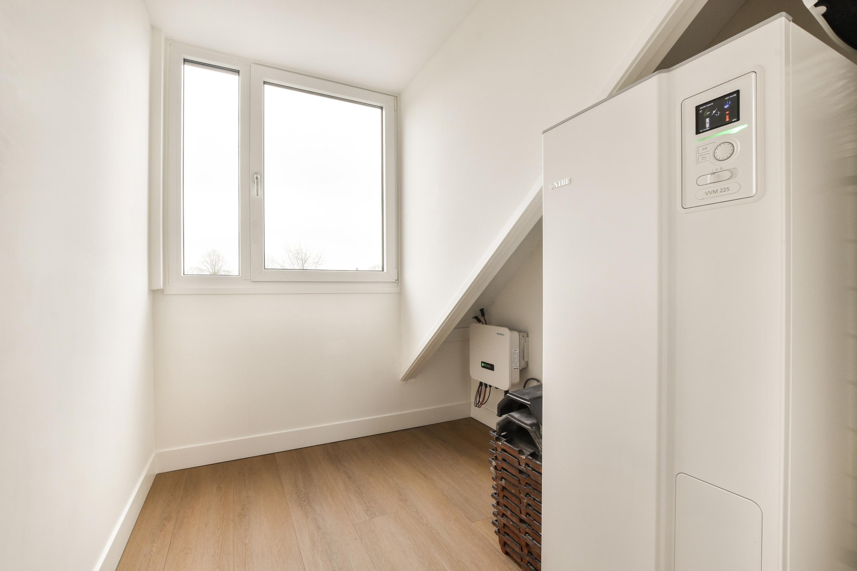 Indeling: Entree/hal, garderobe, toilet met fontein en een trap naar de eerste verdieping. Royale woonkamer, met openslaande deuren naar de achtertuin, de open keuken met inbouwapparatuur en kookeiland bevindt zich aan de voorzijde van de woning. De eerste verdieping met overloop, voorzien van een separaat toilet met fontein en drie twee slaapkamers. De badkamer heeft vloerverwarming, een dubbele wastafel, een douche en een ligbad. Tweede verdieping, overloop met bergkast, twee royale slaapkamers met hoog plafond en dakkapel en een technische ruimte met warmtepomp opstelling, mechanische ventilatie en een separate ruimte met wasmachine/drogeraansluiting.