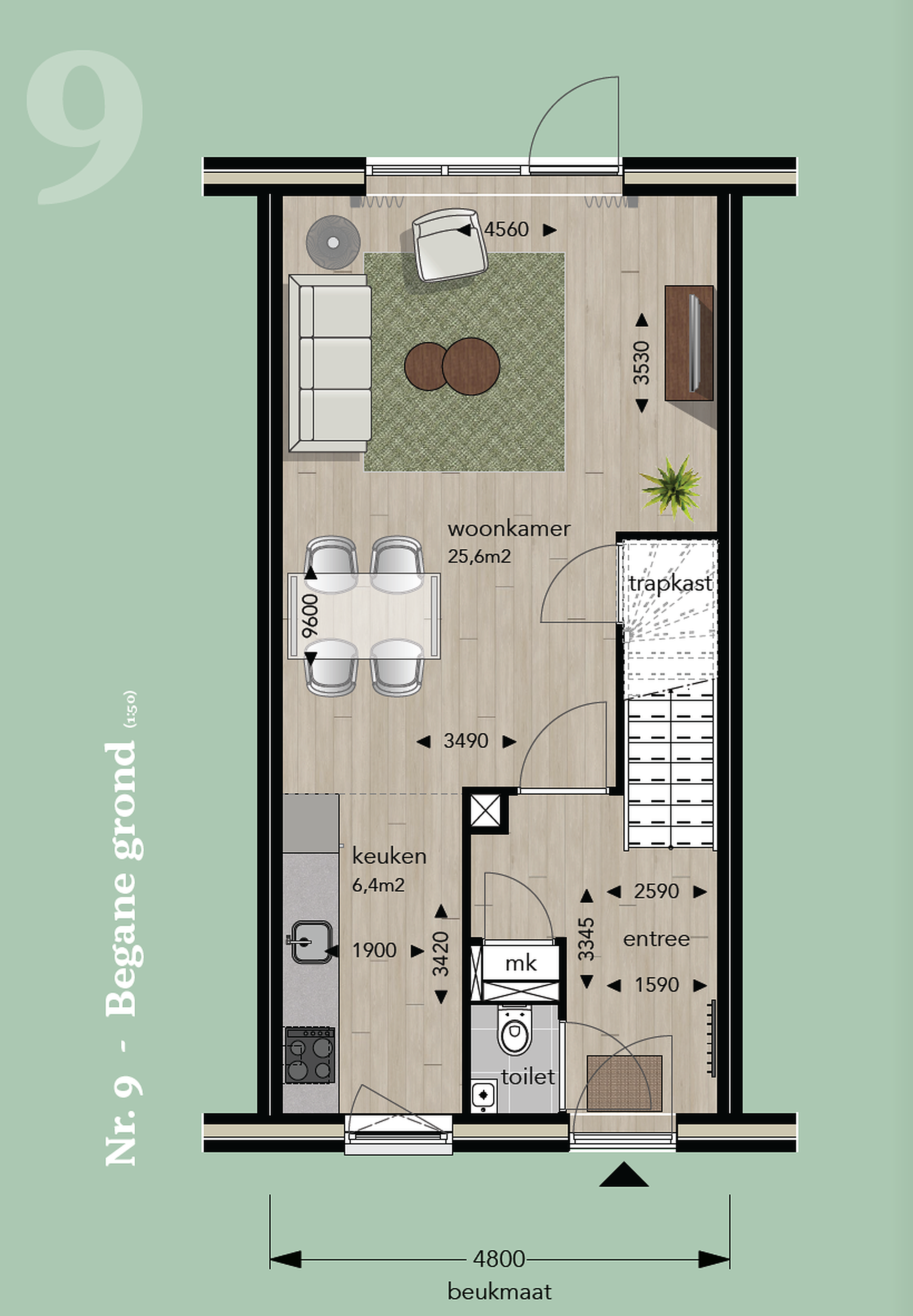 Bouwnummer 2 betreft een tussenwoning met 101 m2 woonplezier