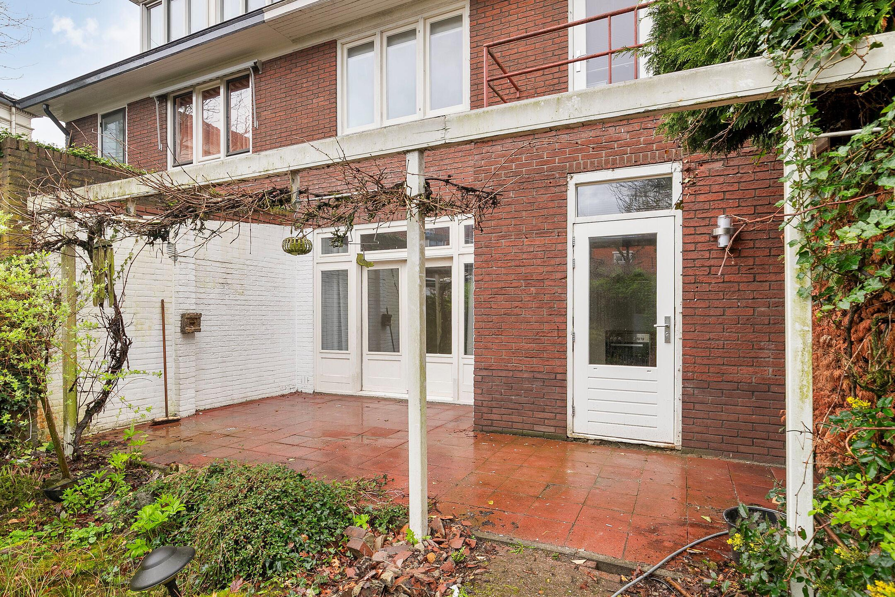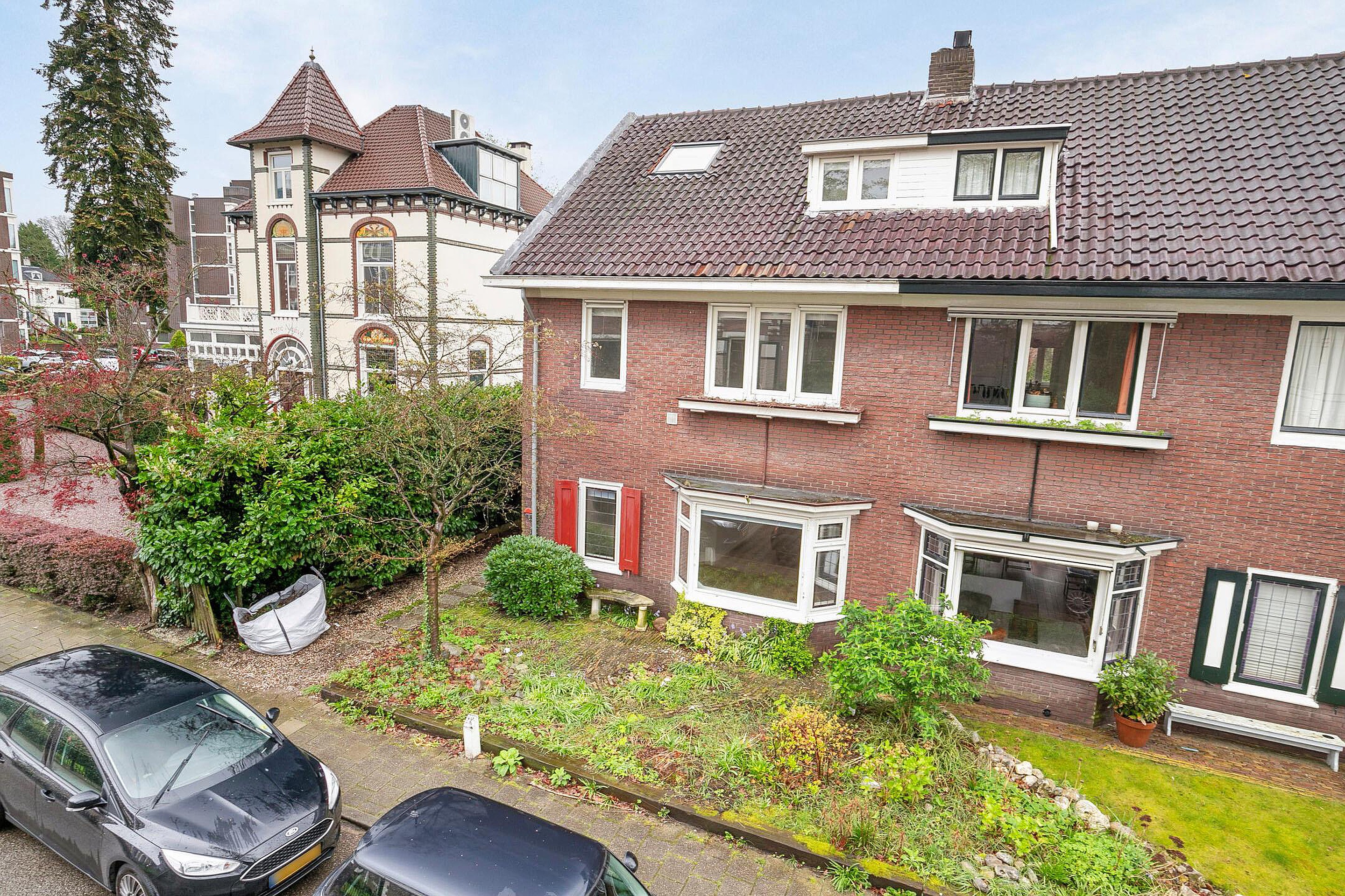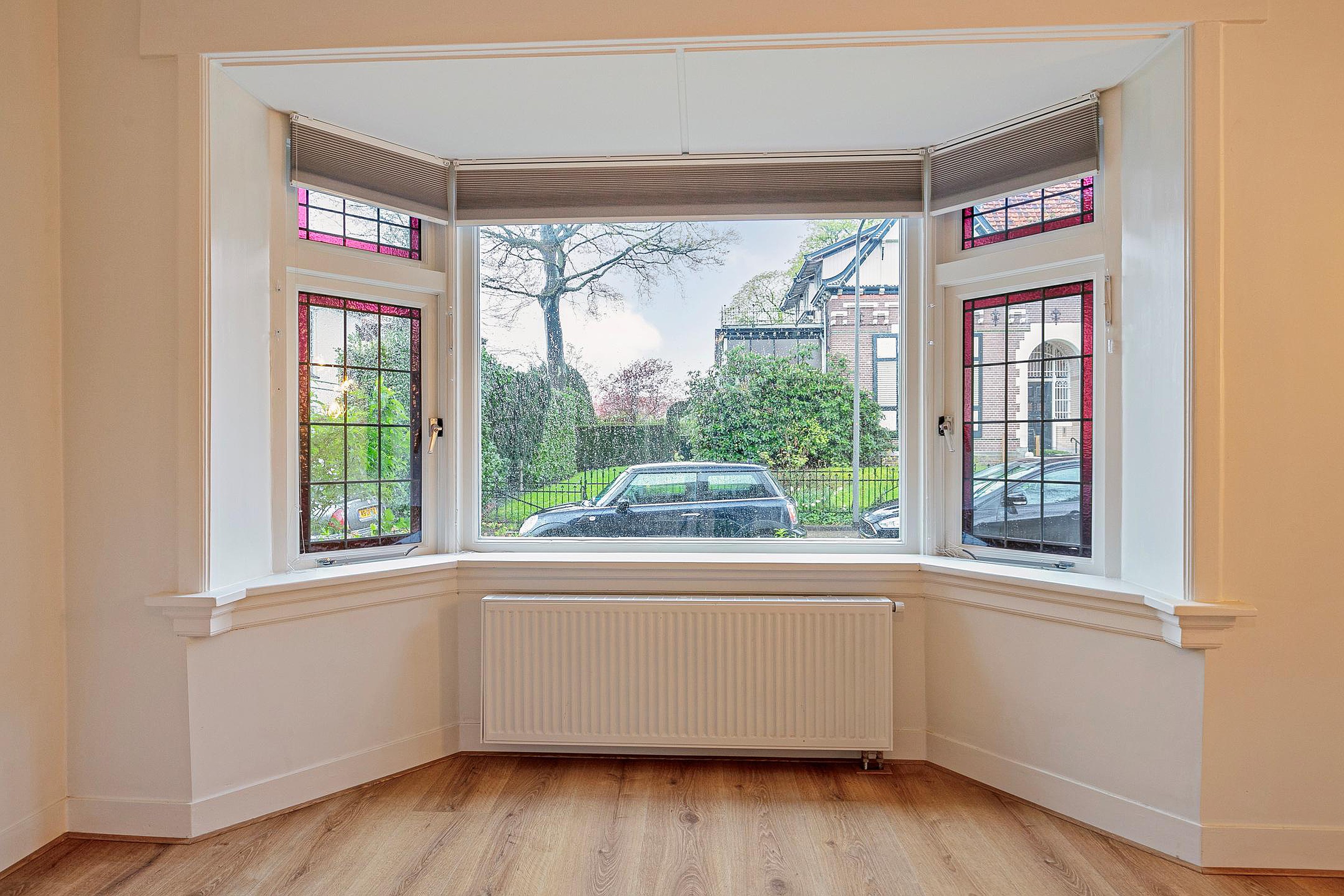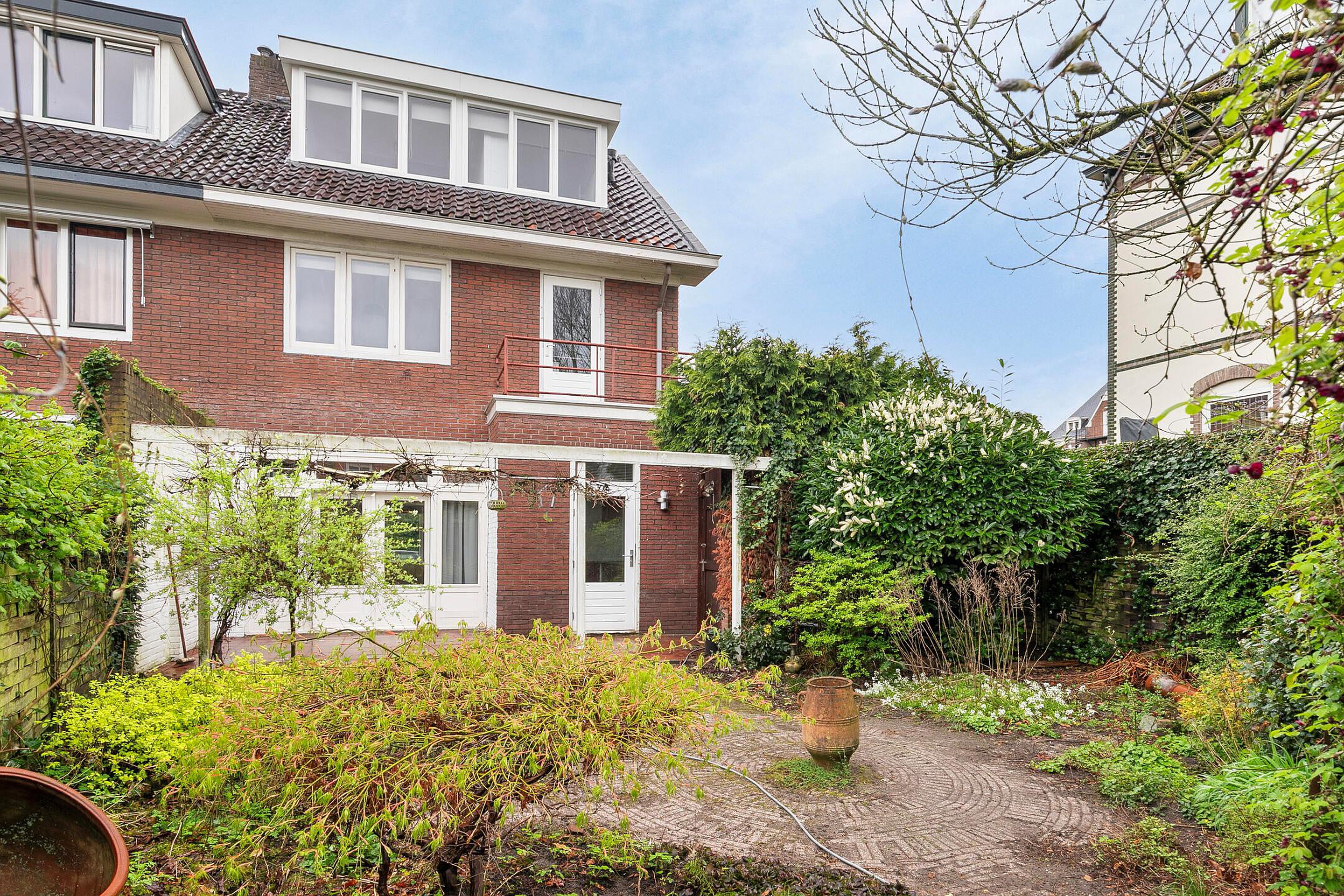 Deze authentieke woning met glas-in-lood ramen ligt aan een rustig straatje in een sfeervolle en lommerrijke omgeving.