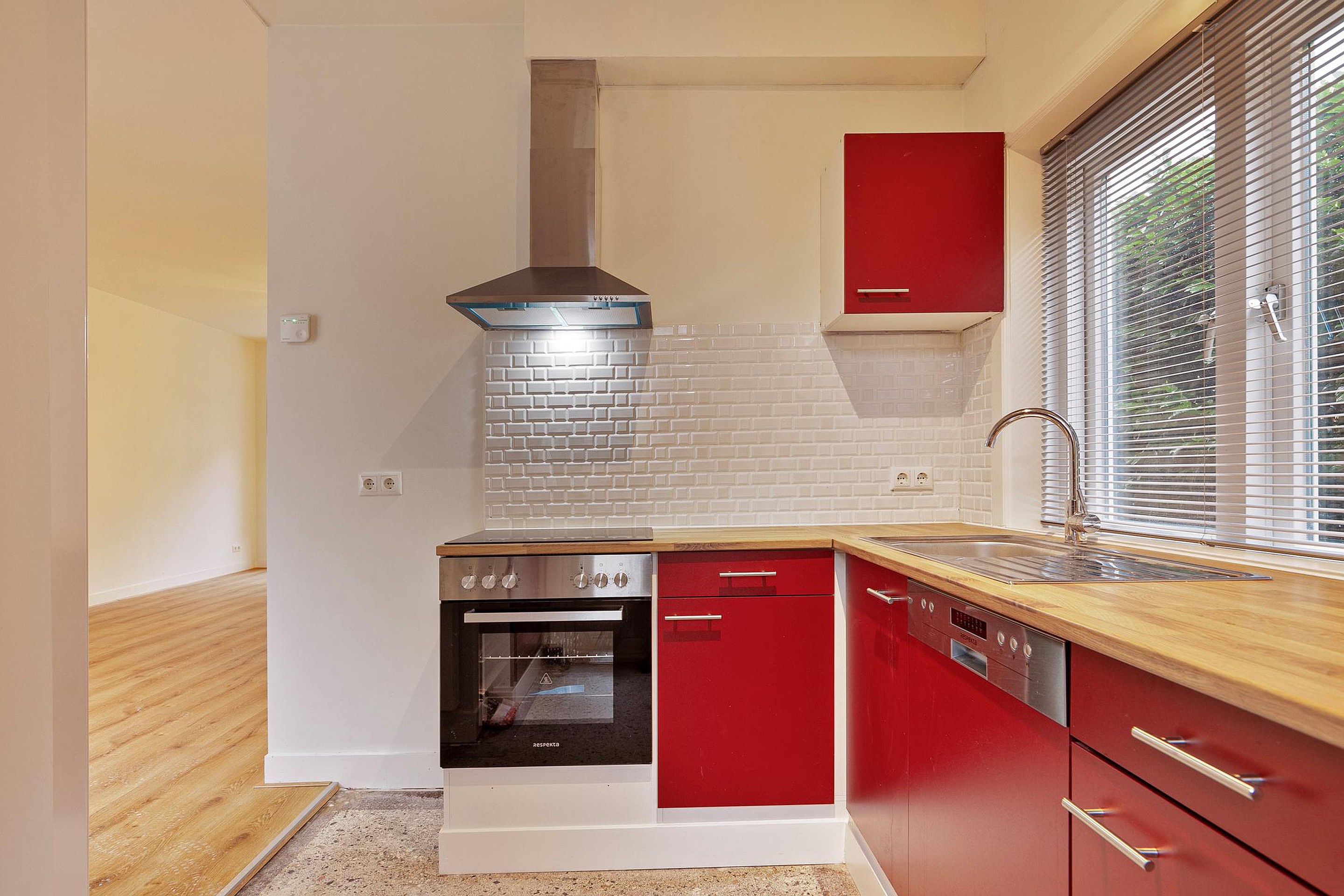 De keuken is voorzien van apparatuur waaronder een inductiekookplaat, een oven, een koelkast, een vaatwasser en een wasmachine.