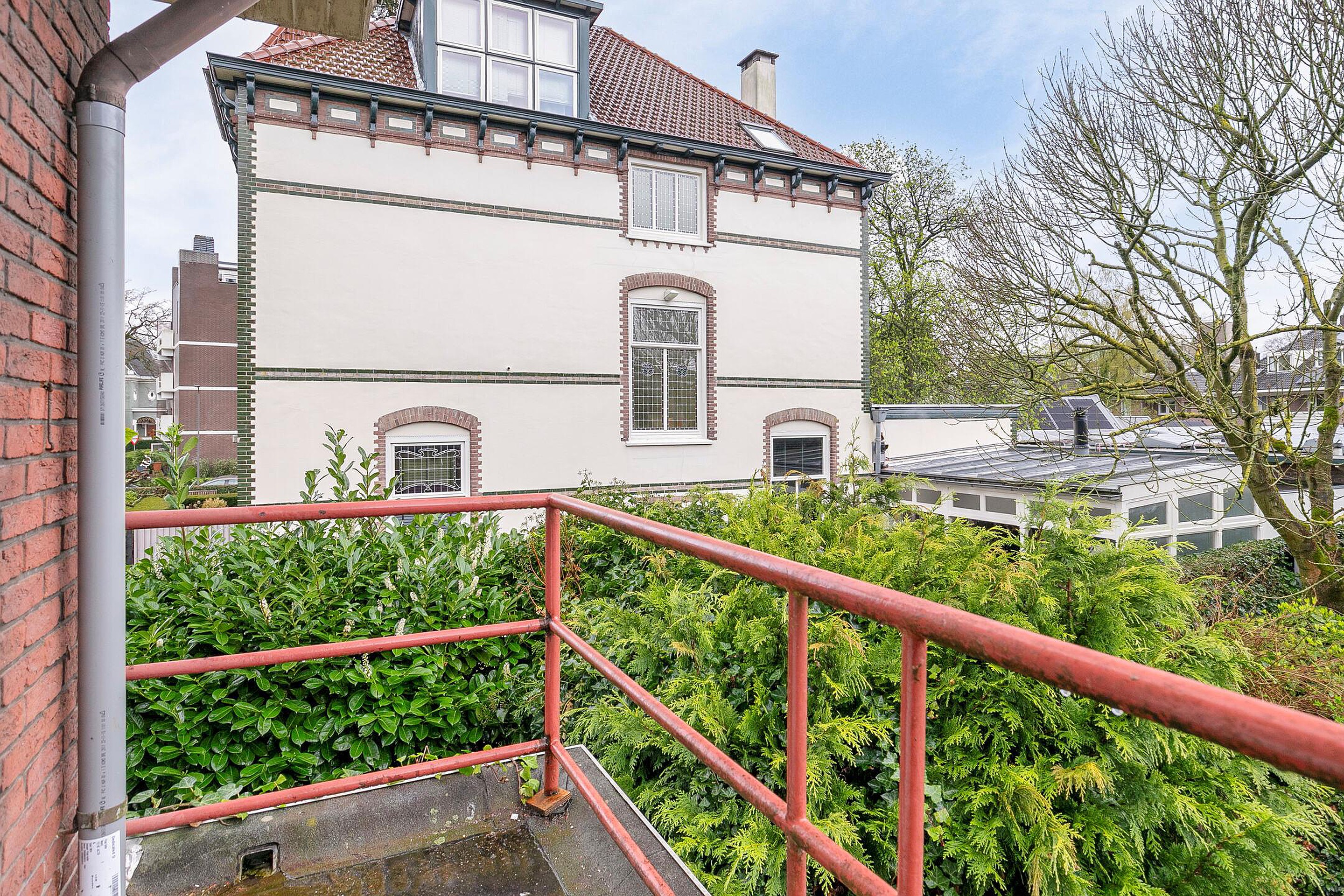 Vanuit de badkamer is er een uitgang naar het balkon, met zicht op de achtertuin.