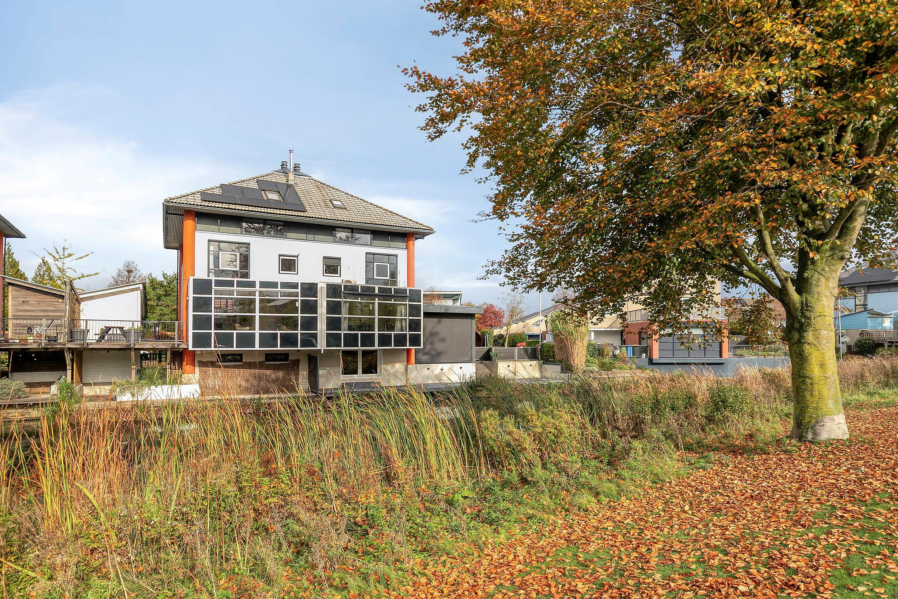 Deze moderne uitgevoerde woning (bouwjaar 1993) onderscheidt zich door haar speelse split-level indeling, grote raampartijen en strakke architectuur, waardoor het hele huis baadt in het licht. De royale tuin op het zuiden biedt volop zon en beschikt over een sfeervol overdekt terras aan het water – een heerlijke plek om te ontspannen en te genieten van lange zomeravonden.