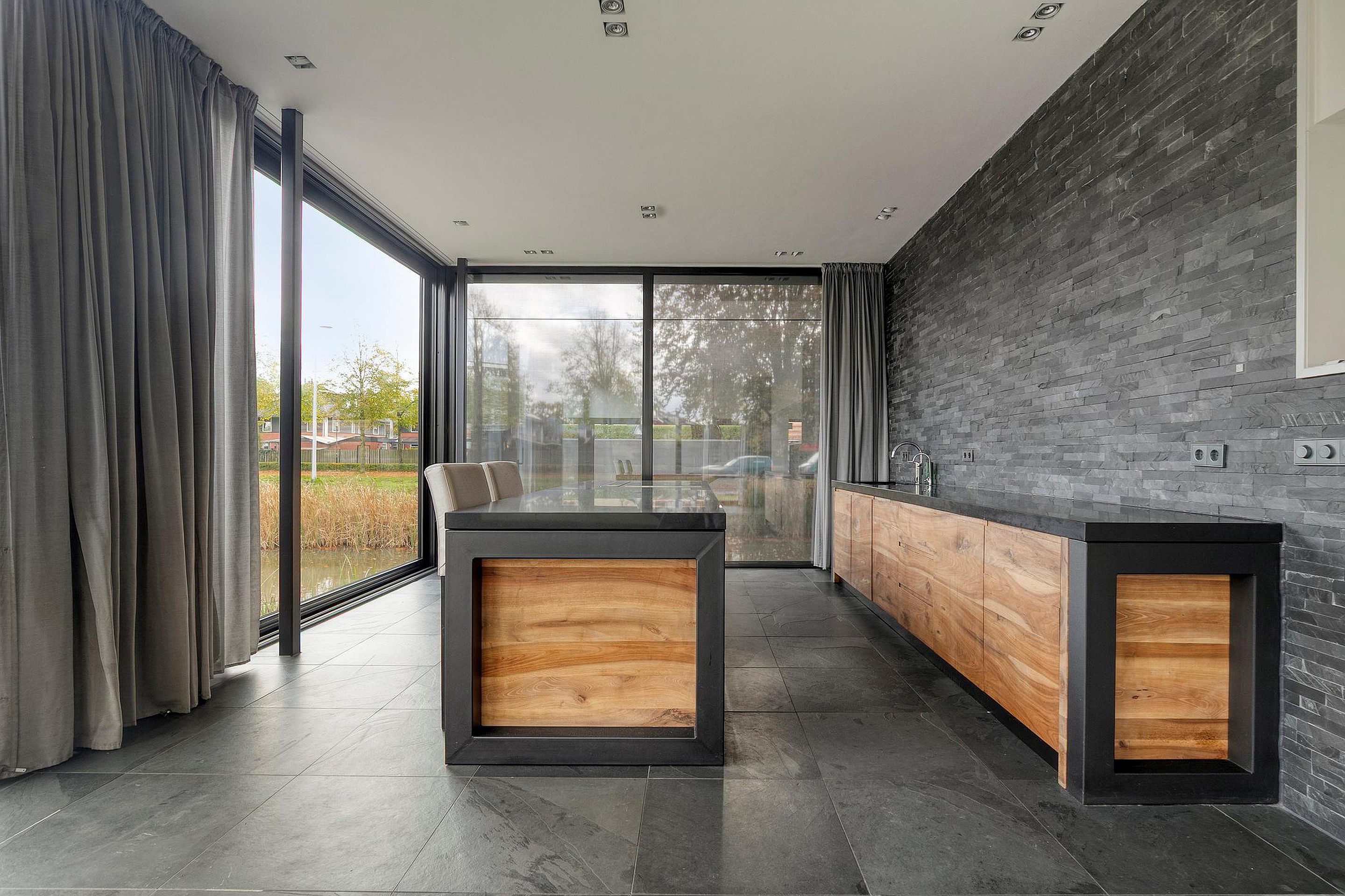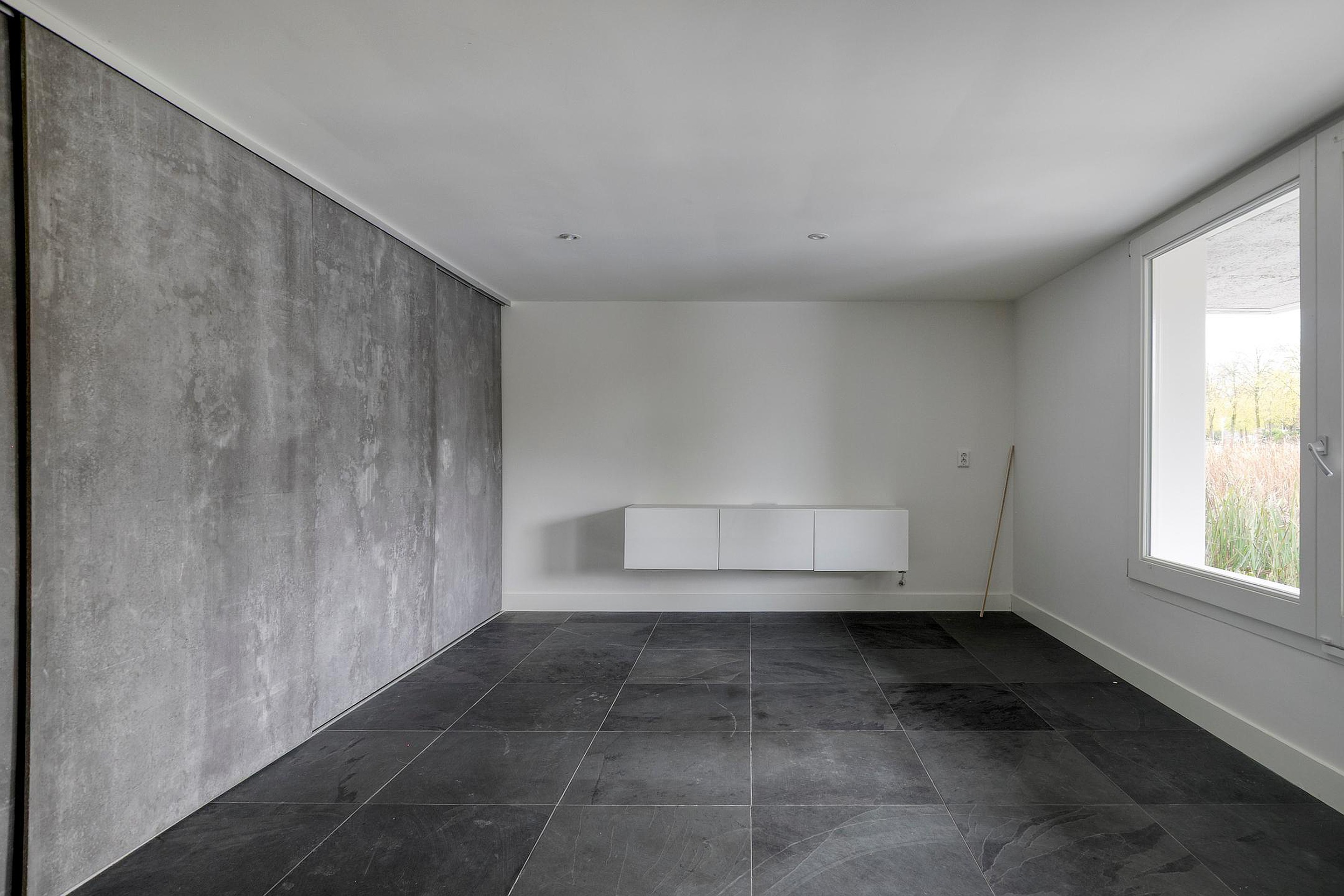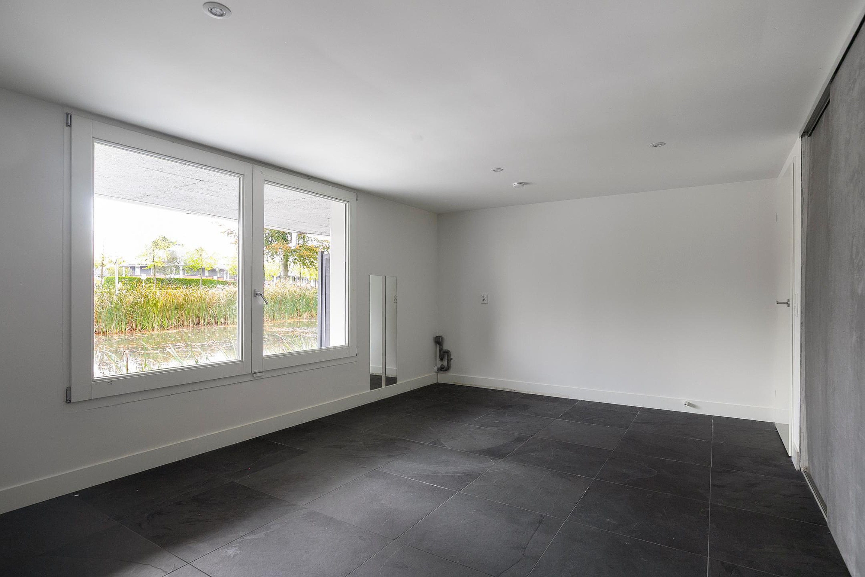 Ramen tot op de vloer met uitzicht op de tuin en het water. Gehele vloer voorzien van vloerverwarming.