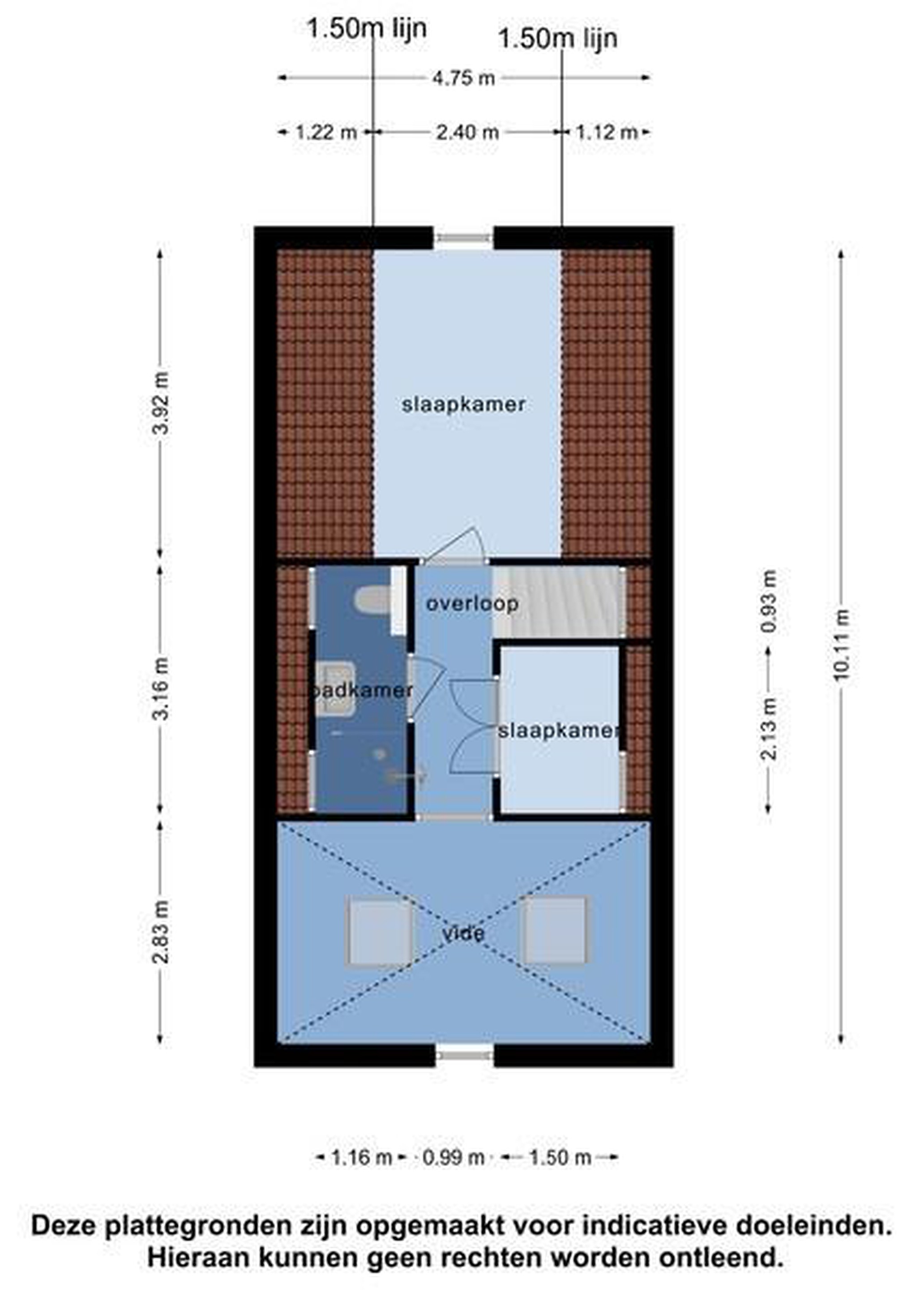 Met de trap kom je op de overloop.