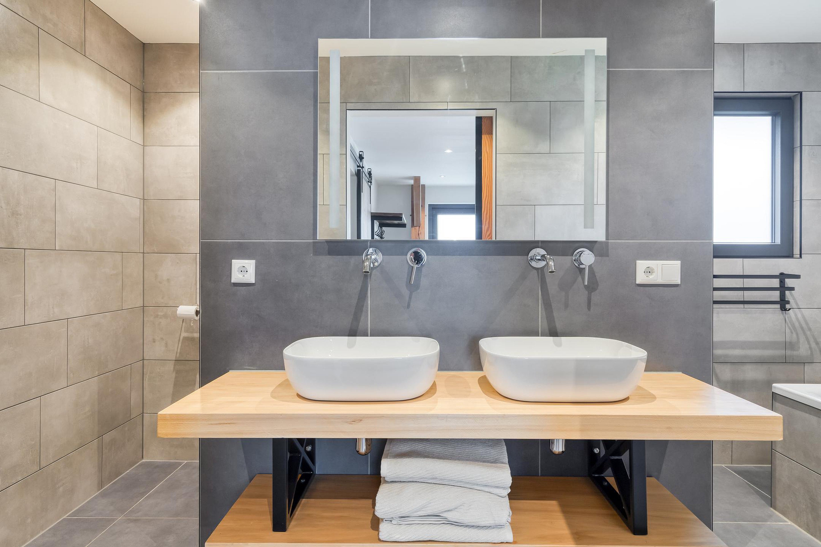 Op de begane grond bevinden zich twee comfortabele slaapkamers en een ruime badkamer met inloopdouche, dubbele wastafel, ligbad en toilet.