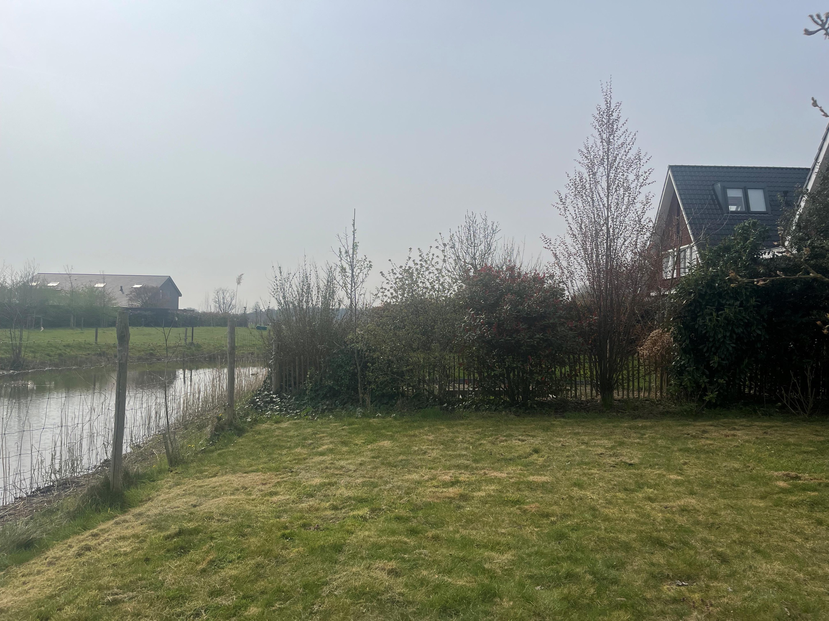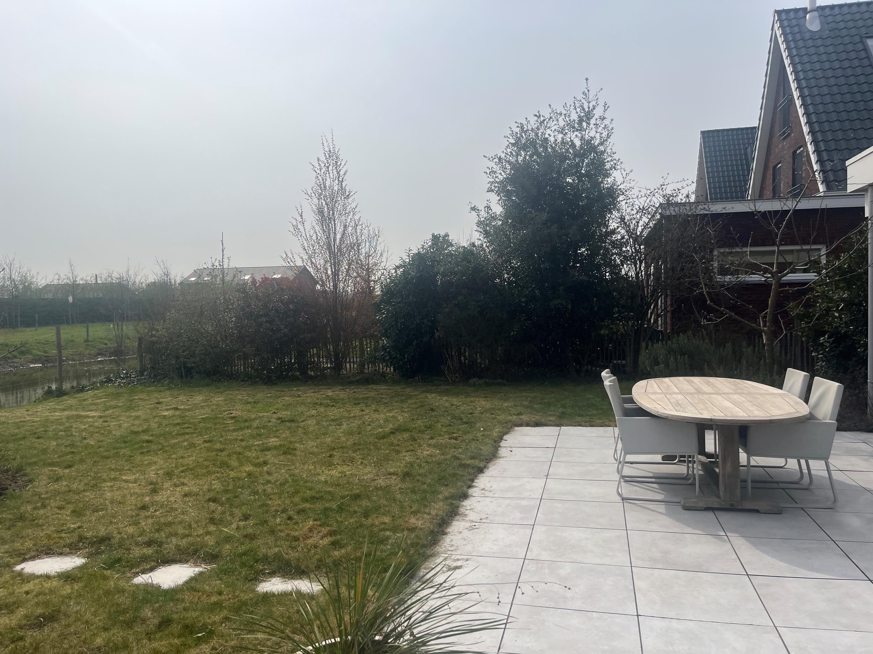 De brede, zonnige achtertuin (gelegen op het zuiden) grenst direct aan het water. Hier geniet je van volledige privacy, vrij uitzicht en een sfeervol terras. De ideale plek om te ontspannen.
