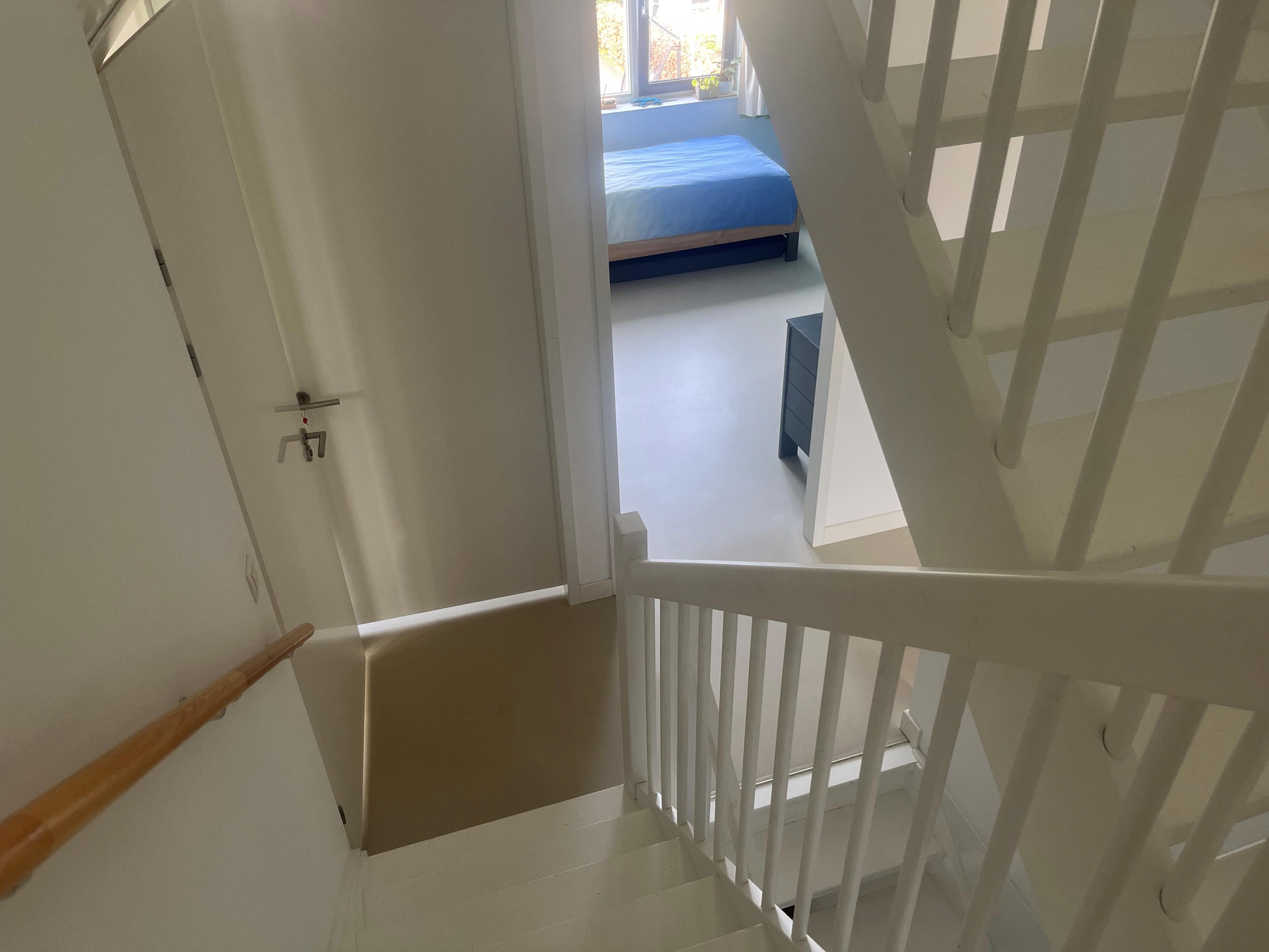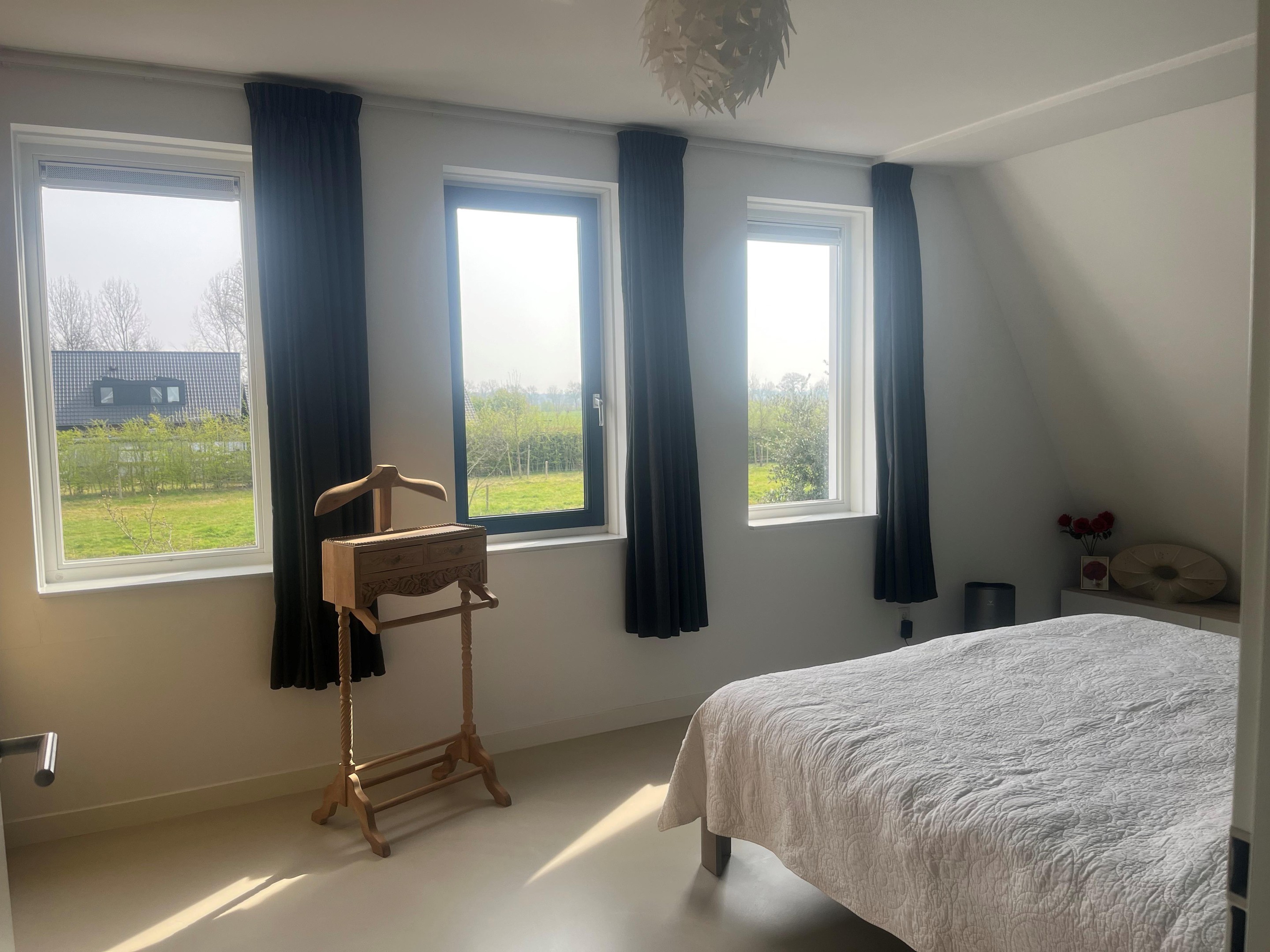 Eerste verdieping: Drie slaapkamers, waaronder de hoofdslaapkamer met fraai uitzicht over het water. Riante luxe badkamer met dakkapel, ligbad, dubbele wastafel met grote spiegelkast, separate inloopdouche, tweede toilet en veel daglicht door de grote raampartijen, waardoor het ook prettig is natuurlijk te ventileren.
