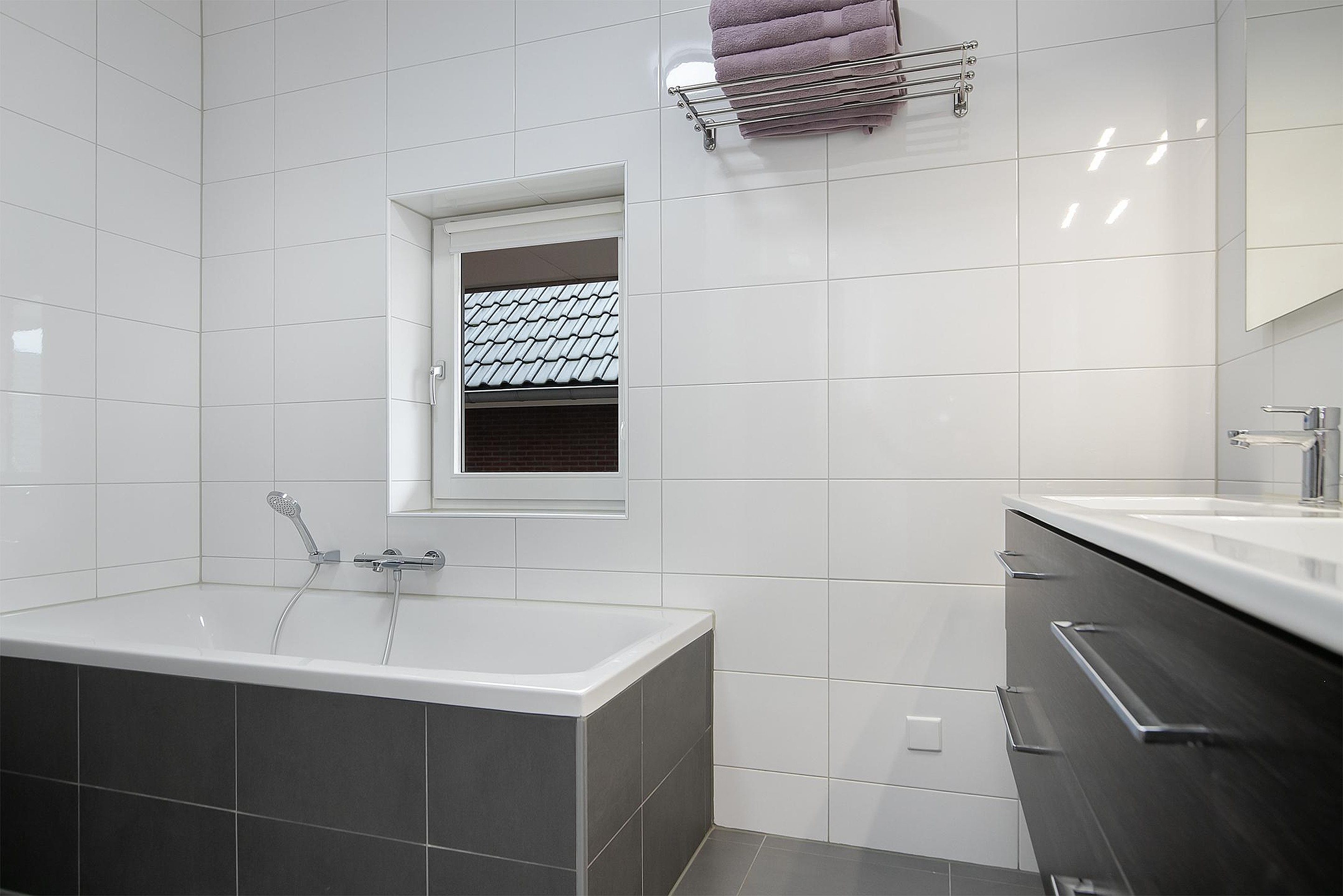Op de eerste verdieping bevindt zich de ruime master-bedroom met een royale achterliggende inloopkast. De luxe badkamer is voorzien van een ligbad, inloopdouche, dubbele wastafel met meubel en toilet. Daarnaast zijn er nog twee comfortabele slaapkamers op deze verdieping.