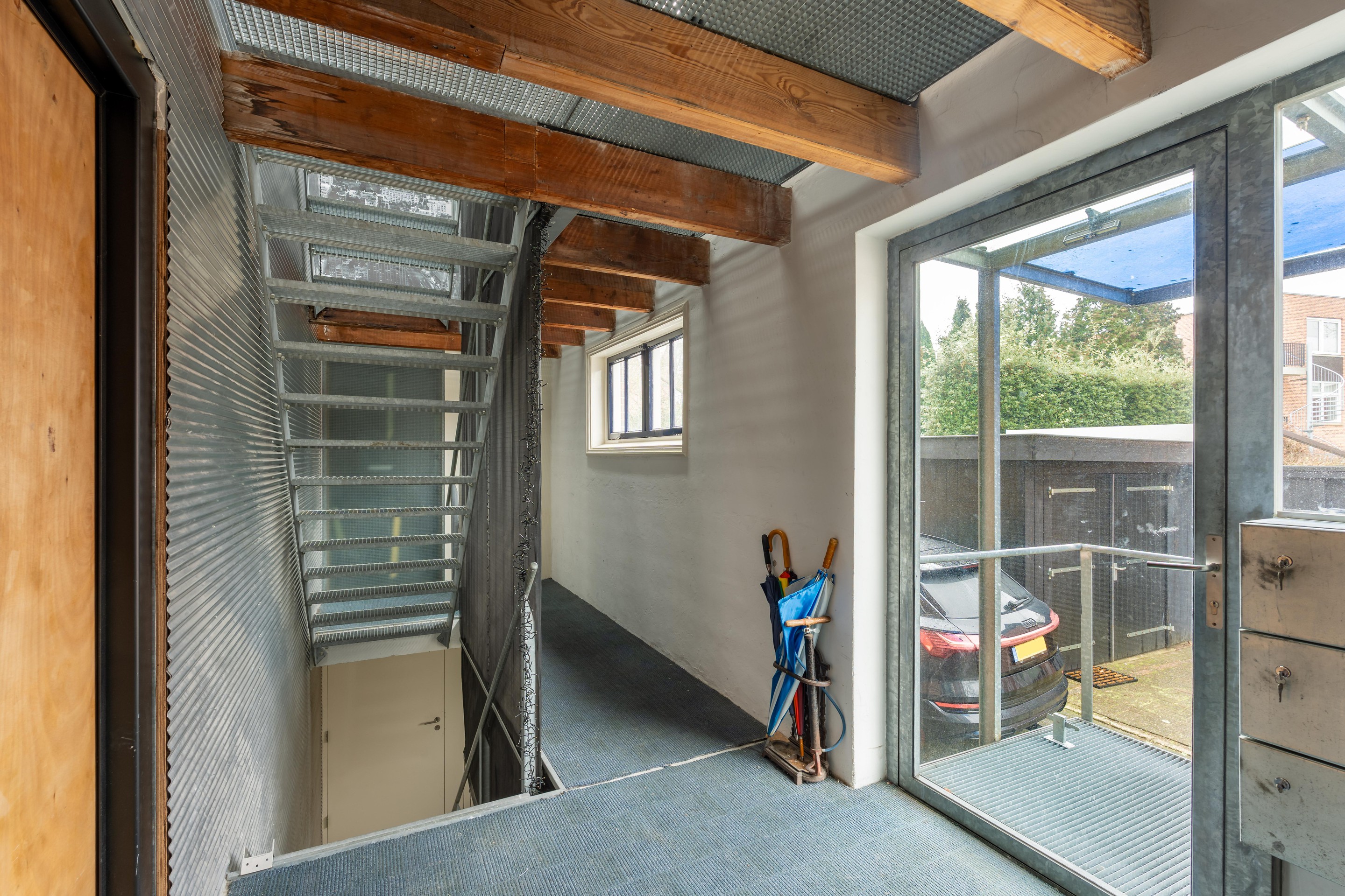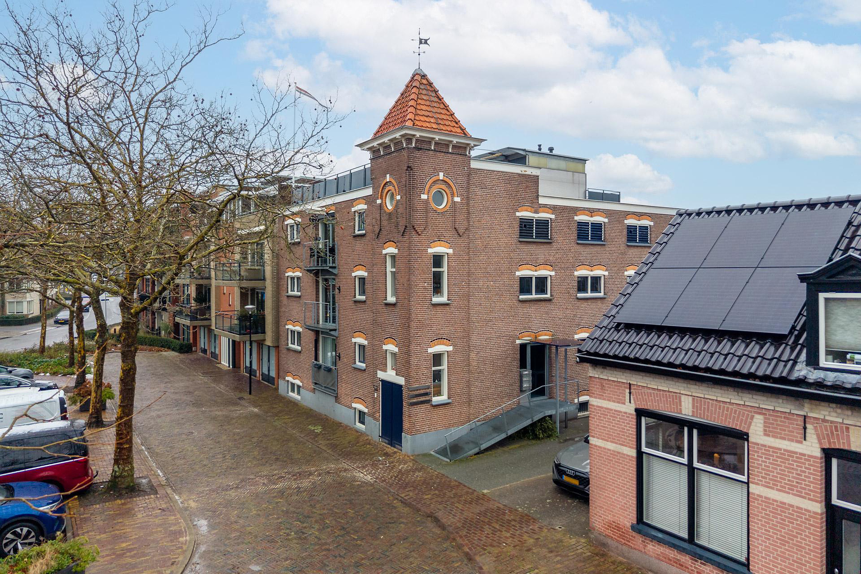 Het appartement op de tweede verdieping beschikt over een bovengelegen dakterras, met een mooie ruime glazen opbouw die als kantoor geschikt is. Dit zeer ruime dakterras vormt een bijzondere en waardevolle buitenruimte en biedt een fraai uitzicht over de omgeving. Verder heeft de 2e etage beschikking over een eigen parkeerplaats aan de zijkant van het gebouw.