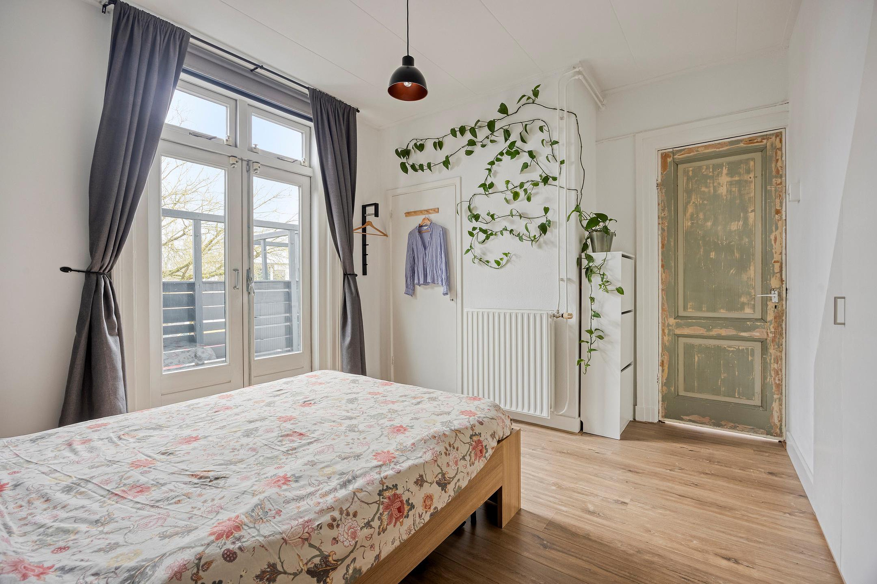 De keuken ligt aan de achterzijde en is praktisch ingericht met diverse inbouwapparatuur zoals een koelkast met vriesvak, oven, Bosch vaatwasser en 5-pits gaskookplaat. De fijne, ruime slaapkamer aan de achterzijde beschikt over twee praktische inbouwkasten. De trapkast heeft uitschuifbare, diepe lades waardoor deze kast zich uitstekend leent als voorraadkast.