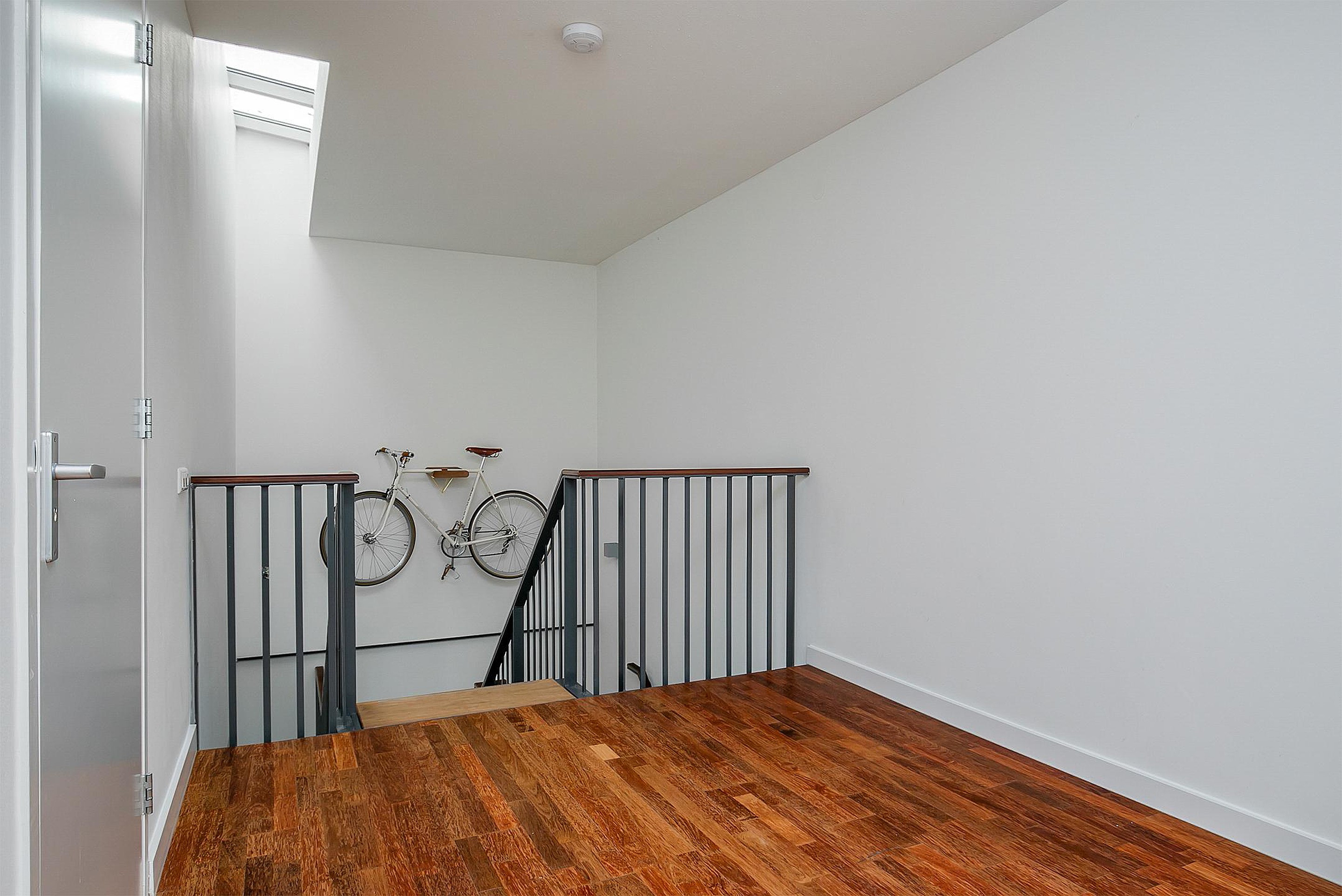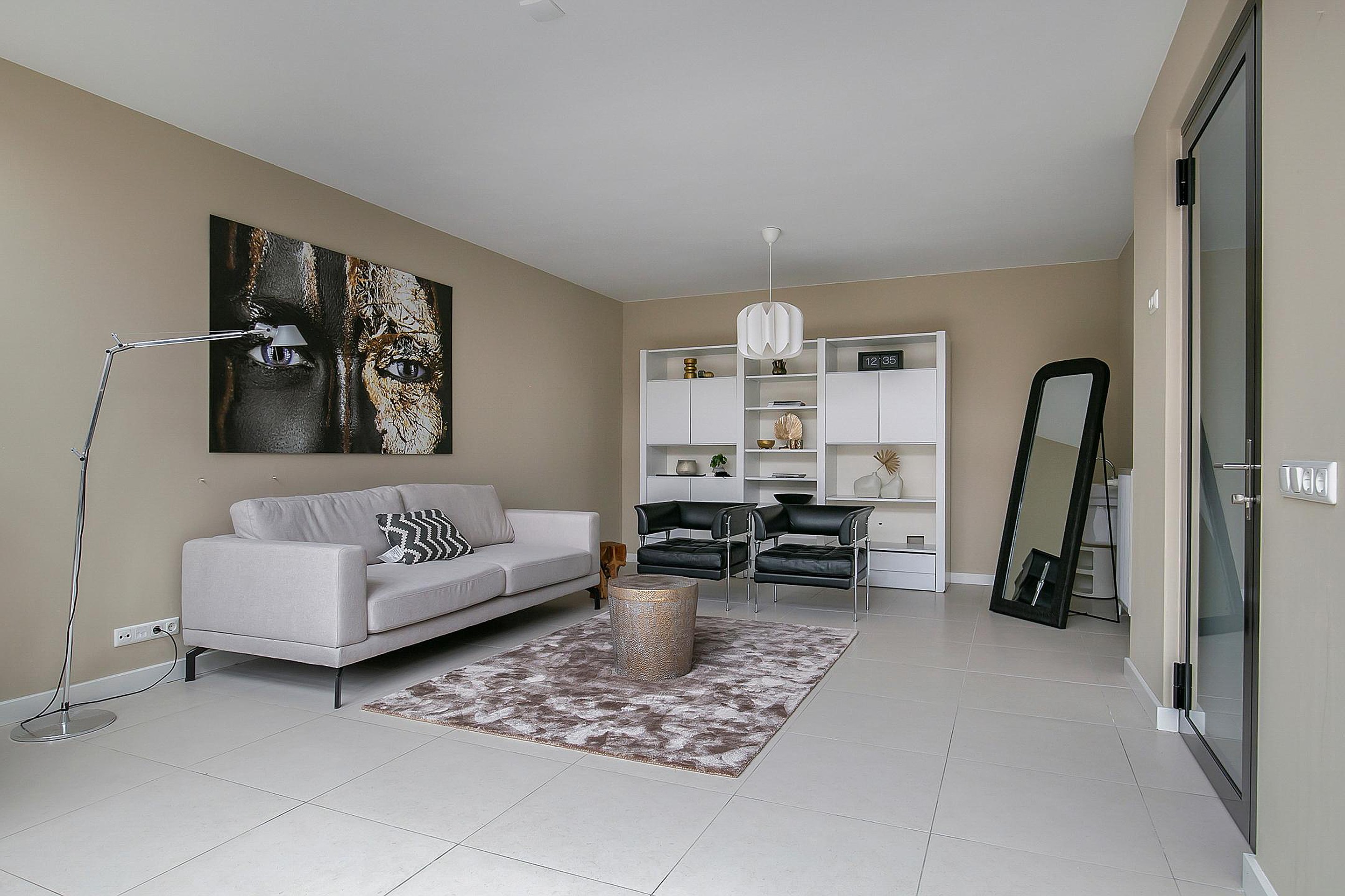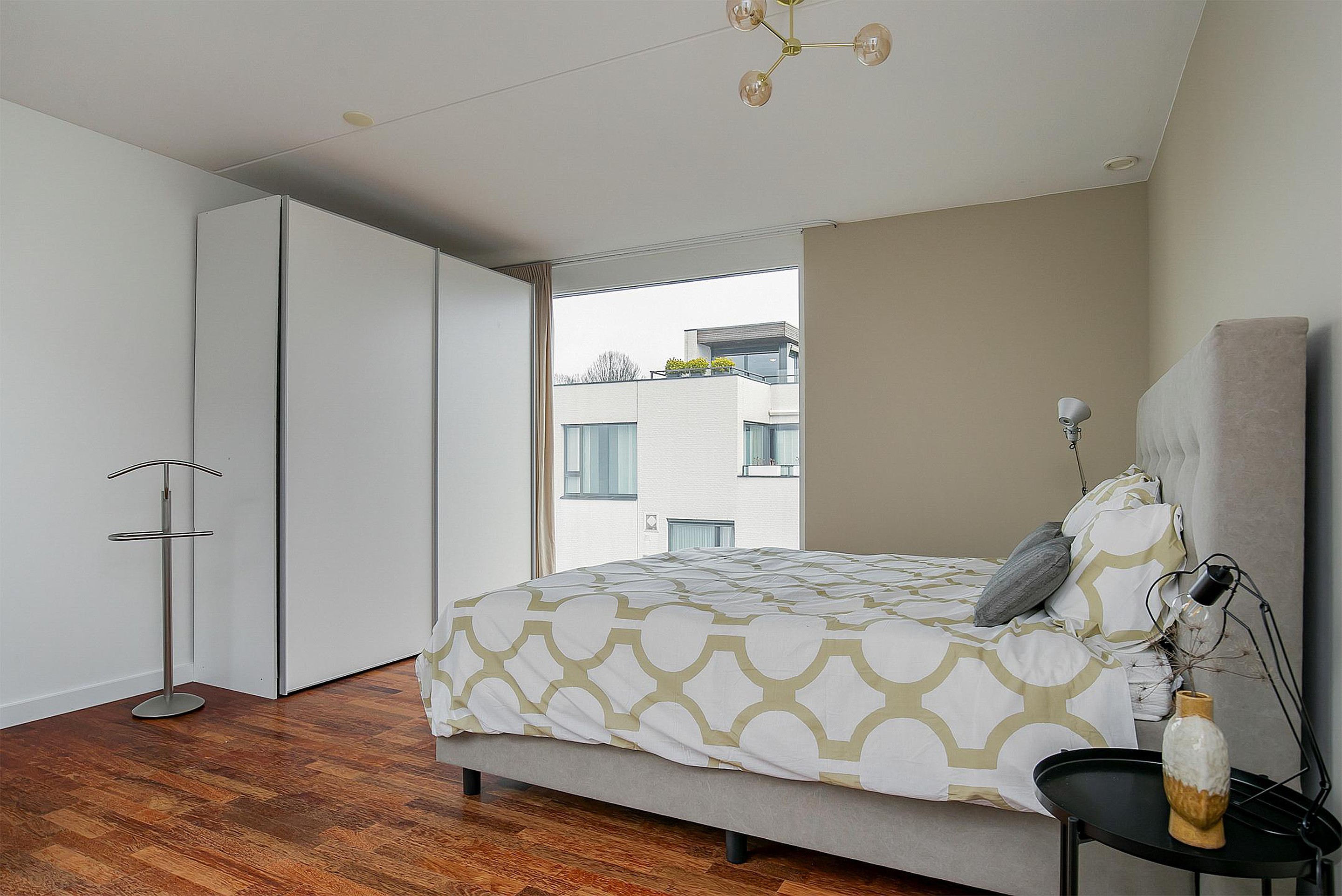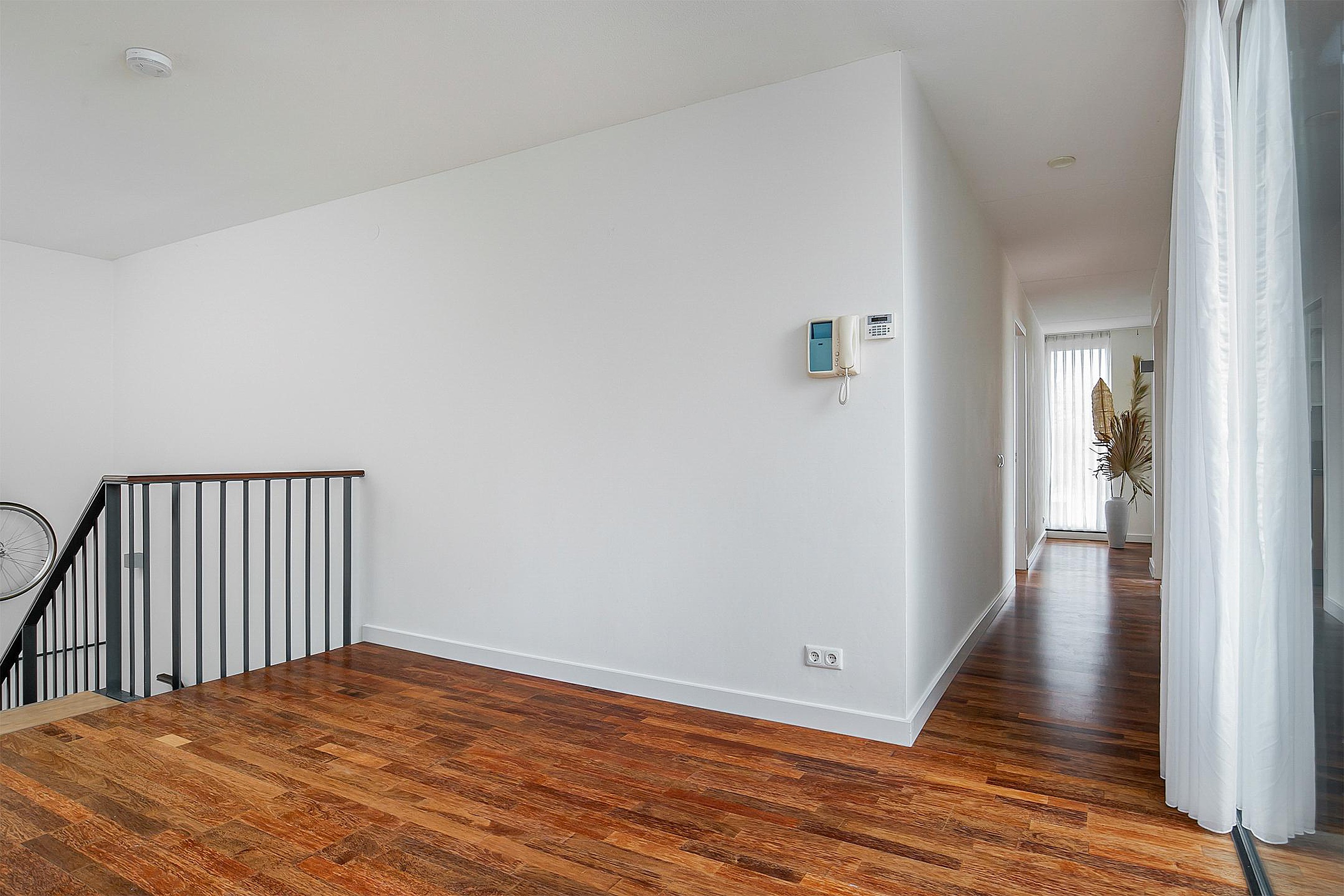 Tweede verdieping De royale overloop geeft toegang tot drie slaapkamers, een luxe badkamer, wasruimte en een tweede dakterras. Twee slaapkamers hebben direct toegang tot dit terras. De moderne badkamer is uitgerust met een inloopdouche met regendouche, ligbad, op maat gemaakt dubbel wastafelmeubel, designradiator en wandcloset. De praktische wasruimte beschikt over een lichtkoepel, vaste kast, pantry en witgoedaansluitingen.