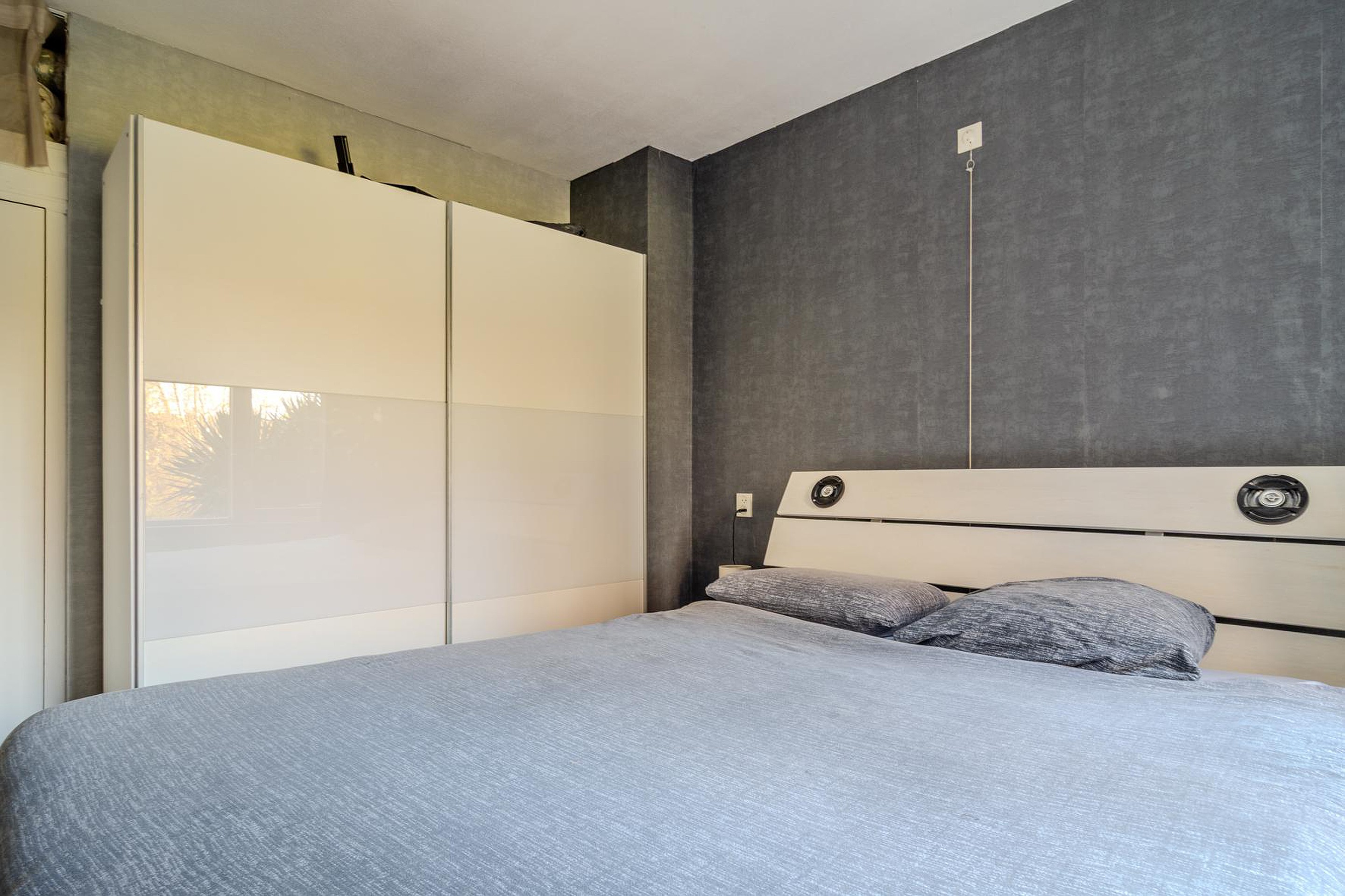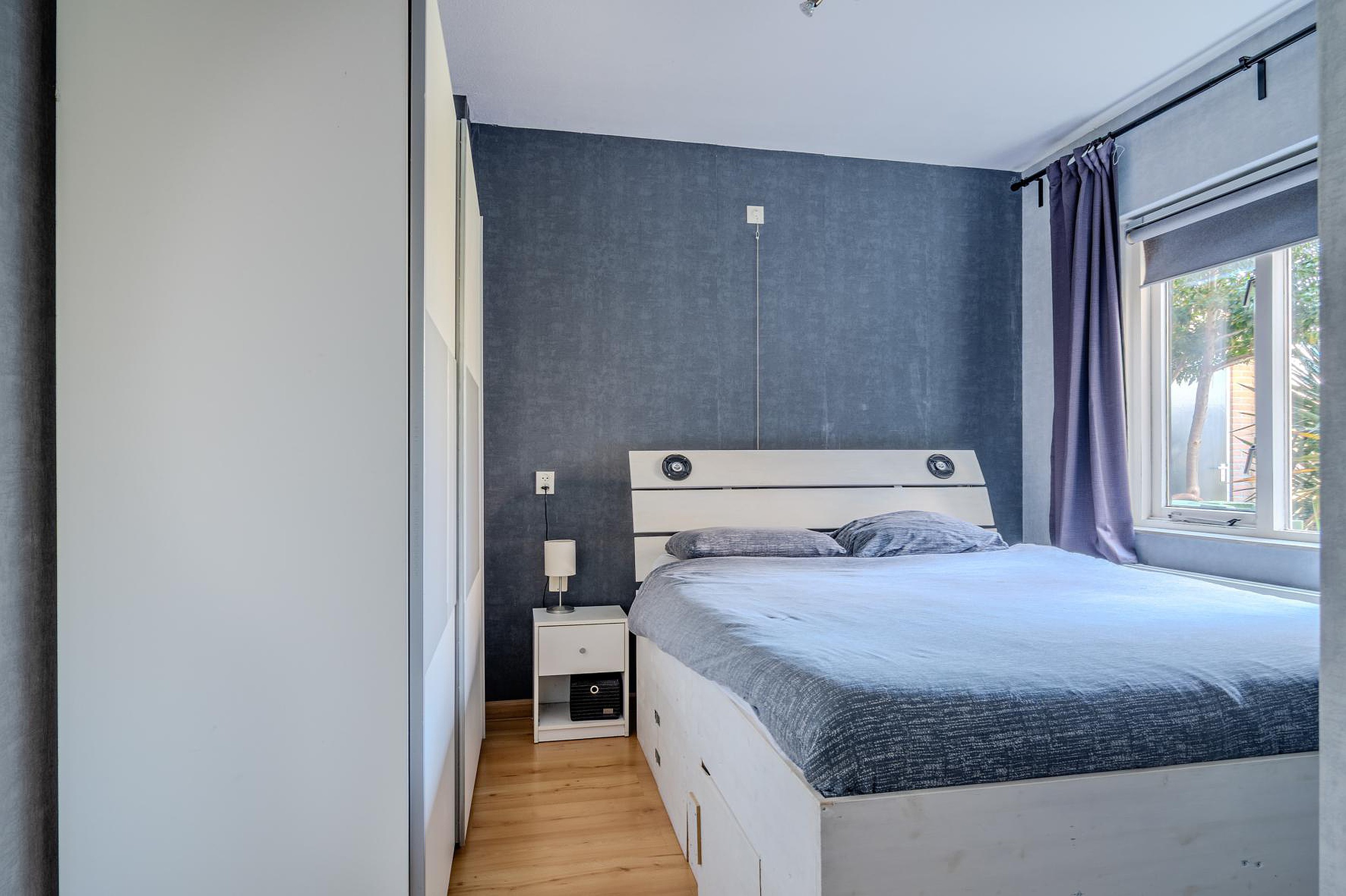 De slaapkamer aan de voorzijde gelegen is goed van formaat, met voldoende ruimte voor een tweepersoonsbed en kastruimte. De moderne badkamer is verzorgd afgewerkt en voorzien van een douche, wastafelmeubel en toilet.