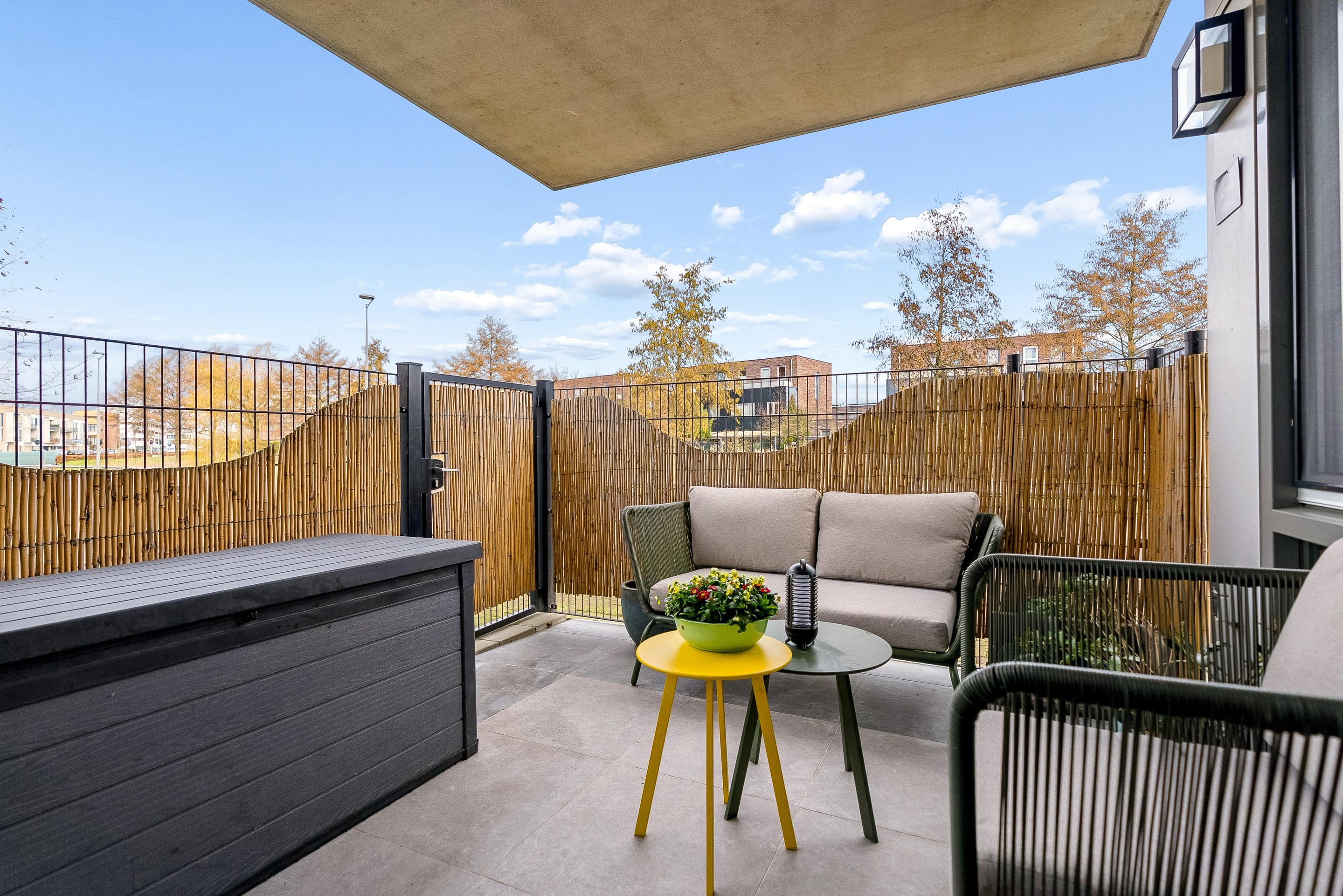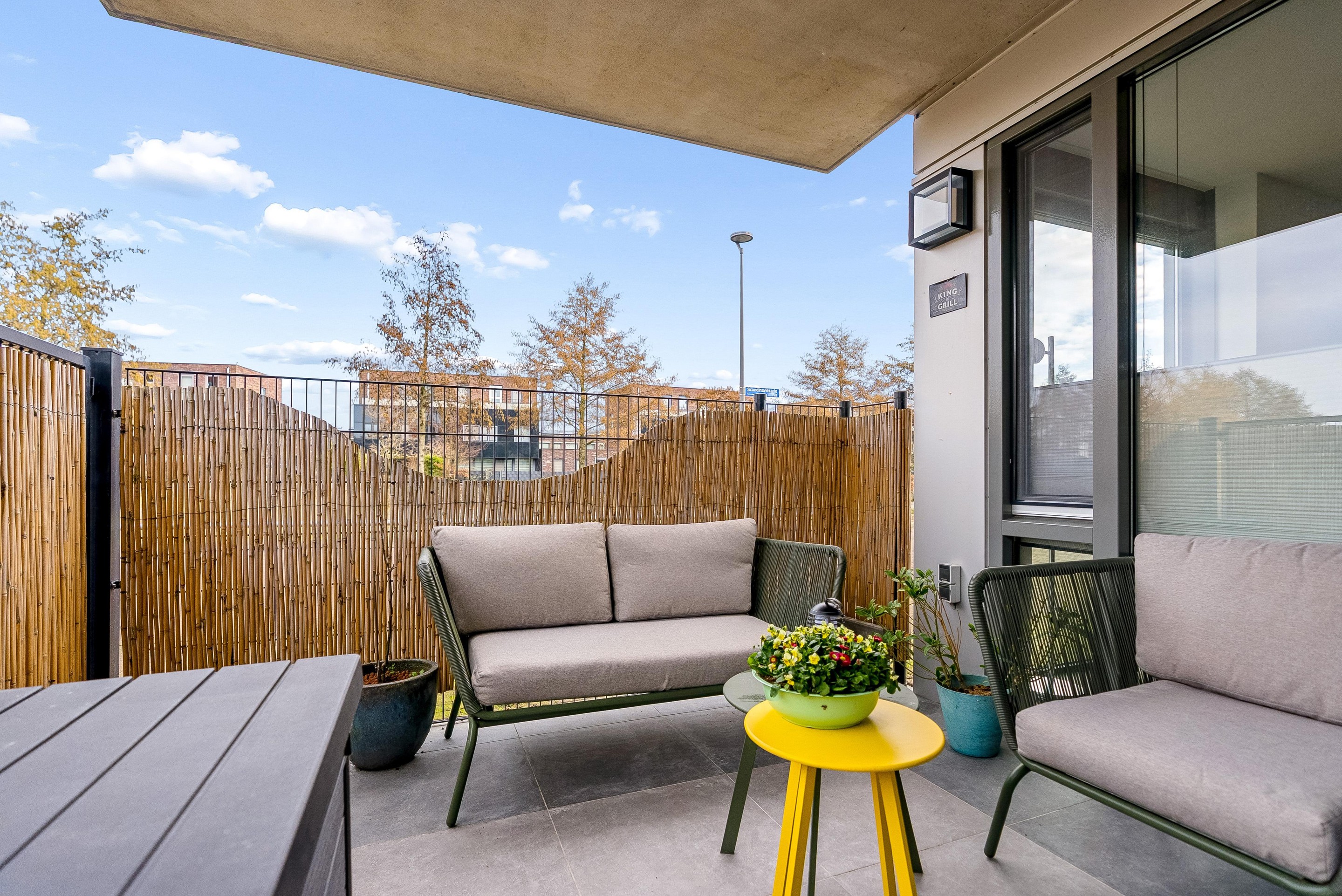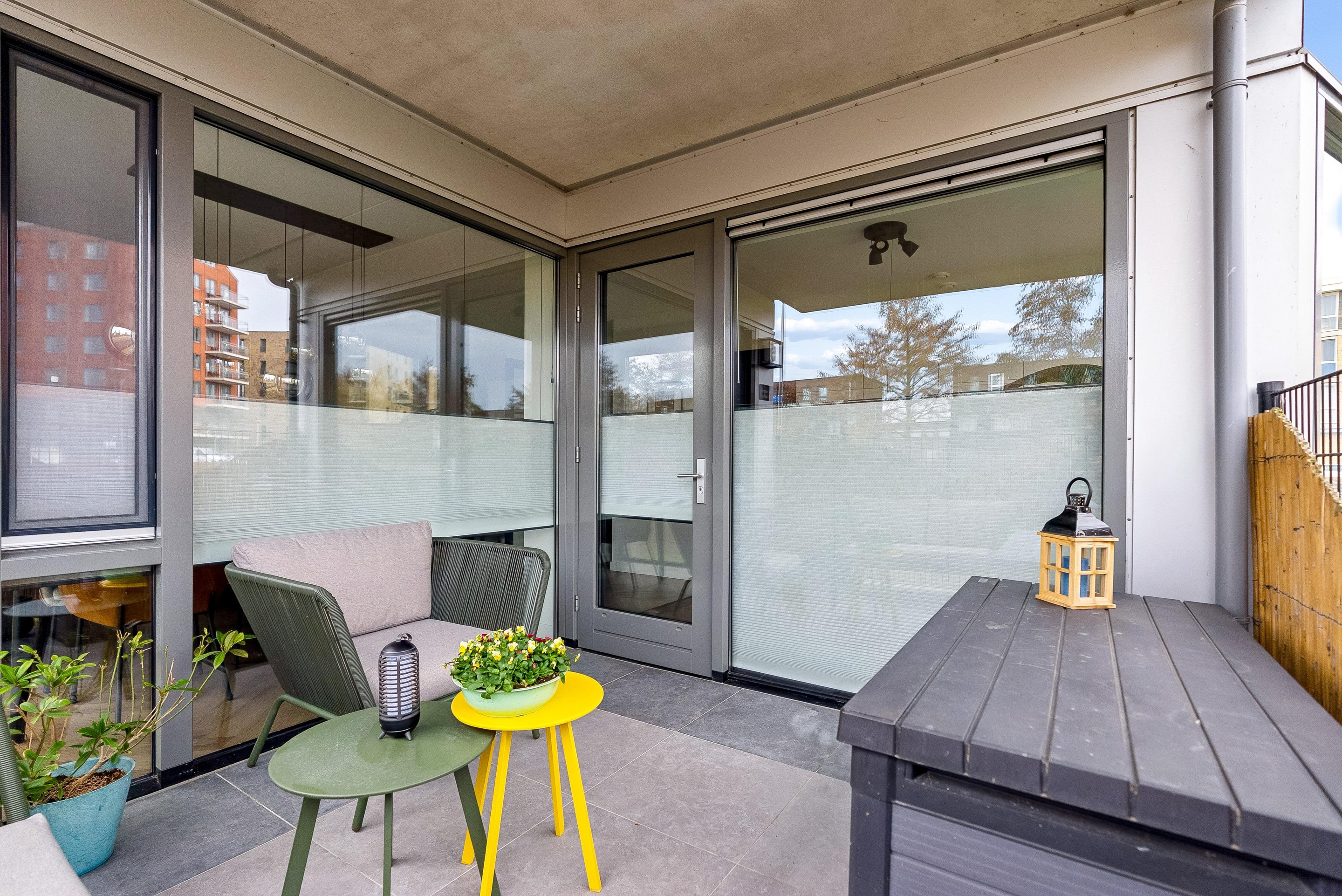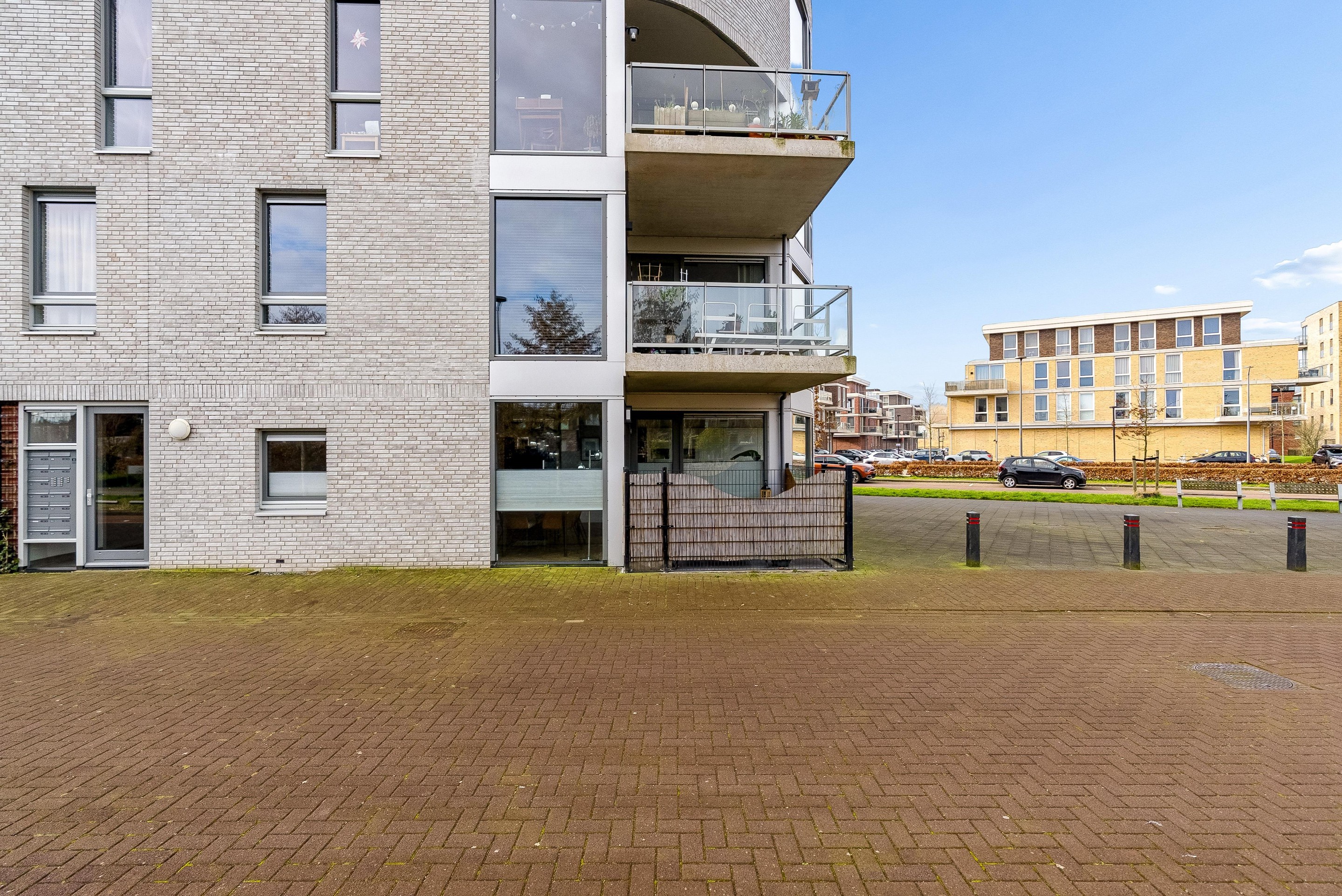 Dit appartement biedt naast binnenruimte ook enkele aantrekkelijke buitenvoorzieningen. Zo beschikt het appartement over een eigen terras van ruim 10m2. Dit terras is ruim genoeg voor een leuk zitje. Er is ook een eigen parkeerplek op een afgesloten terrein en een separate berging aanwezig. Ideaal voor het opbergen van bijvoorbeeld fietsen of overige spullen. De berging is vanuit de bouw voorzien van een extra brede deur, perfect voor het naar binnen rijden van een motor of scooter.