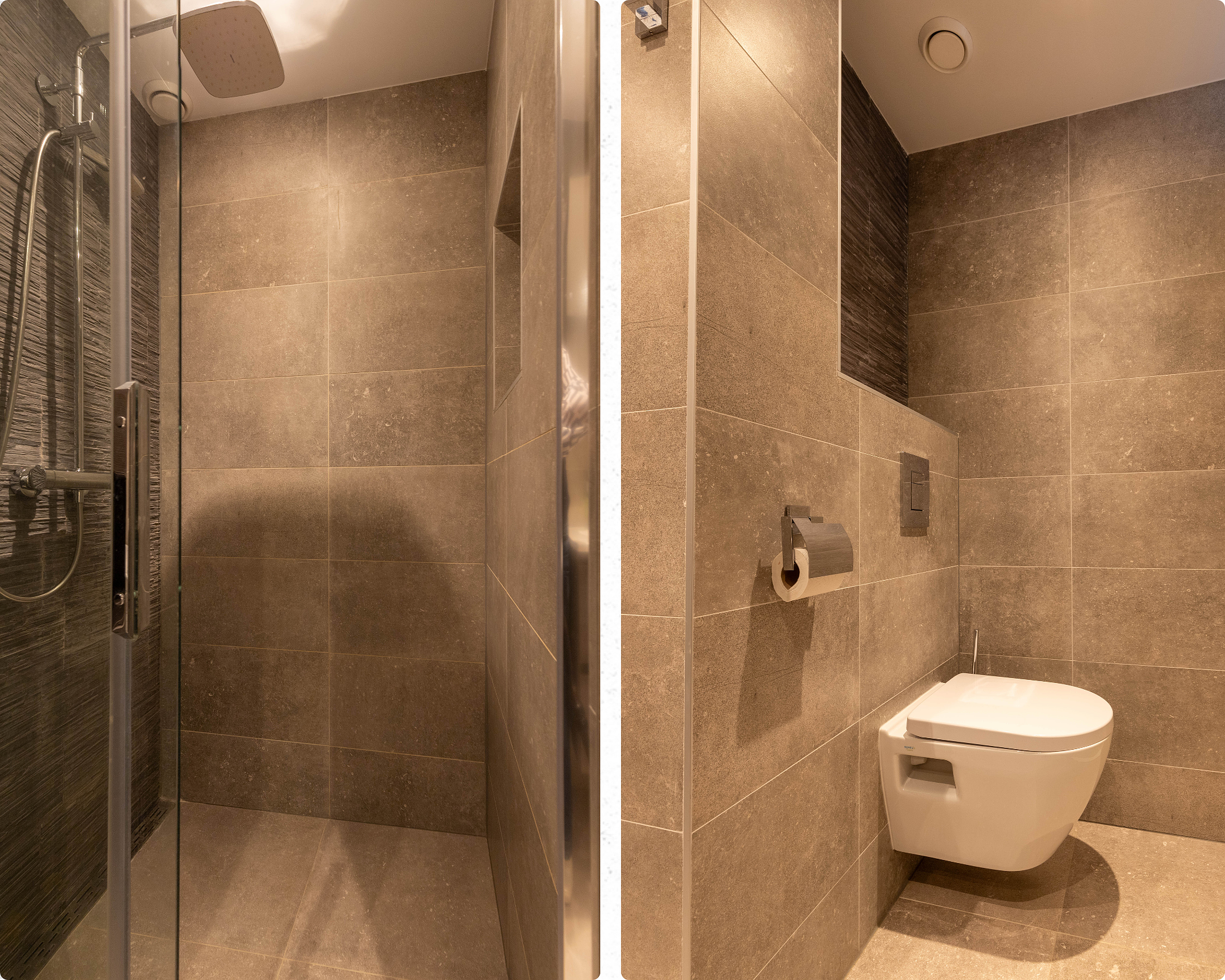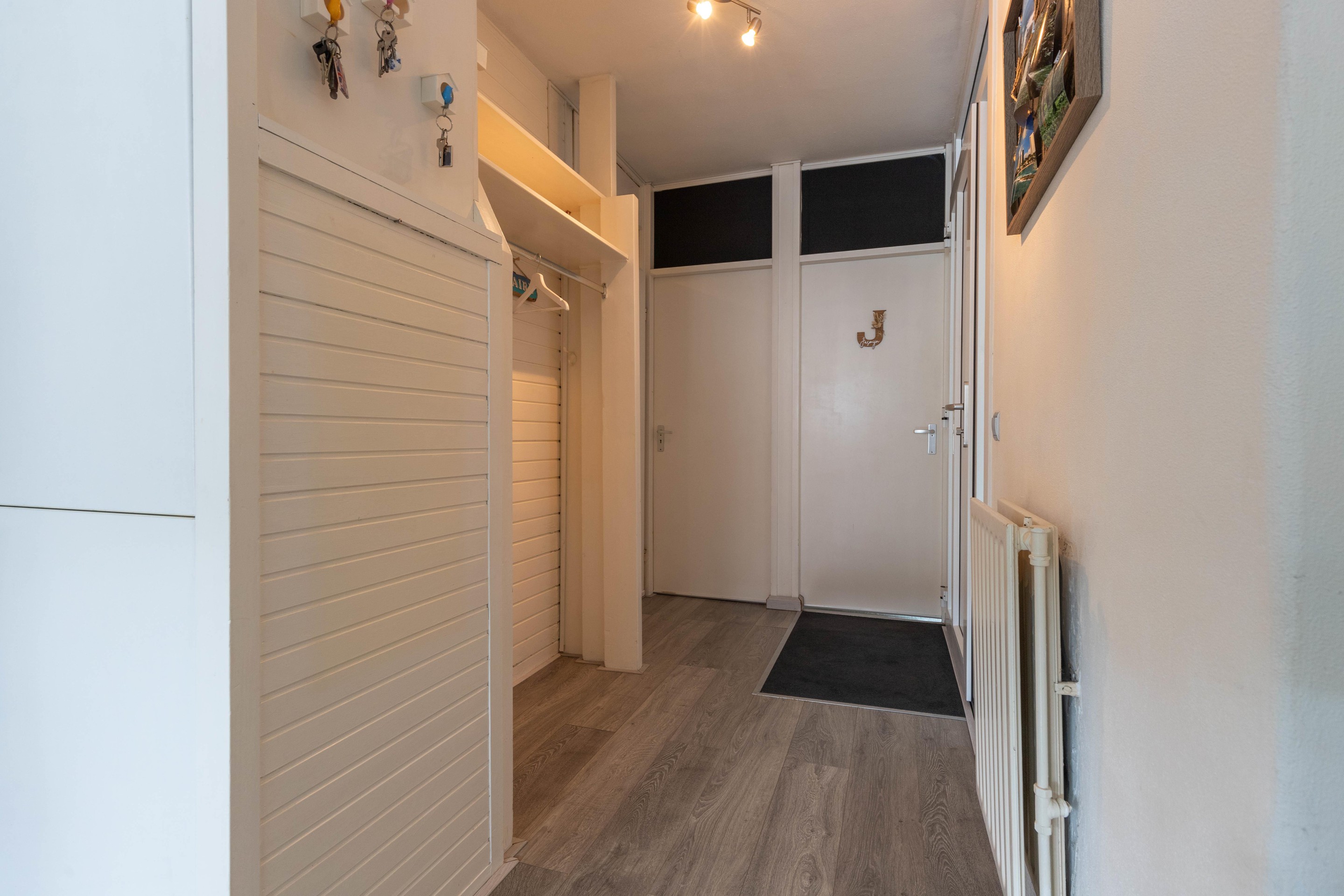 De hal geeft toegang tot alle vertrekken. De geheel betegelde badkamer (gerenoveerd in 2020) is praktisch en compleet ingericht met een toilet (hang), inloopdouche, wastafelmeubel en een aansluiting voor de wasmachine en droger.