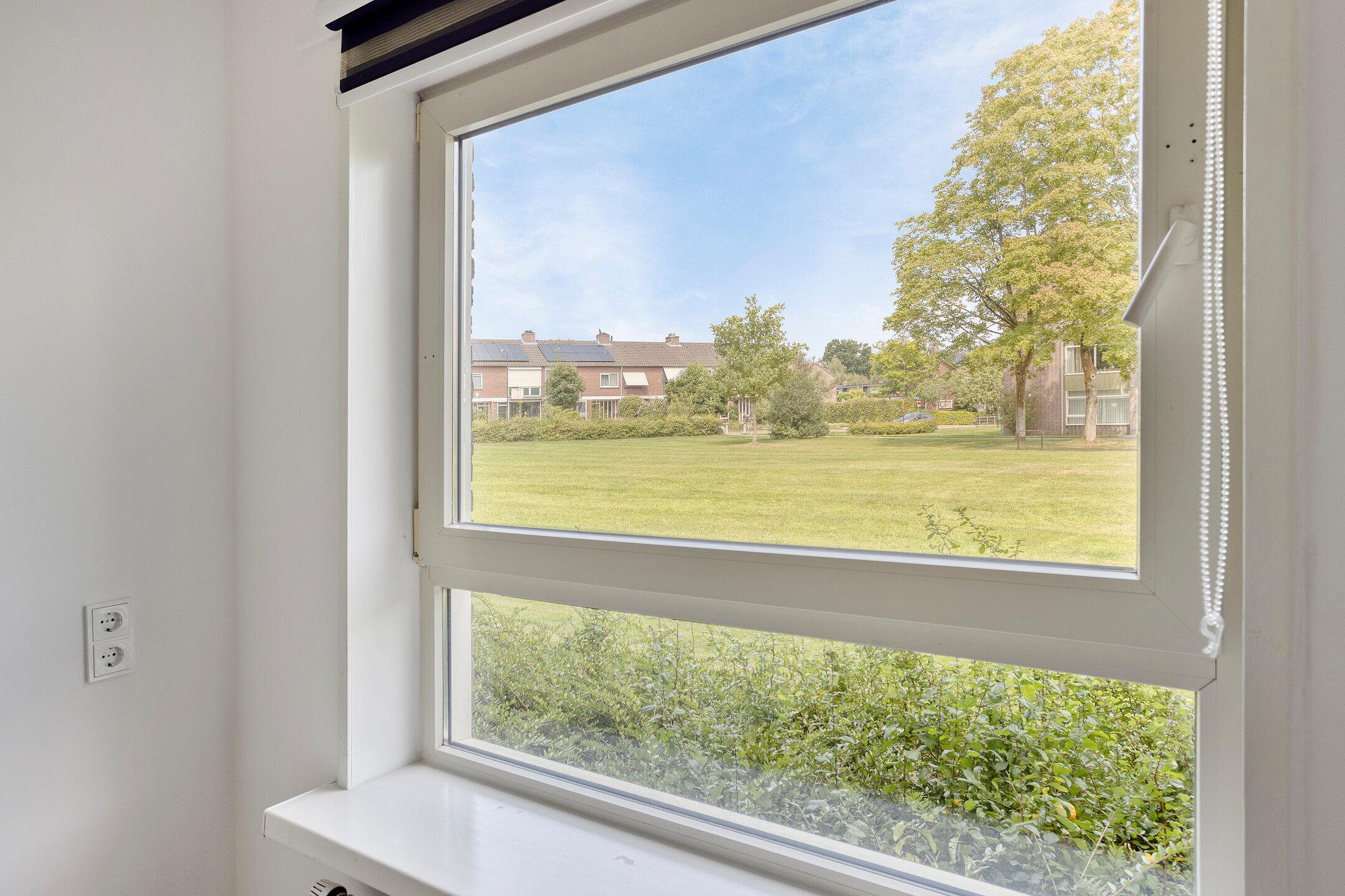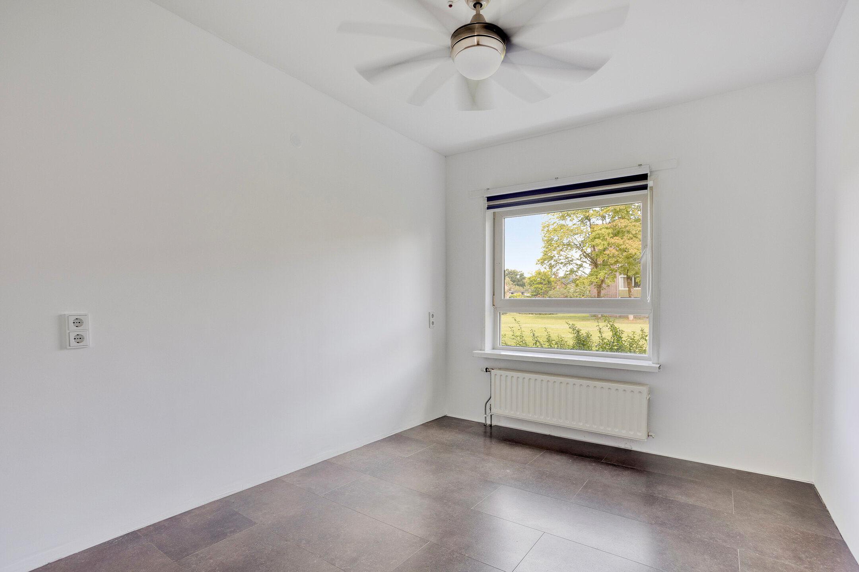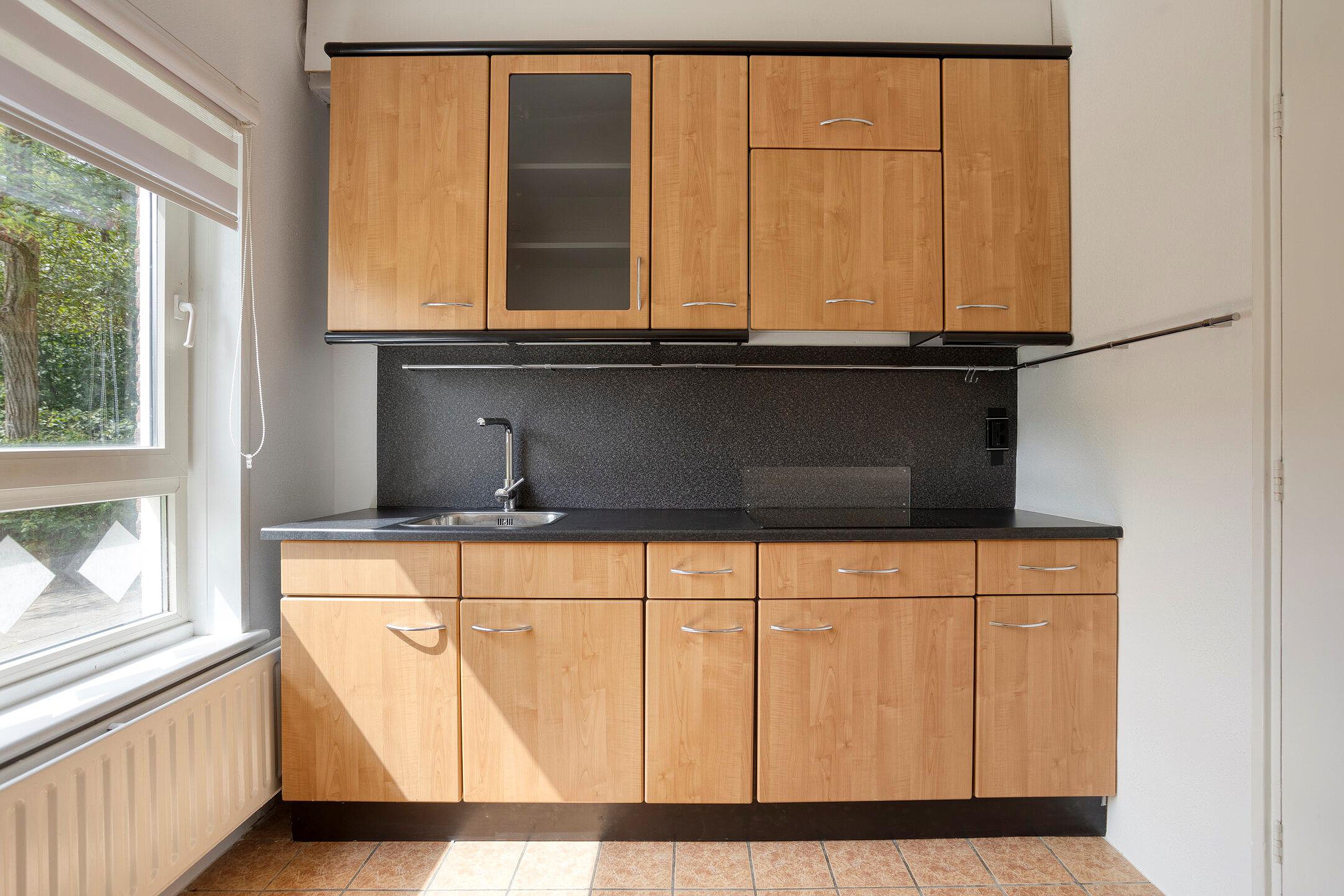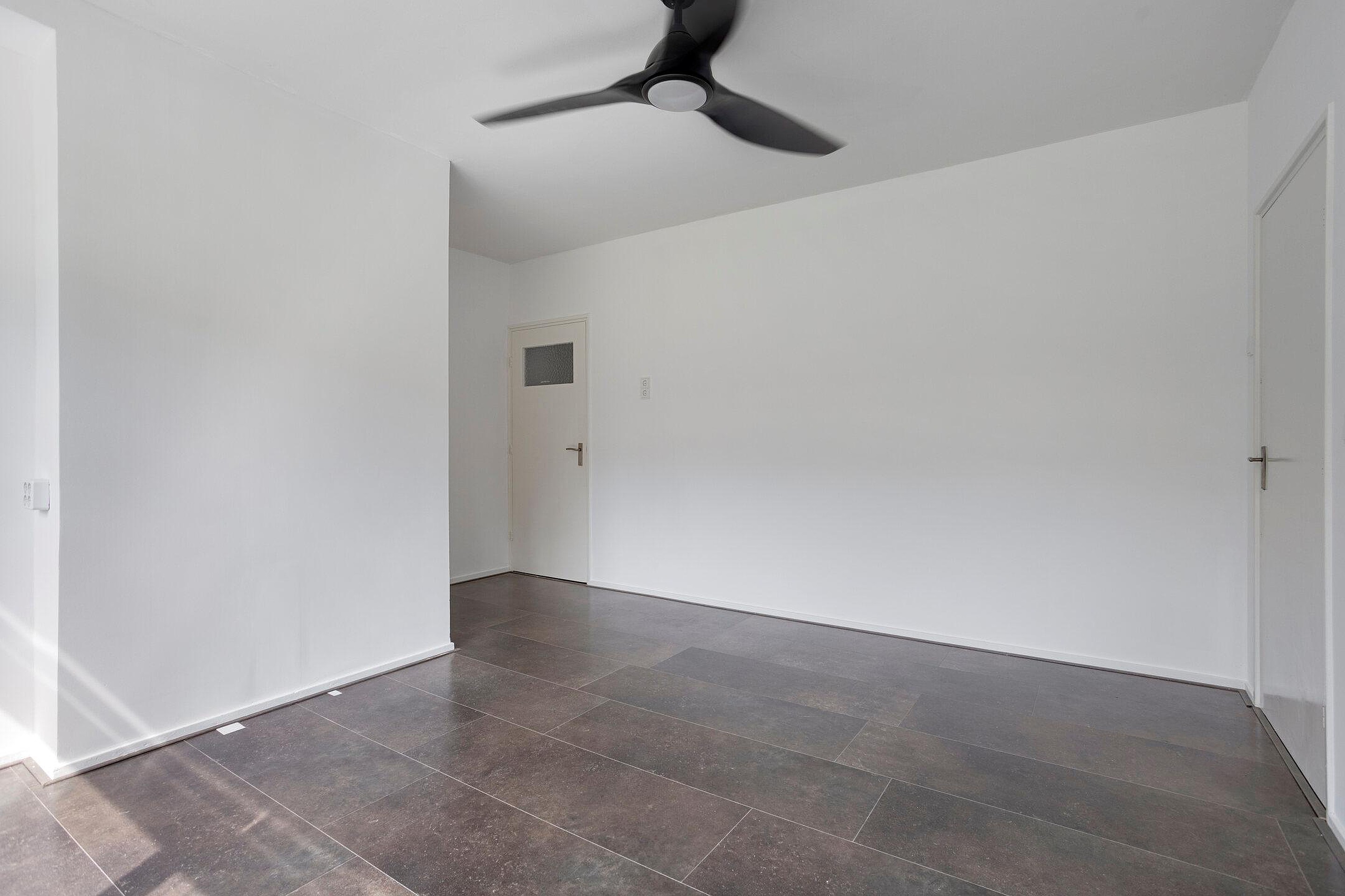 Via de eigen entree komt u in de hal, die toegang geeft tot alle ruimtes. De lichte woonkamer (ca. 3,70 x 4,13 m) heeft een moderne donkere tegelvloer en biedt vrij uitzicht over een grasveld – heerlijk voor ontspanning. Aansluitend de separate keuken met houtlook kasten, donker werkblad, kookplaat en afzuigkap (blijven achter). De ruime slaapkamer (ca. 3,56 x 2,85 m) heeft dezelfde tegelvloer en plafondventilator voor extra comfort. De badkamer is volledig betegeld, circa 9 jaar oud, met douche, wastafel en toilet. Praktisch: een inpandige berging/technische ruimte met opstelplaats voor de CV-ketel (Remeha combiketel uit 2019, onderhouden in 2025). Extra's zoals plafondventilatoren in woon- en slaapkamer maken het compleet. De gehele elektrische installatie is vernieuwd in 2019.