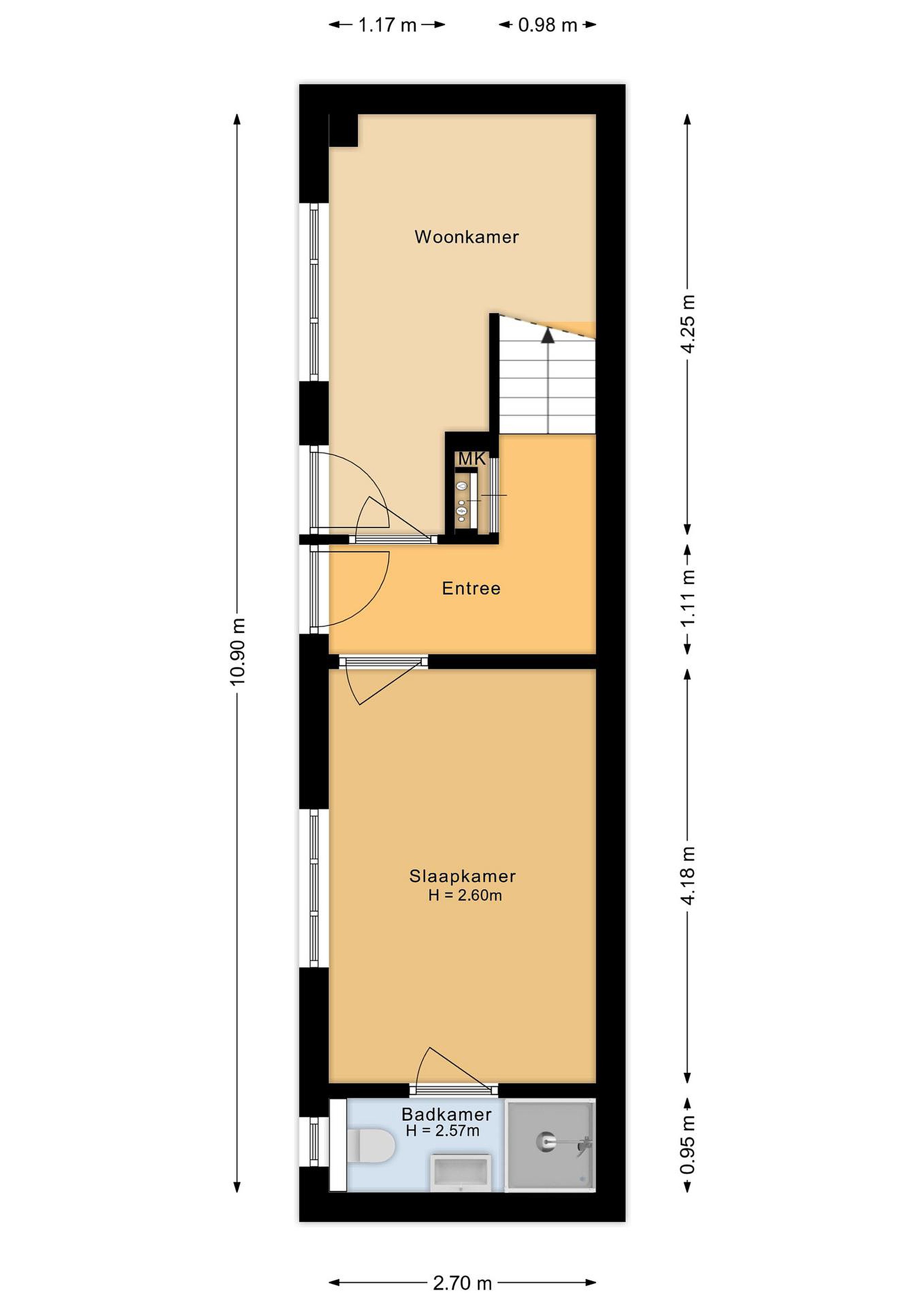 Bij binnenkomst ervaar je direct de strakke en eigentijdse afwerking. De woning beschikt over een royale slaapkamer en een extra werkkamer/slaapkamer – ideaal als thuiswerkplek, hobbykamer of logeerkamer. In de deze kamer vind je tevens de witgoedaansluiting; praktisch en slim opgelost.