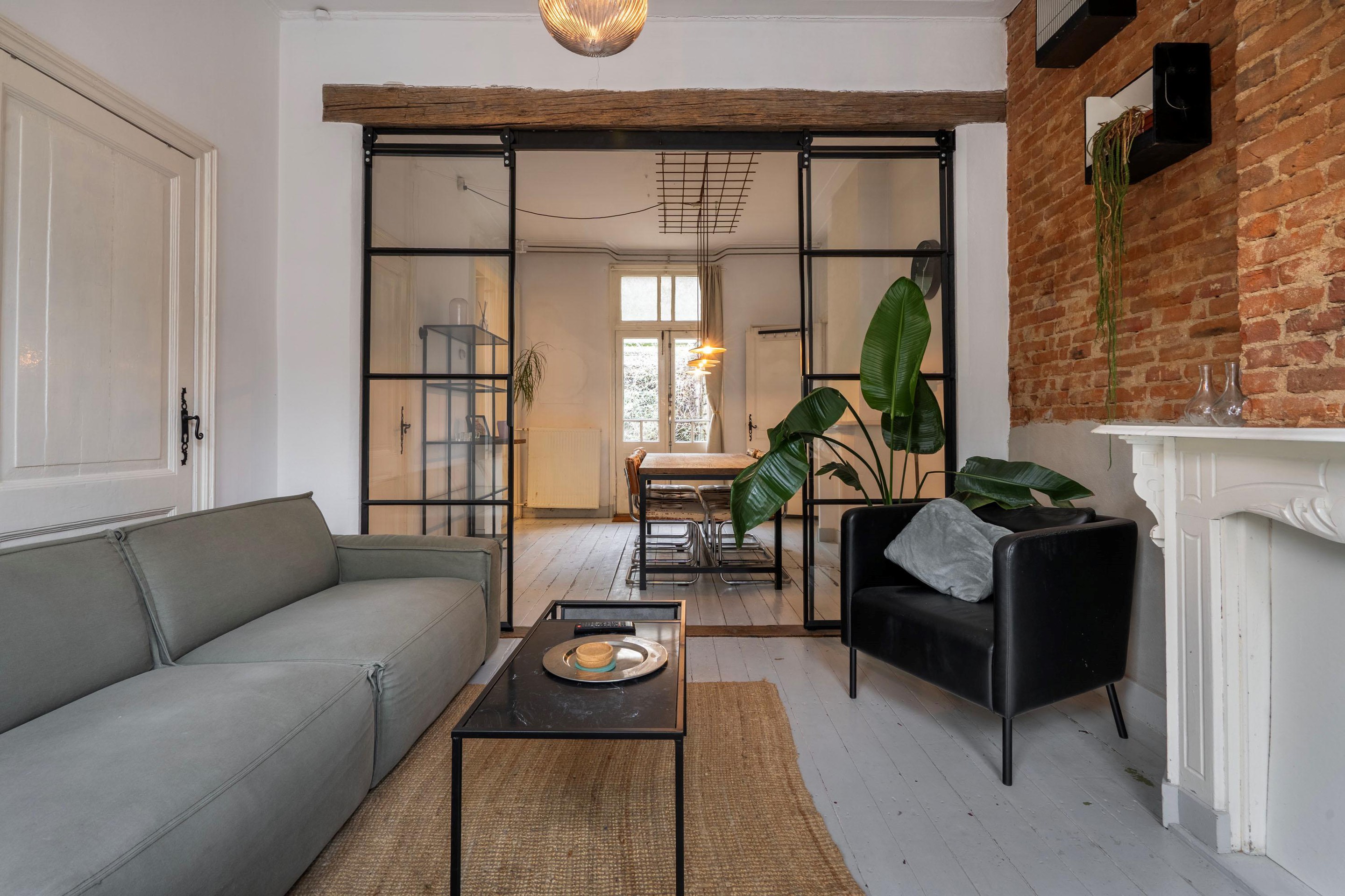 Via je eigen voordeur betreed je de woning en voel je direct de warme sfeer. De ruime eetkamer vormt, tezamen met de sfeervolle woonkamer, het gezellige middelpunt van het huis en loopt over in de knusse woonkamer, waar authentieke elementen zoals schoon metselwerk, glas in lood ramen en een karakteristieke houten balk voor een bijzonder thuisgevoel zorgen. De woonkamer en eetkamer worden gescheiden door sfeervolle schuifdeuren van glas in metaal.