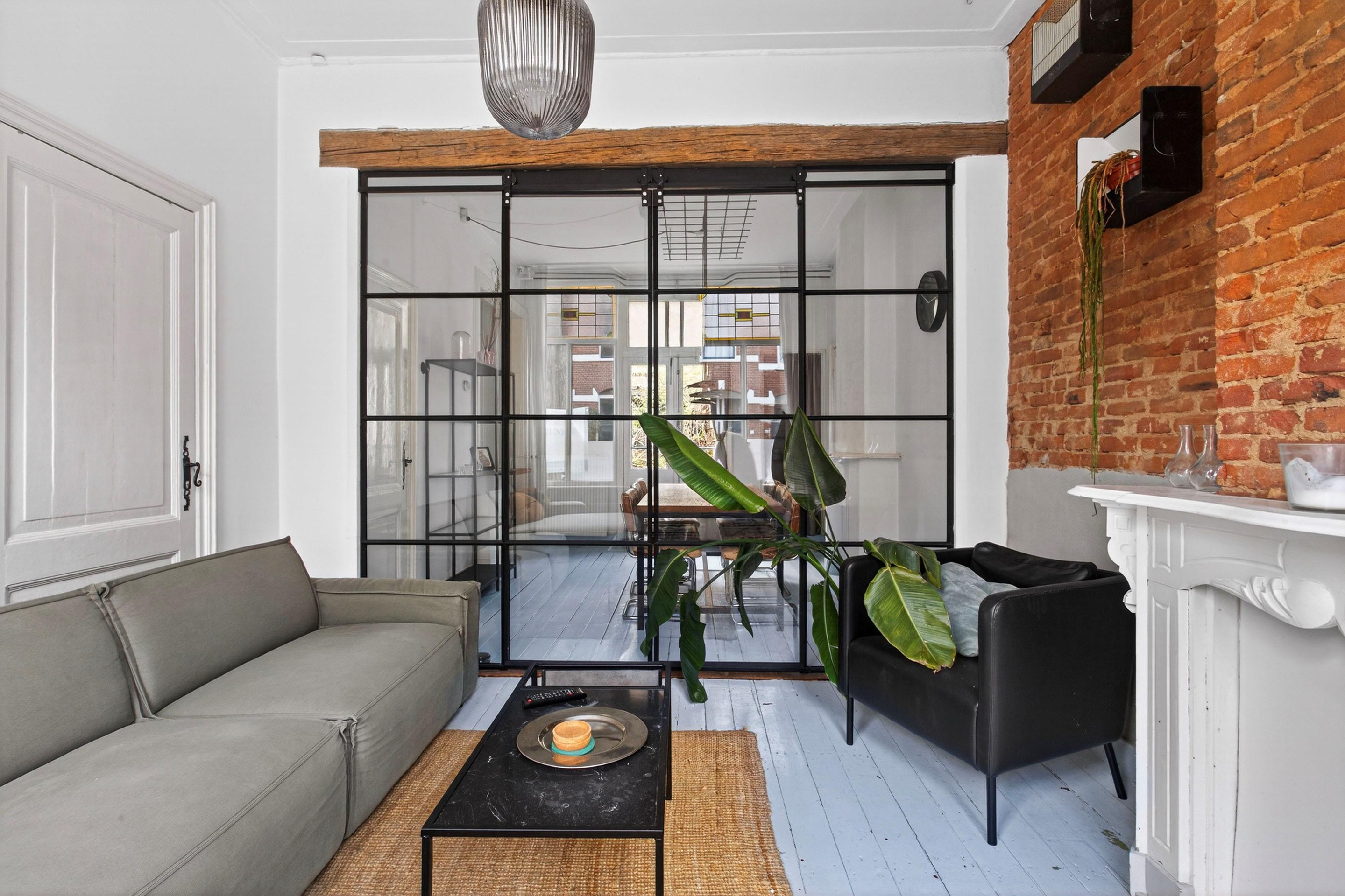 Via je eigen voordeur betreed je de woning en voel je direct de warme sfeer. De ruime eetkamer vormt, tezamen met de sfeervolle woonkamer, het gezellige middelpunt van het huis en loopt over in de knusse woonkamer, waar authentieke elementen zoals schoon metselwerk, glas in lood ramen en een karakteristieke houten balk voor een bijzonder thuisgevoel zorgen. De woonkamer en eetkamer worden gescheiden door sfeervolle schuifdeuren van glas in metaal. De woning is recent optisch gerenoveerd.