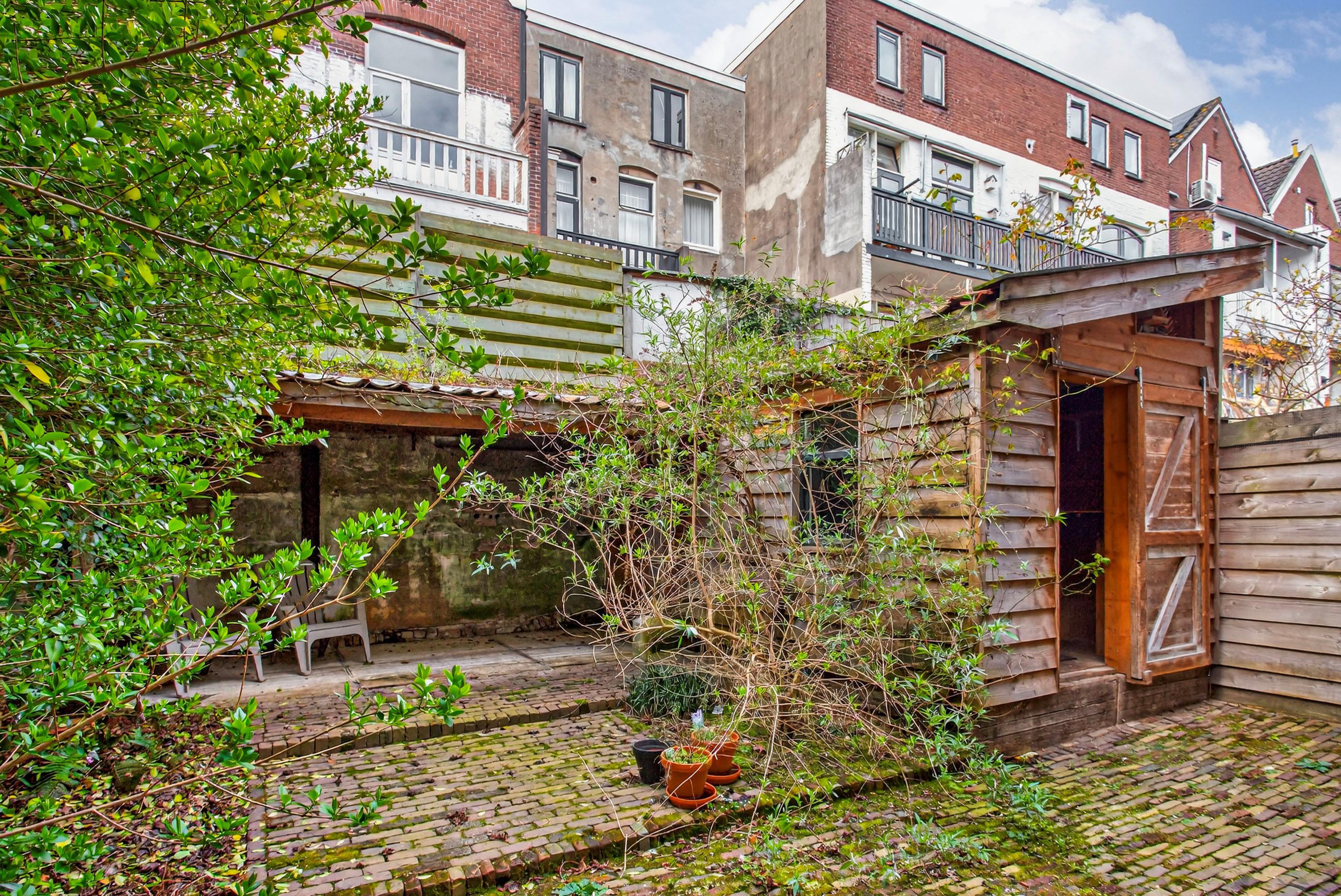 - Royale achtertuin met veranda en houten berging