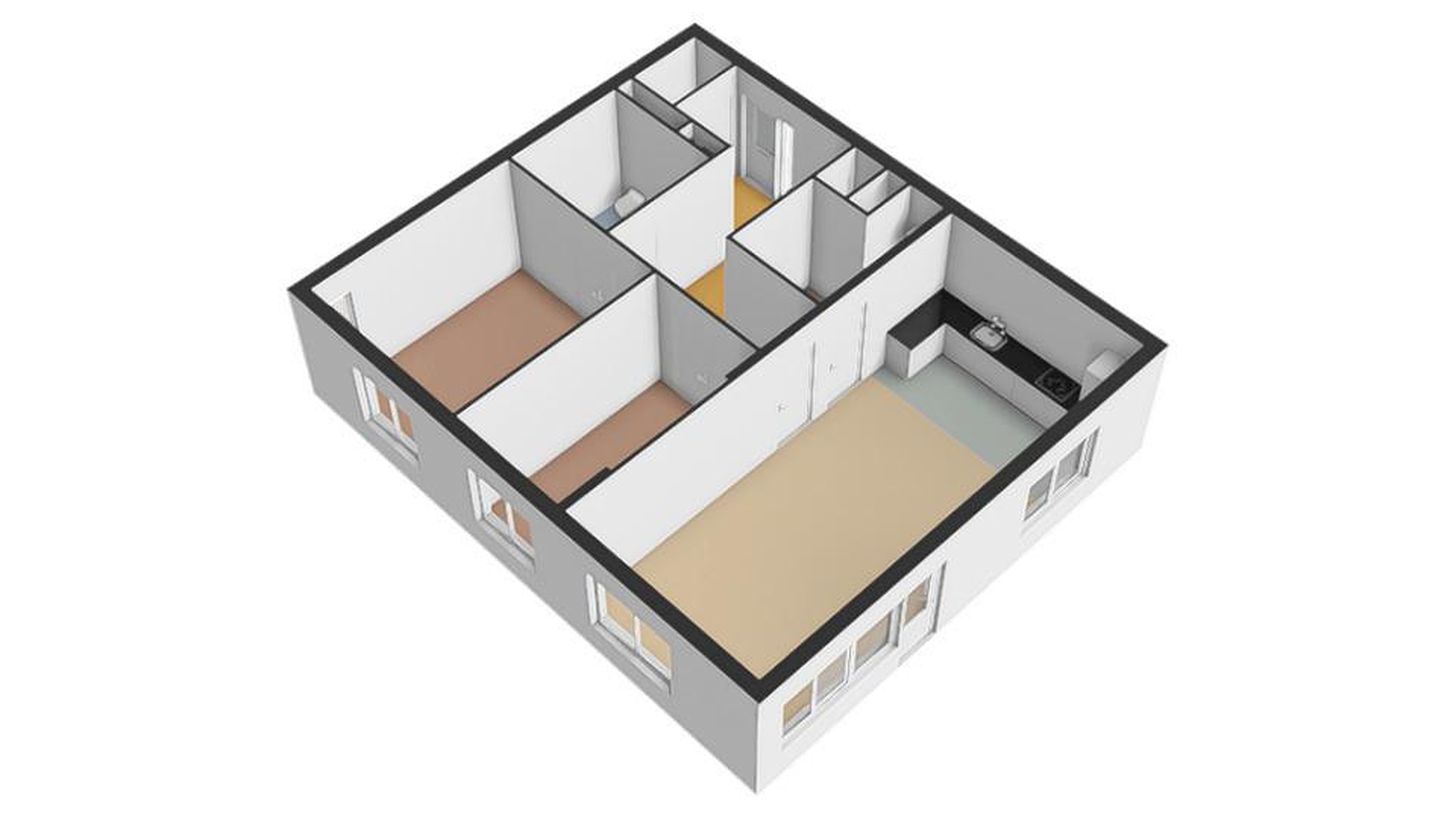 Entree/hal met modern toilet, meterkast, verwarmingsruimte, badkamer met 2e toilet, douche en wastafelmeubel, 2 slaapkamers waarvan de grootste ook direct toegang naar de badkamer heeft. Ruime, lichte woonkamer met toegang naar eigen terras, bergruimte met wasmachineaansluiting, nette keuken voorzien van inbouwapparatuur zoals o.a. inductiekookplaat, magnetron, kleine vaatwasser, koel/vriescombinatie en natuurstenen blad.