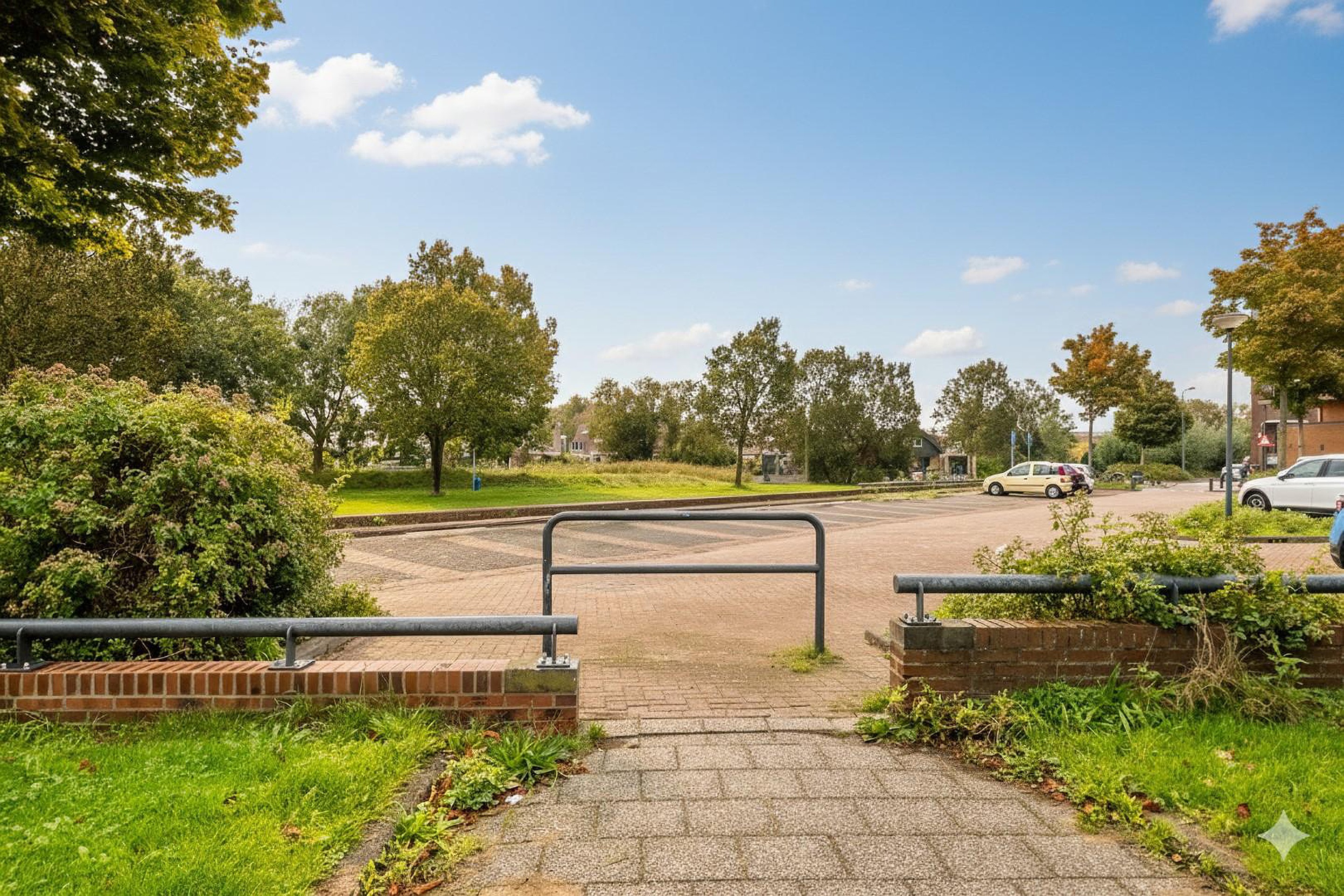 Eigen terras aan de zonkant met uitzicht op openbaar groen.