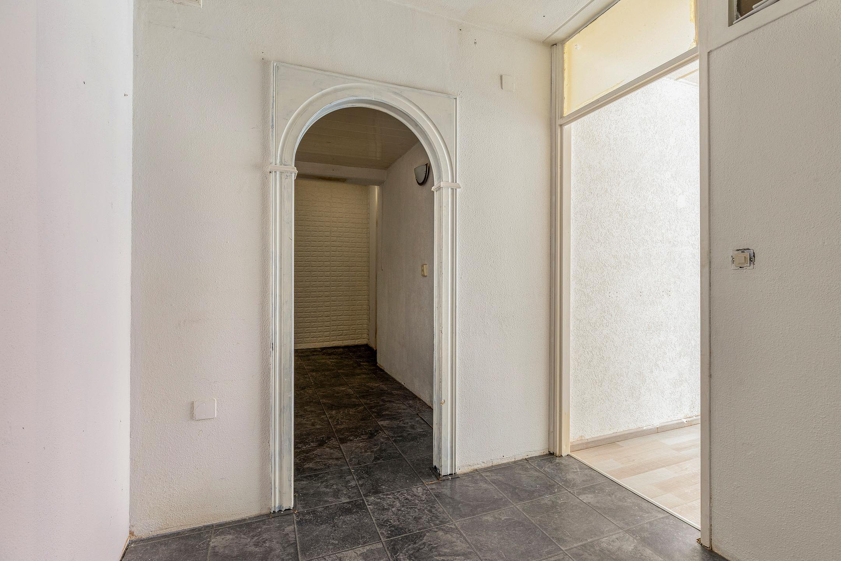 Entree/hal met toegang tot de woonkamer, badkamer en meterkast.