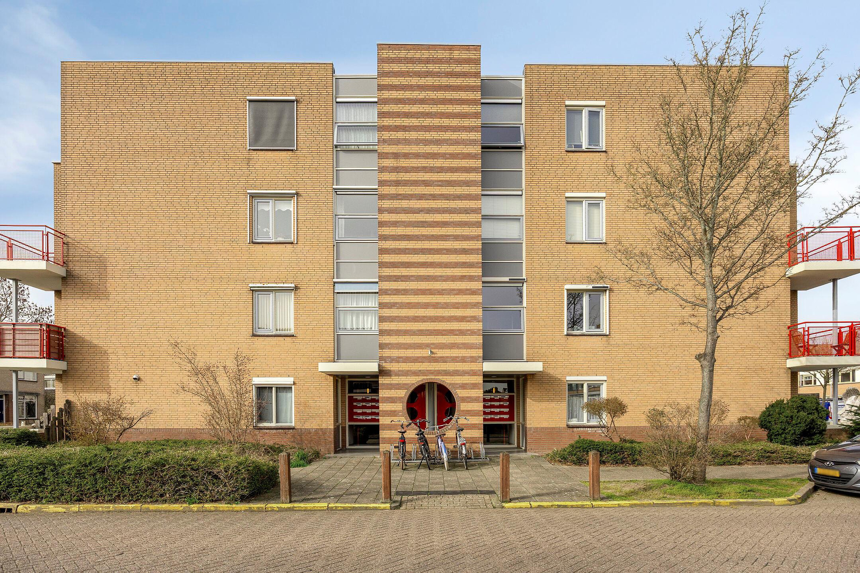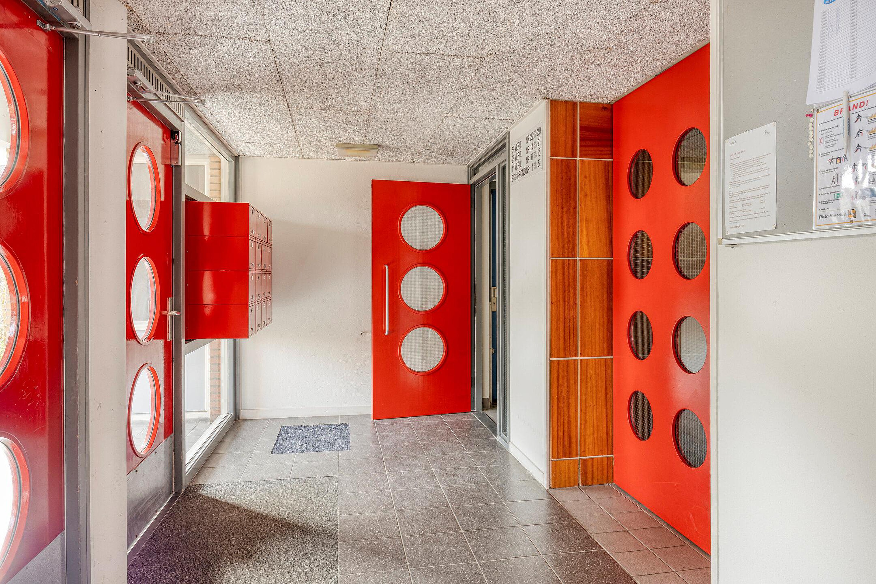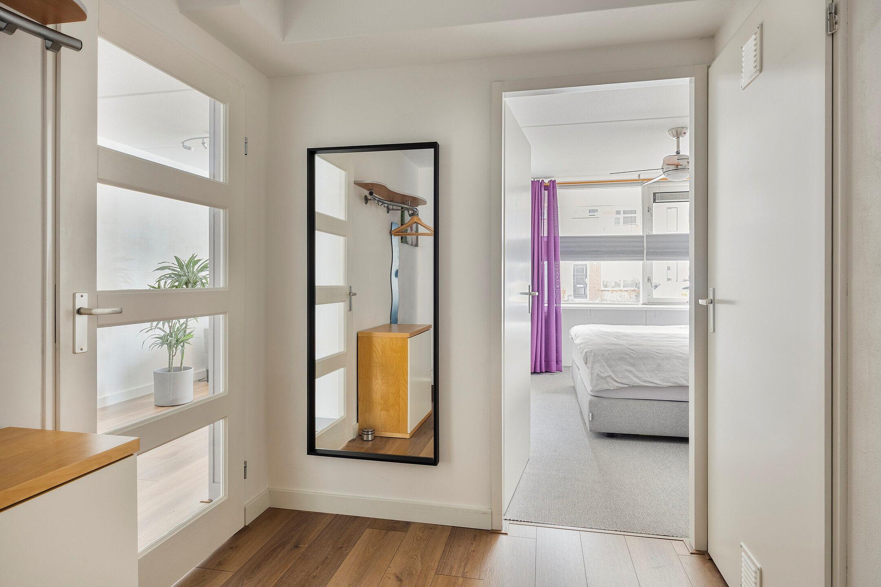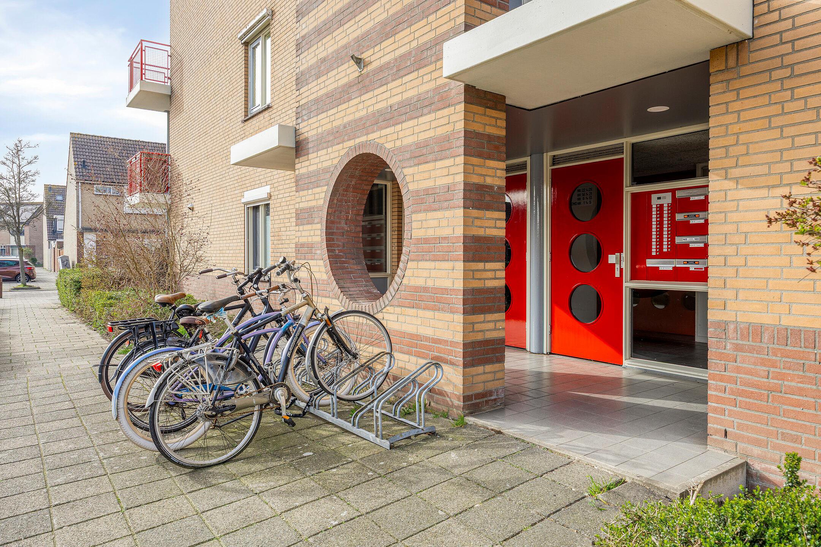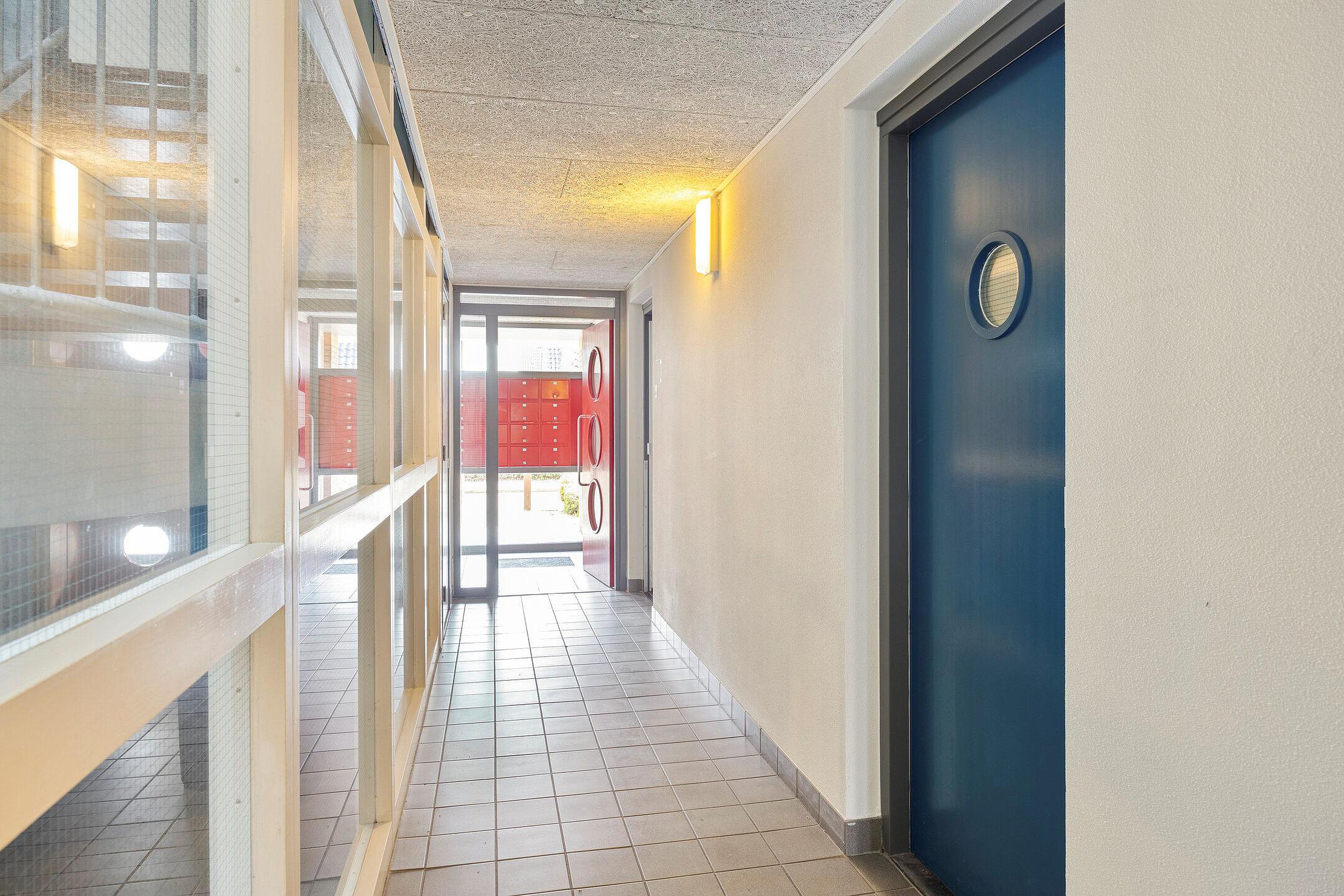 Afgesloten entree met bellentableau en brievenbussen. De hal, die toegang geeft tot het appartement, geeft ook toegang tot de (fietsen-)berging. Deze ligt schuin tegenover de entree van de woning.
