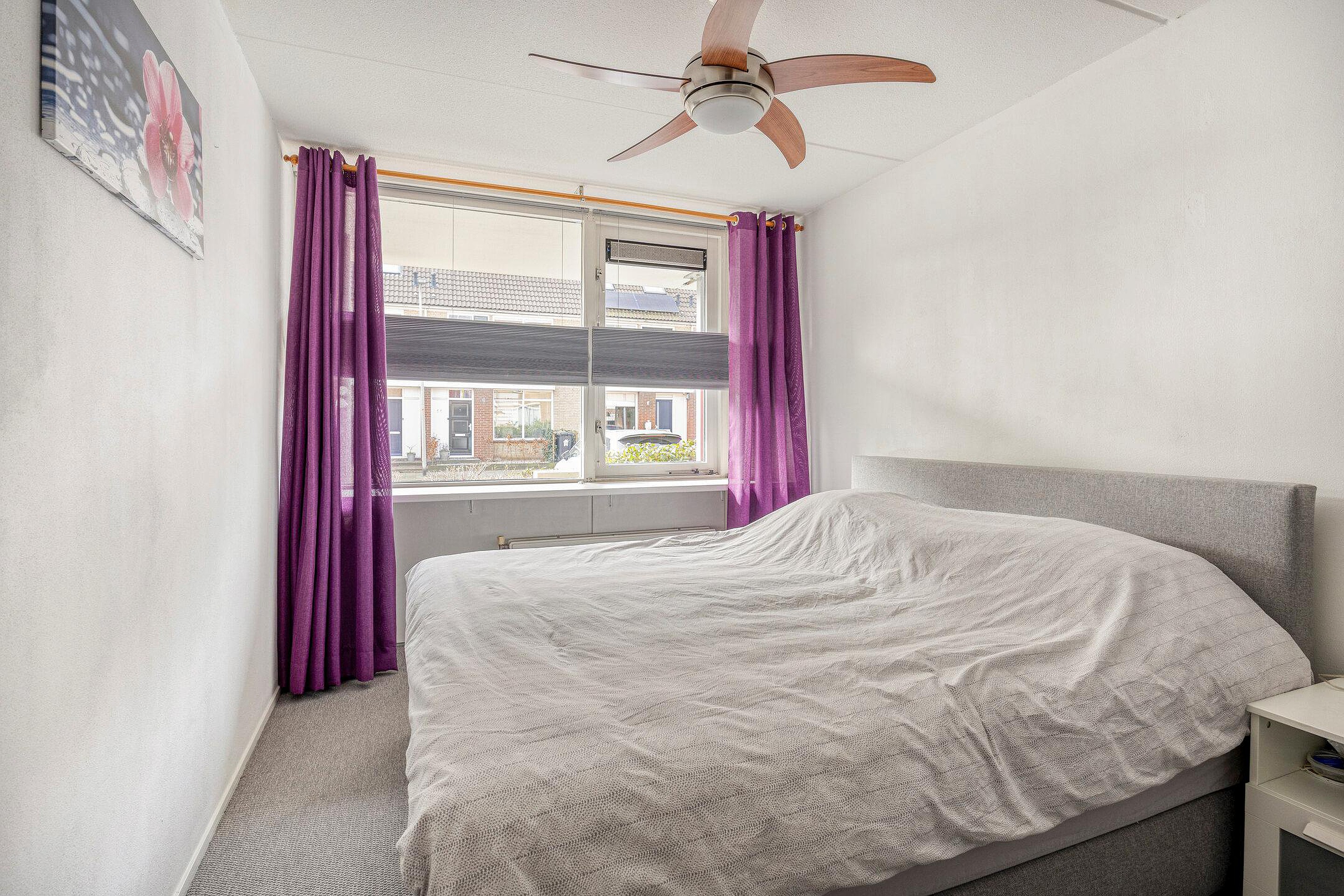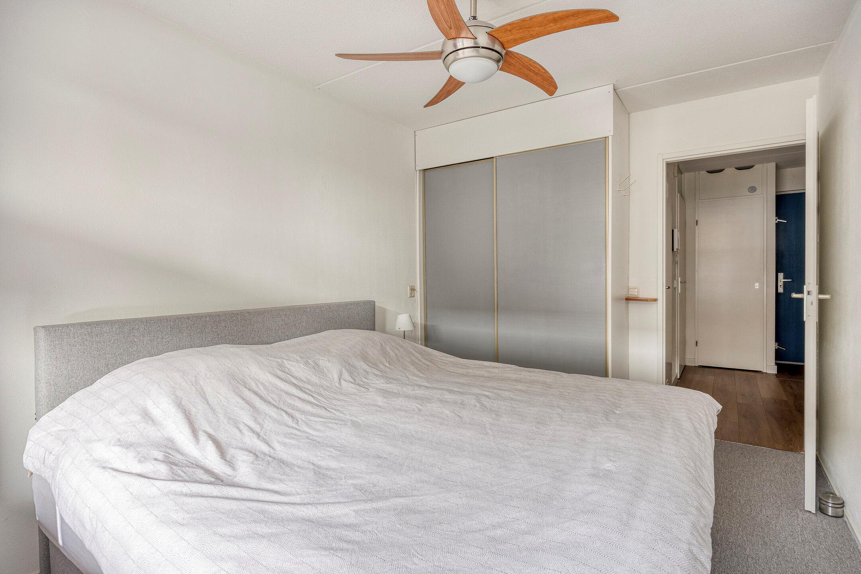 De slaapkamer is te bereiken vanuit de hal en heeft een fijne lichtinval.