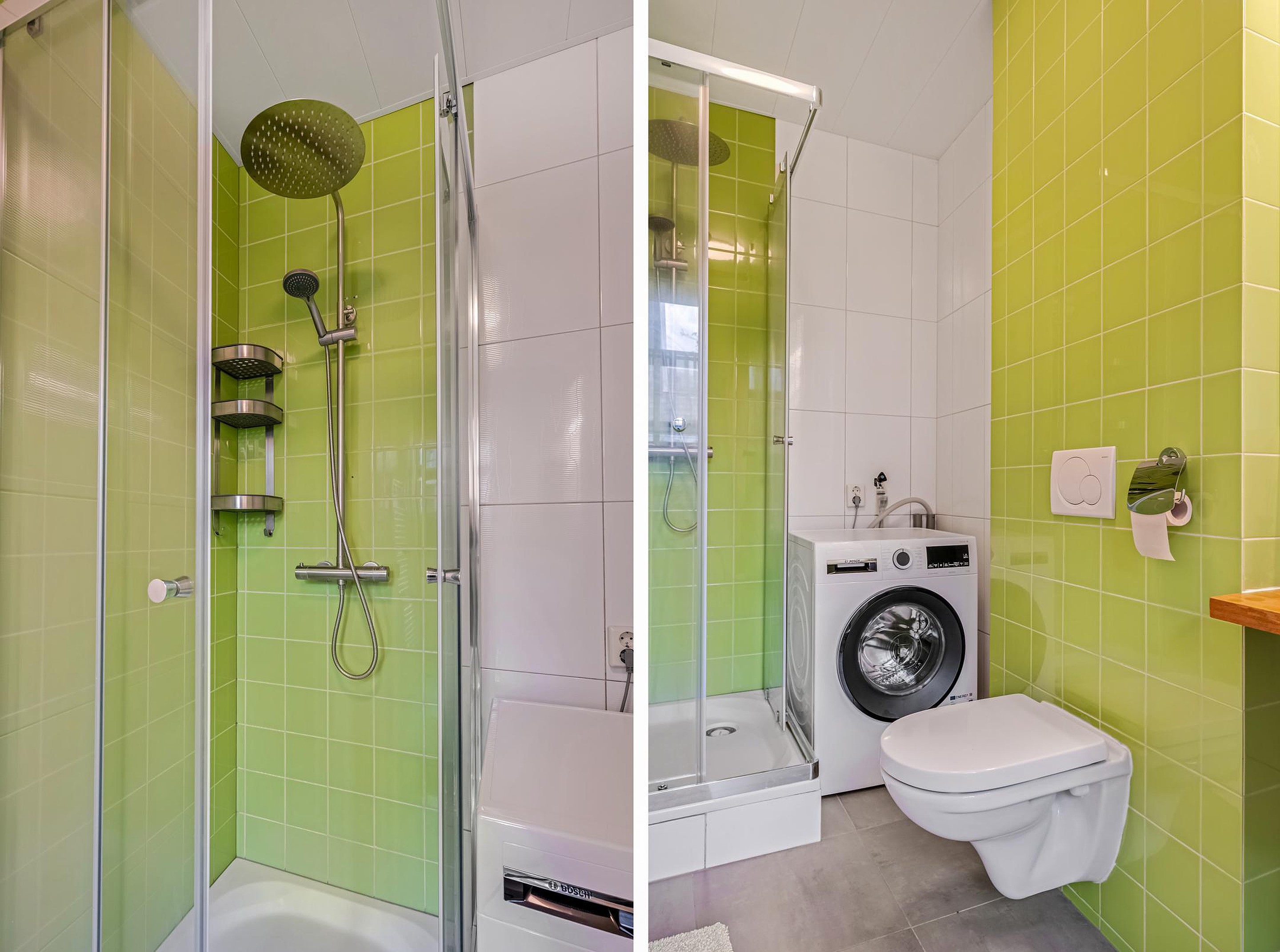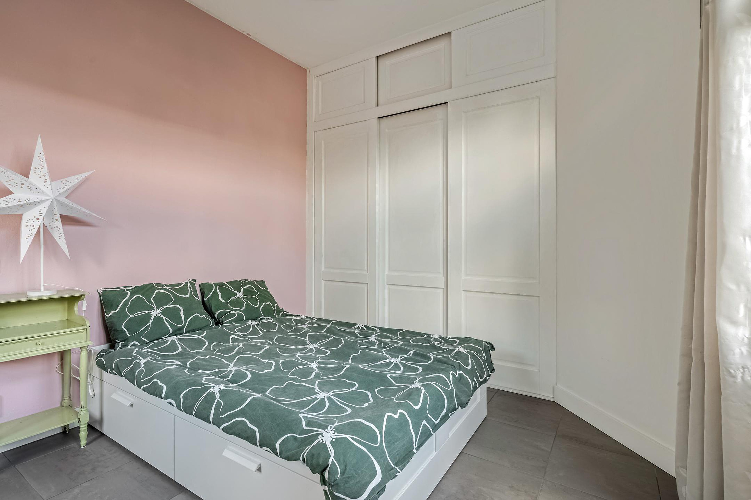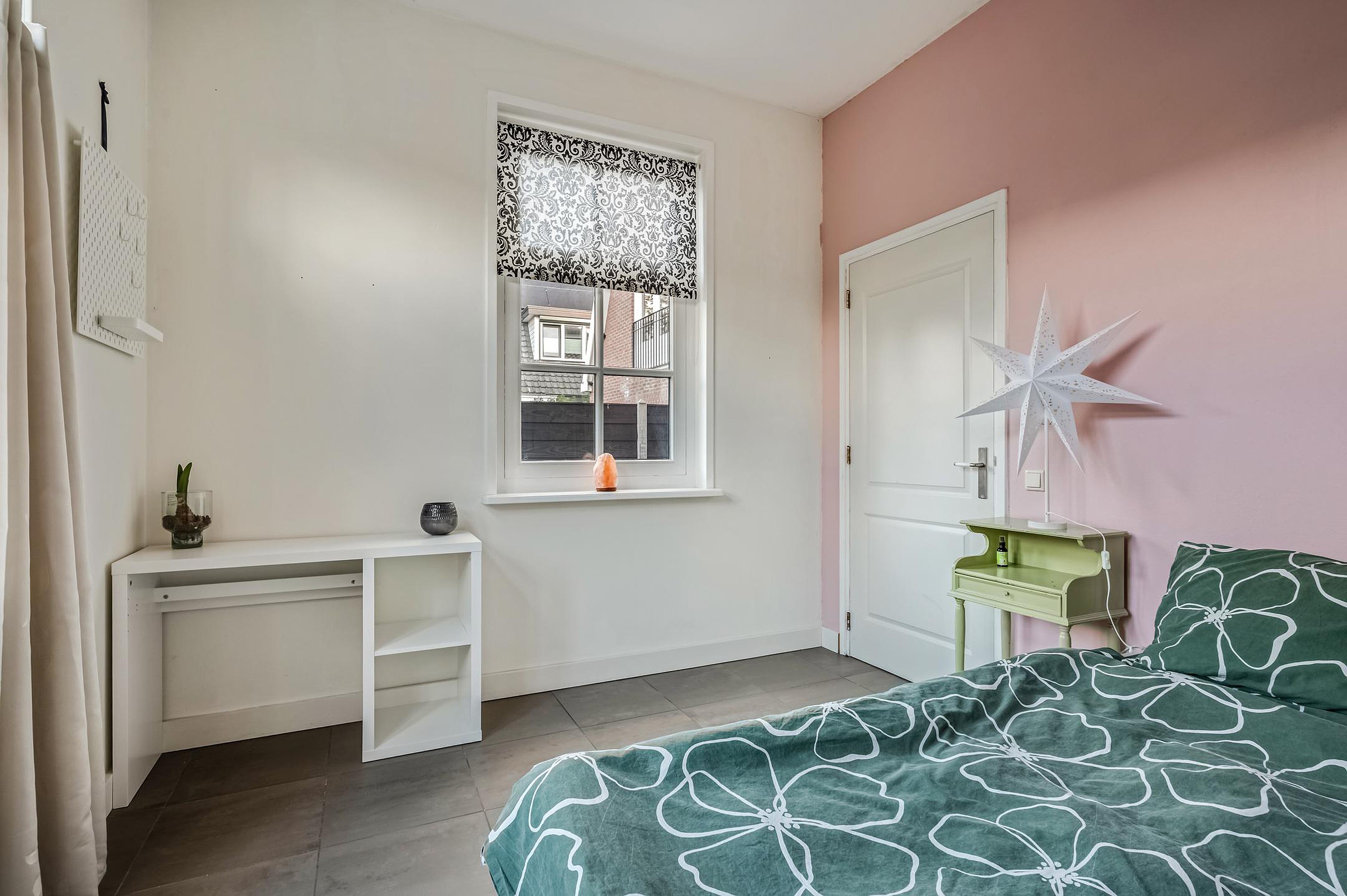 Aan de achterzijde ligt de slaapkamer met een hoge vaste kastenwand en openslaande deuren naar het terras. Ook de CV-ketel (2014) is netjes weggewerkt in de kastenwand. De naastgelegen badkamer is verzorgd en uitgerust met een douche, wastafelmeubel, spiegelkast, wandcloset, handdoekenradiator en regendouche met thermostaatkraan. Ook de wasmachine blijft achter.