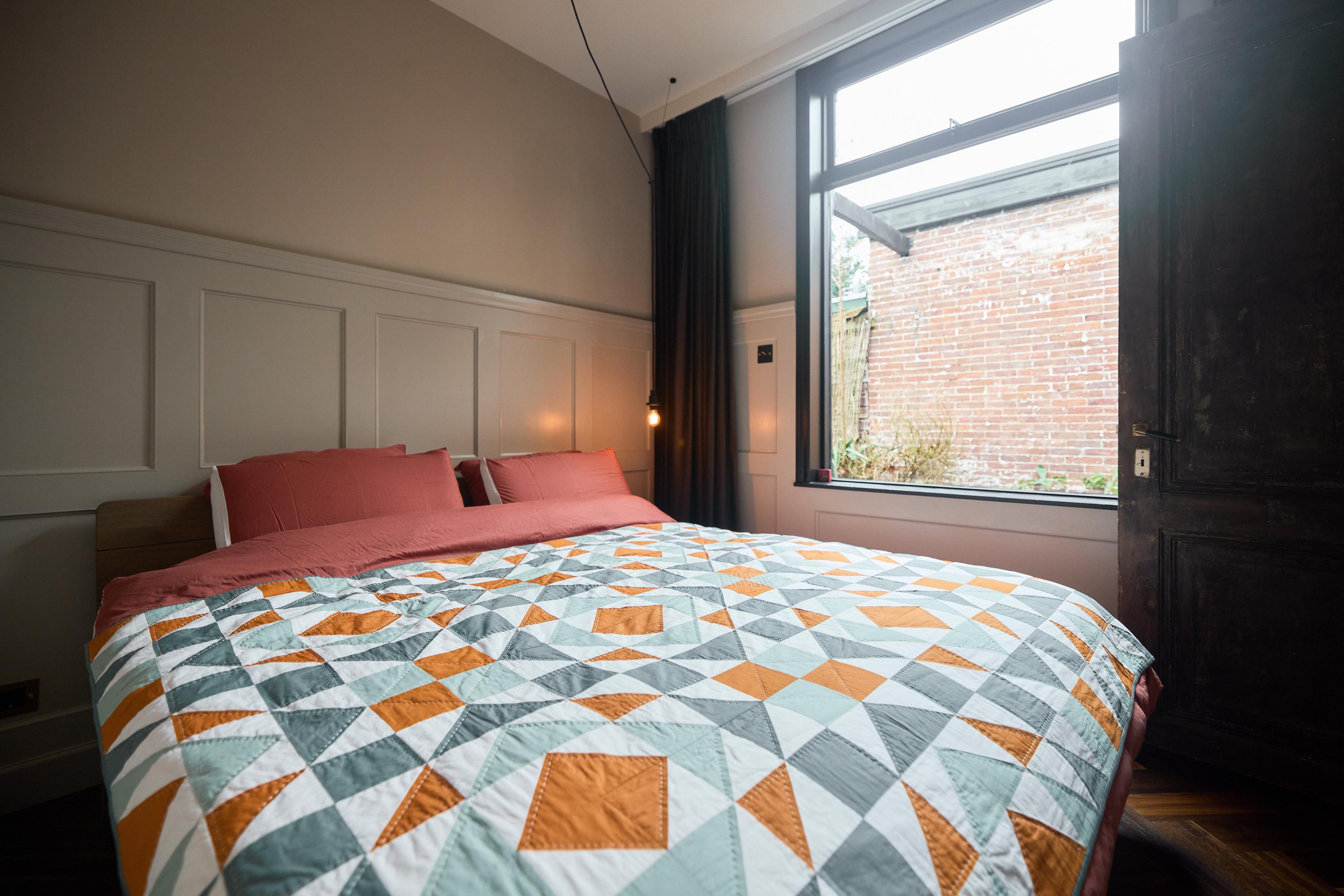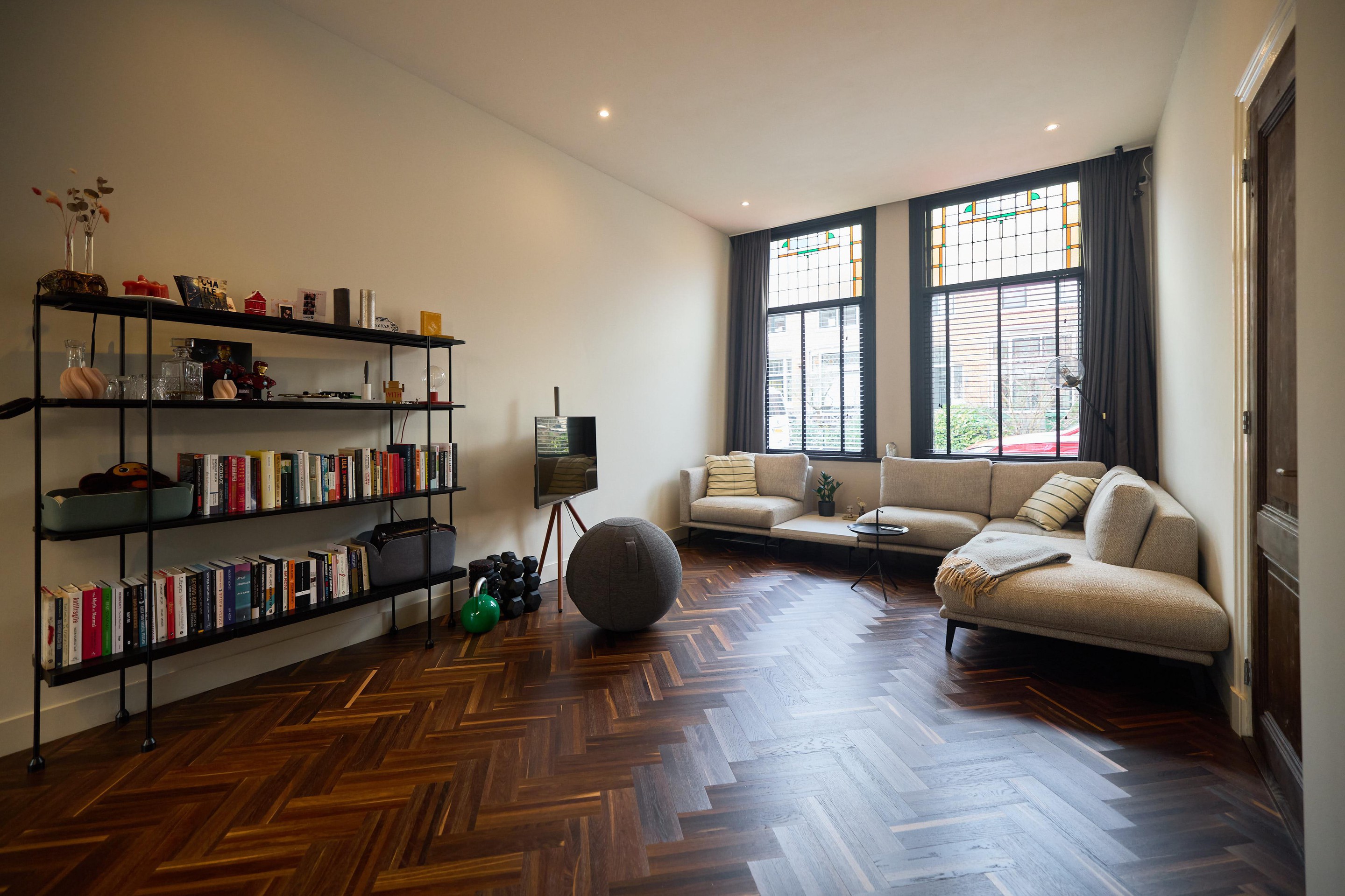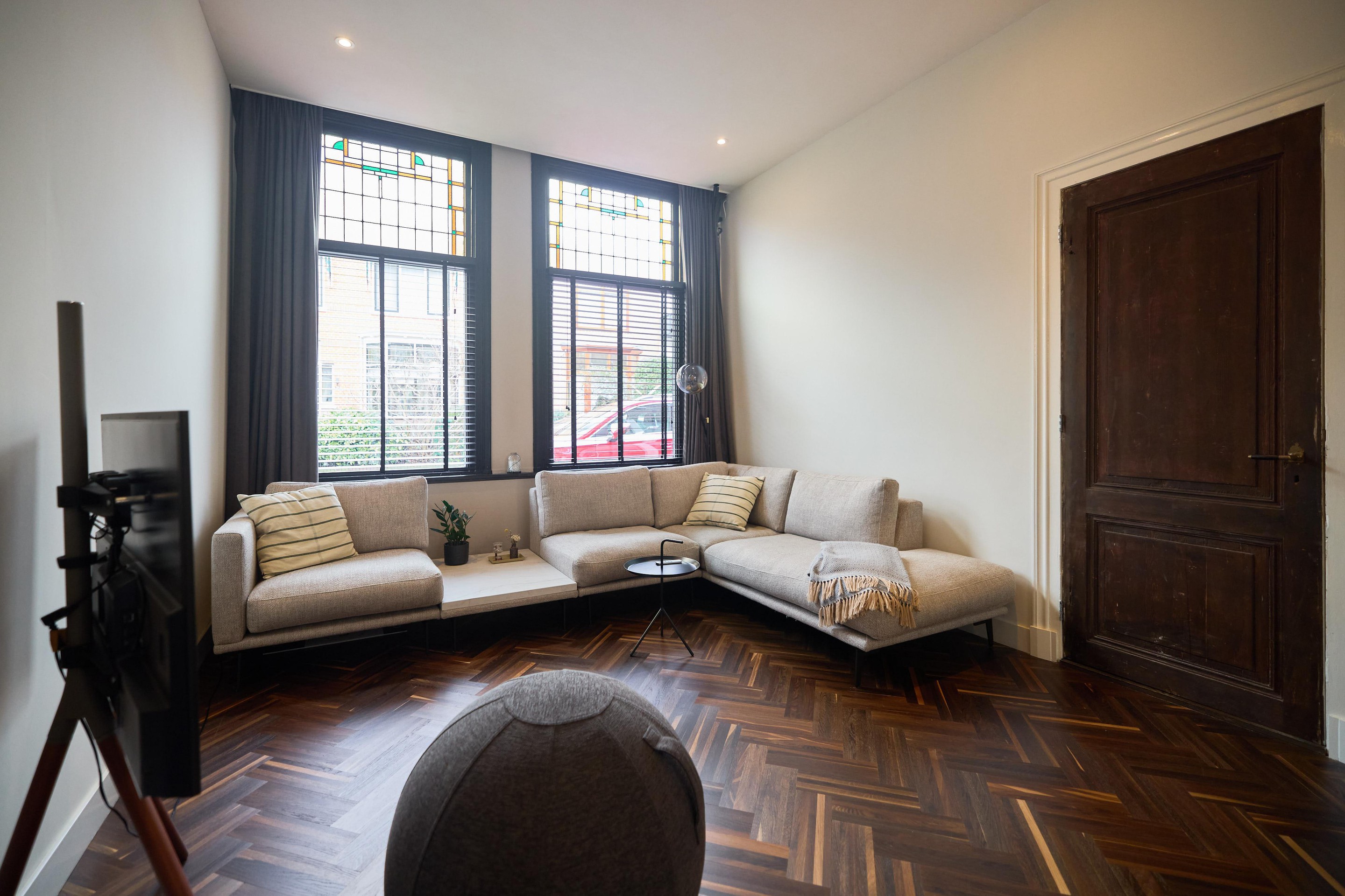 Aan alles zie je dat deze benedenwoning tijdens de renovatie in 2019 met zorg en aandacht is vernieuwd. Het glas-in-lood springt direct in het oog, maar ook de subtiele details maken het verschil: schakelmaterialen van Buster + Punch, een slim voordeurslot, Ring deurbel en een Novy afzuigkap. Hier is bewust gekozen voor kwaliteit en duurzaamheid.