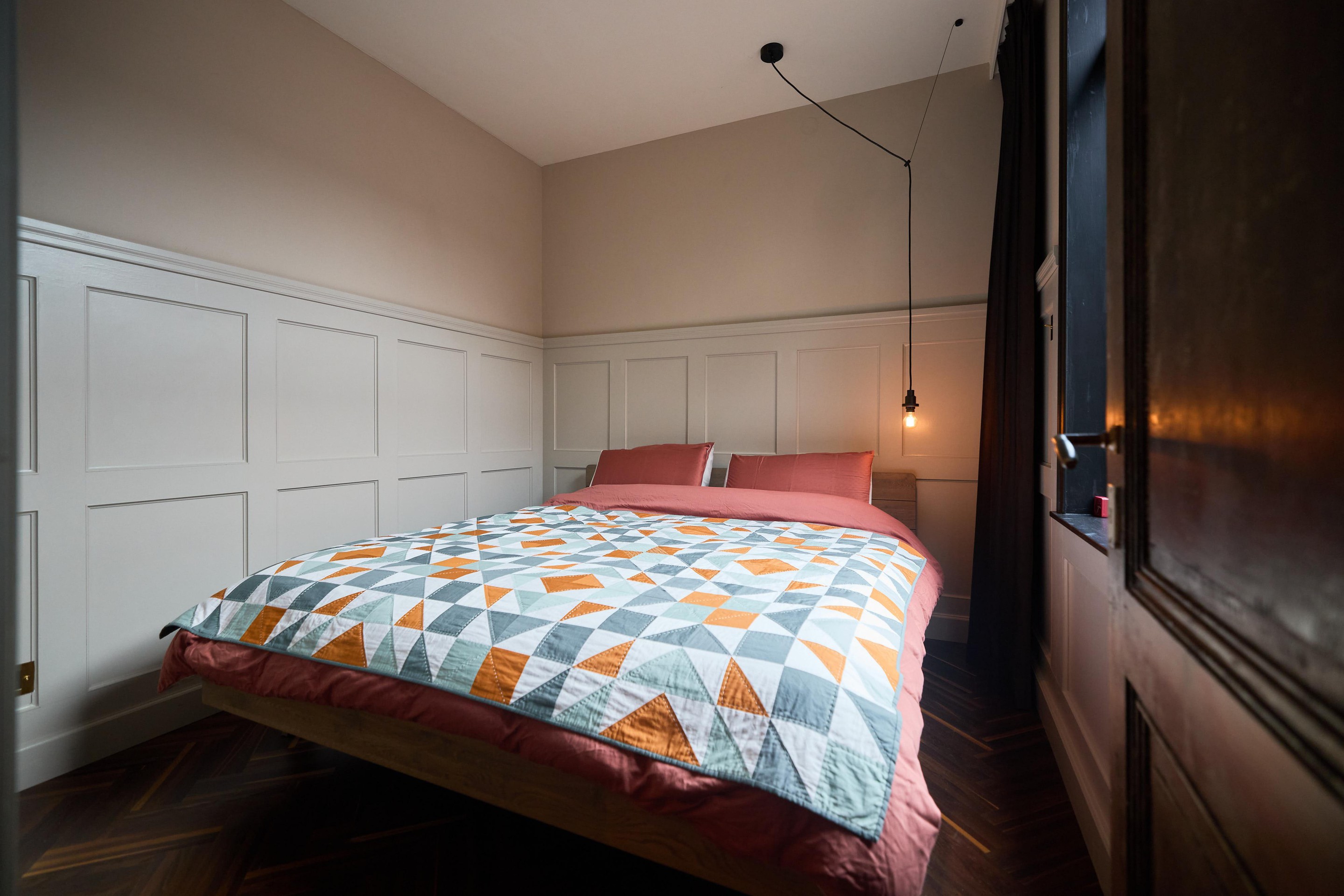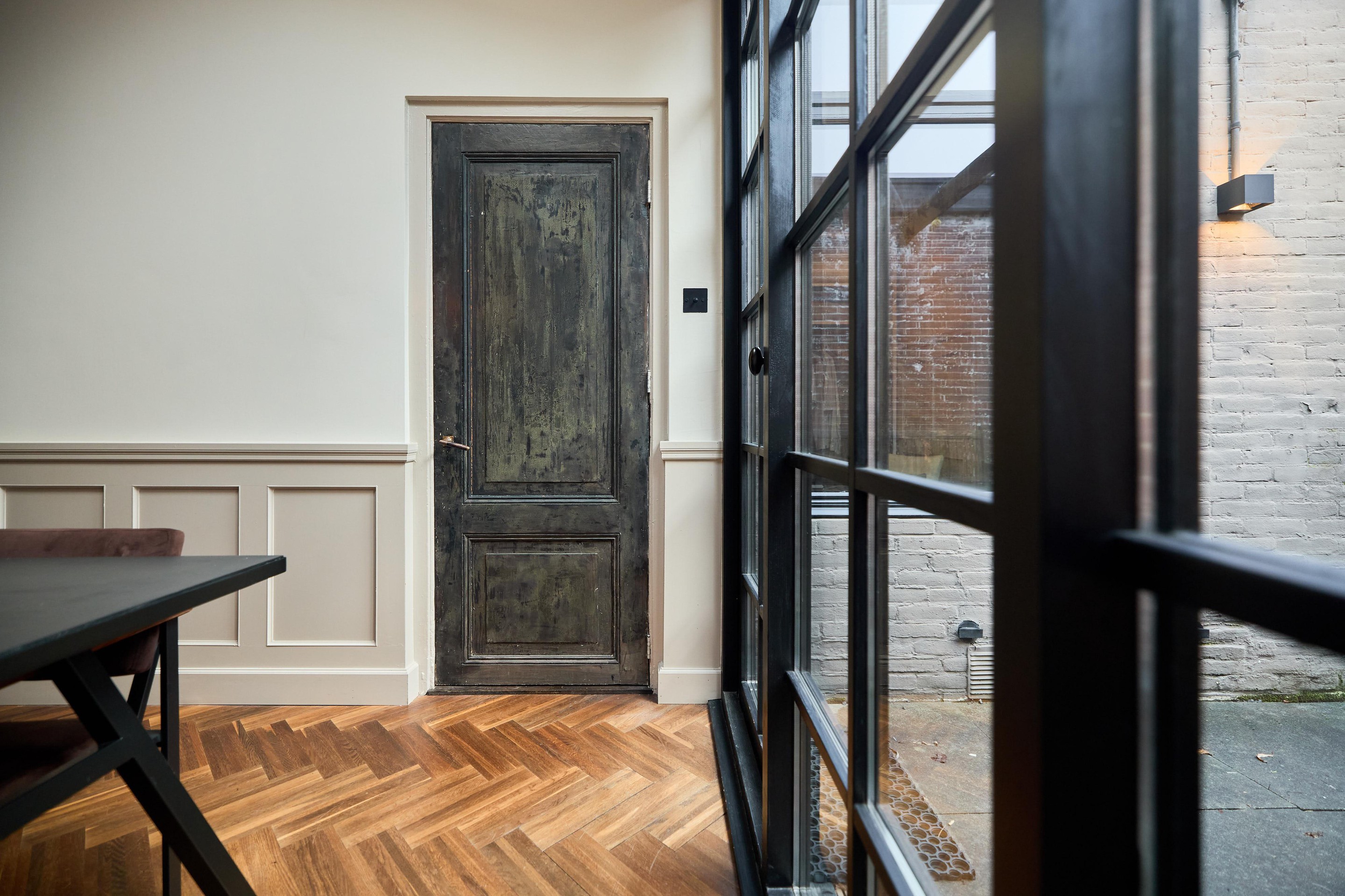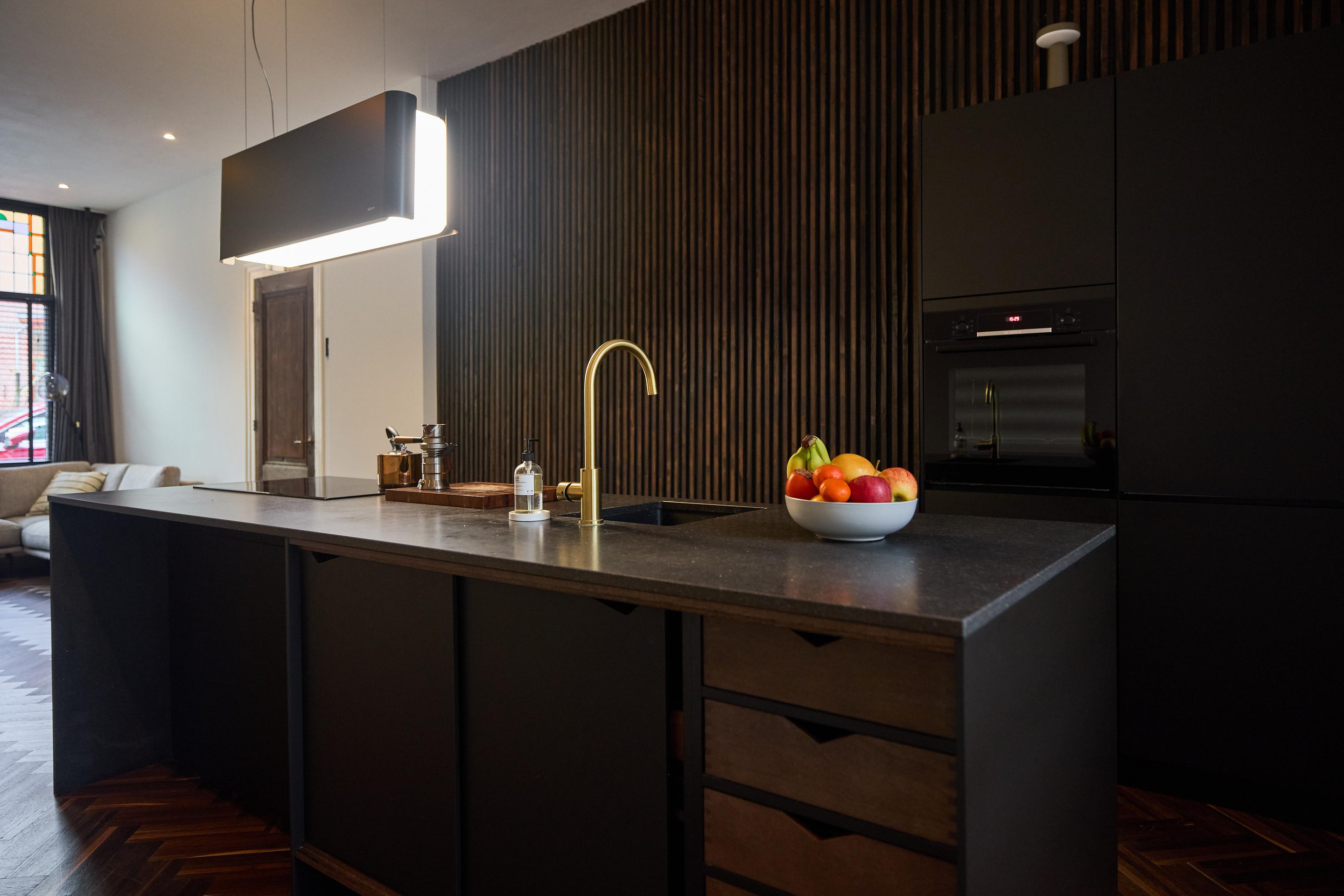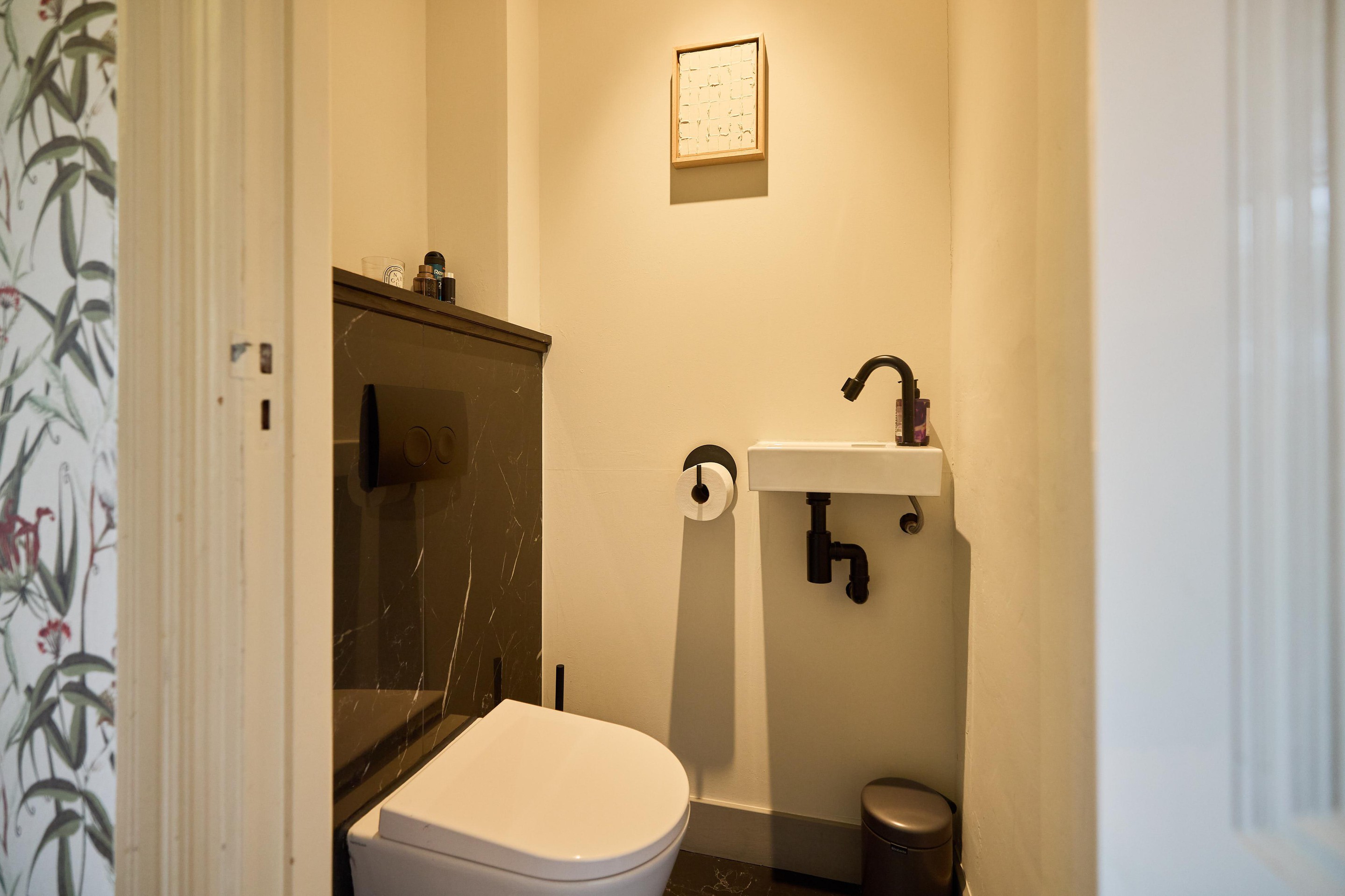Aan alles zie je dat deze benedenwoning tijdens de renovatie in 2019 met zorg en aandacht is vernieuwd. Het glas-in-lood springt direct in het oog, maar ook de subtiele details maken het verschil: schakelmaterialen van Buster + Punch, een slim voordeurslot, Ring deurbel en een Novy afzuigkap. Hier is bewust gekozen voor kwaliteit en duurzaamheid.