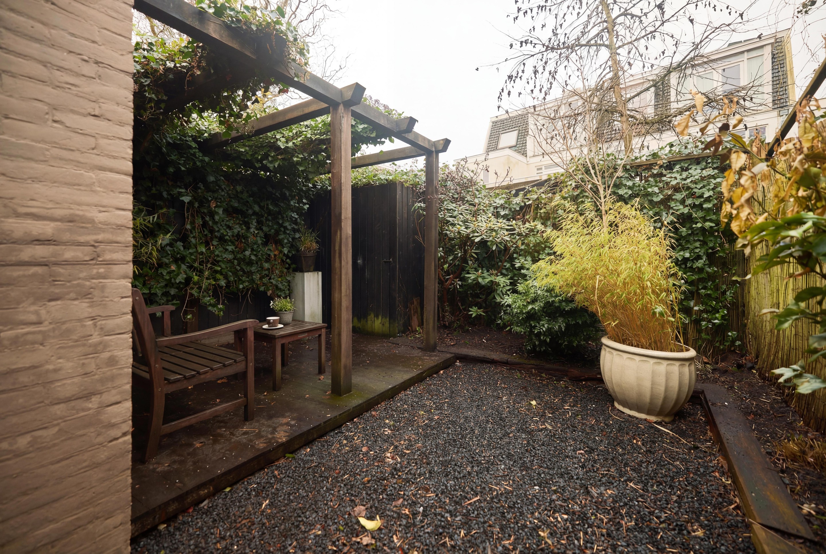 Tuin De op het zuiden gelegen achtertuin vormt een volwaardig verlengstuk van de woning. Dankzij deze gunstige ligging geniet je hier van veel zonuren en een prettige lichtinval gedurende de dag. De tuin is onderhoudsvriendelijk aangelegd met een combinatie van bestrating en grind, wat zorgt voor een rustige en verzorgde uitstraling. Direct aan de woning bevindt zich een terras, ideaal voor een zit- of eethoek. Verderop onder de pergola creëer je eenvoudig een tweede, beschutte plek om te ontspannen. Achterin de tuin staat een praktische schuur voor extra bergruimte. Hier woon je gelijkvloers mét een fijne buitenruimte op het zuiden, een zeldzame combinatie in de stad.