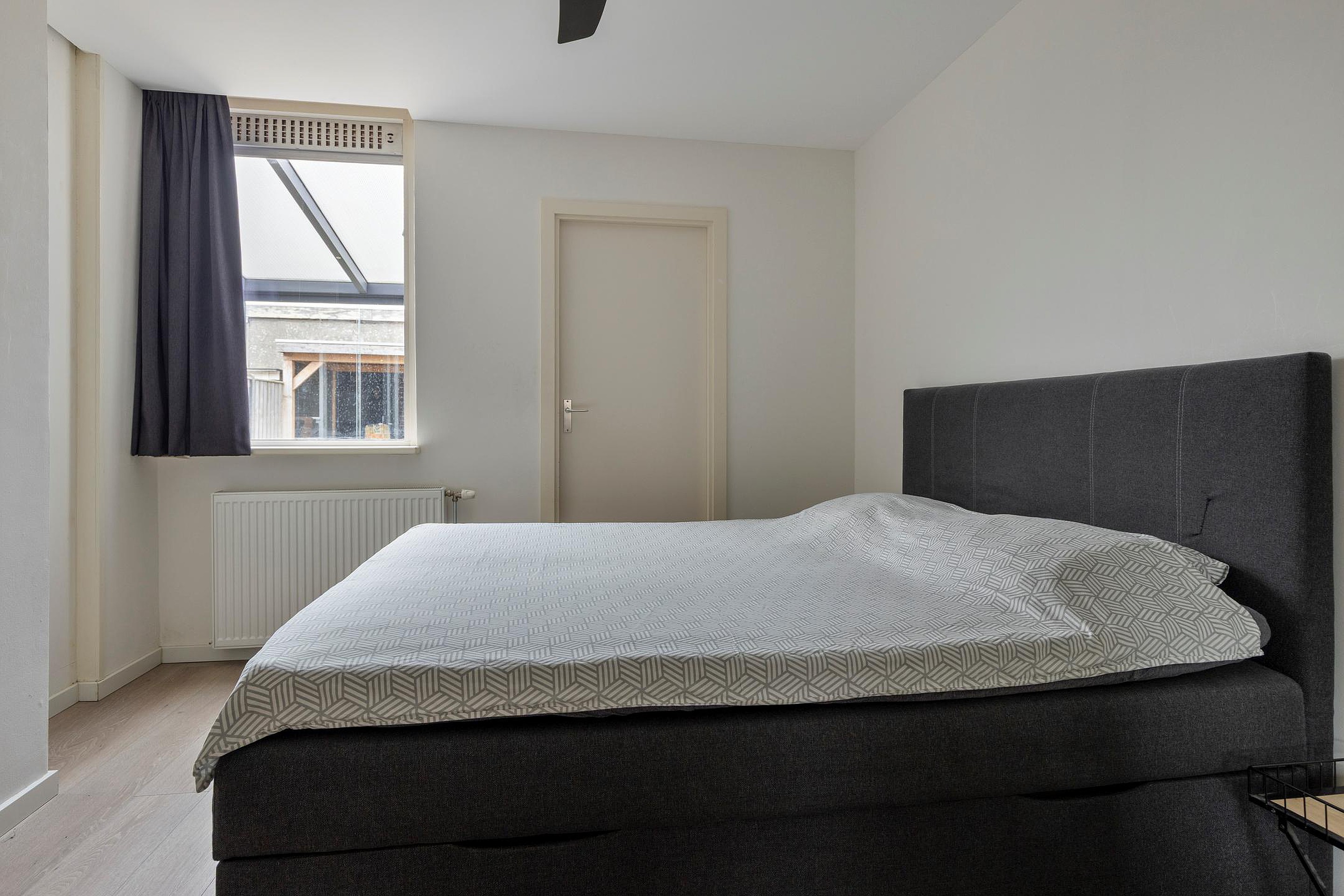 Begane grond: entree, hal met een vaste kast, toilet, ruime woonkamer met een erker en een eetgedeelte, luxe open keuken met diverse inbouwapparatuur, 1 ruime slaapkamer met een vaste kast, keurige badkamer met een inloopdouche, wastafelmeubel, opstelplaats wasmachine/droger en kast voor CV-ketel. Via de loopdeur in de keuken toegang tot de royale serre met een zithoek en tevens toegang via de glazen schuifwand naar de zonnig gelegen achtertuin (N/W) met een vrijstaande houten overkapping en berging.