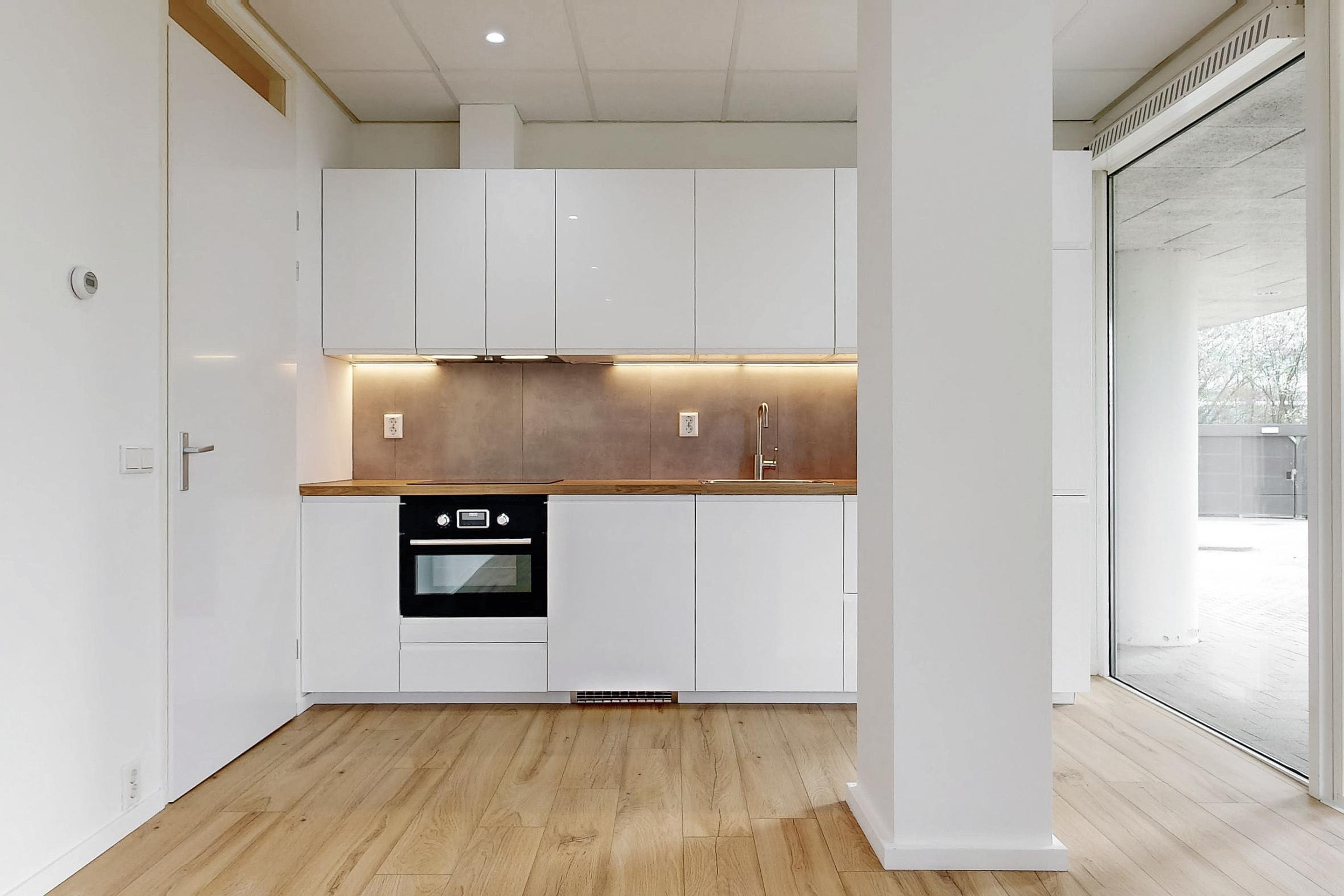 Zodra je over de drempel stapt, voel je het meteen: dit is geen doorsnee appartement. Dankzij de volledige renovatie voelt alles nieuw aan – de vloeren zijn smaakvol aangelegd, de wanden glad gestuukt en het plafond netjes afgewerkt. Het gevoel van ruimte wordt versterkt door de royale raampartijen in de woonkamer. Of je nu ’s morgens wakker wordt met een kop koffie, of na een dag werken ontspant op de bank, dat lichte karakter zorgt altijd voor een fijne sfeer.