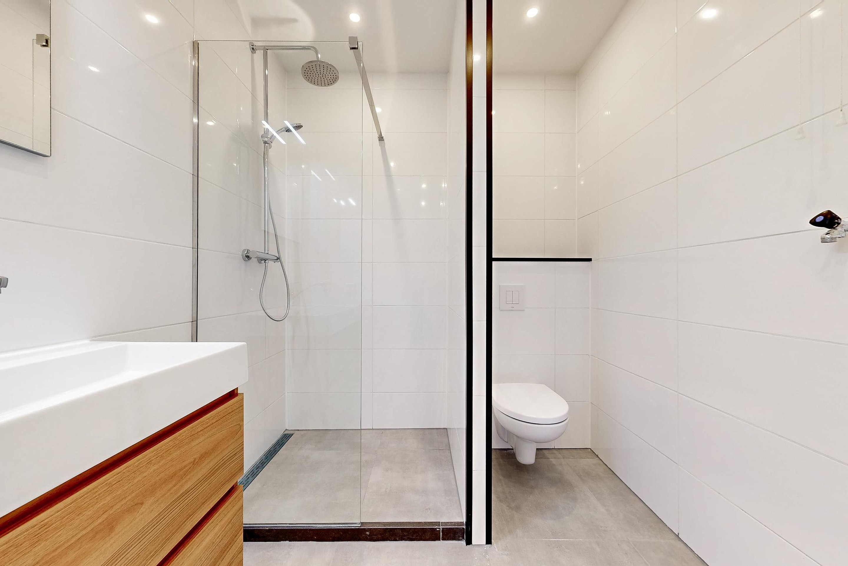 For true kitchen enthusiasts: cooking here is a joy! The modern kitchen immediately catches the eye with its smart layout, sleek countertop, and brand-new appliances. Whether you want to surprise your friends with a homemade dinner or just whip up a quick grilled cheese, anything is possible. The bathroom complements this perfectly: fresh tiling, brand-new fixtures, a spacious shower, and contemporary details make this the ideal place to recharge.