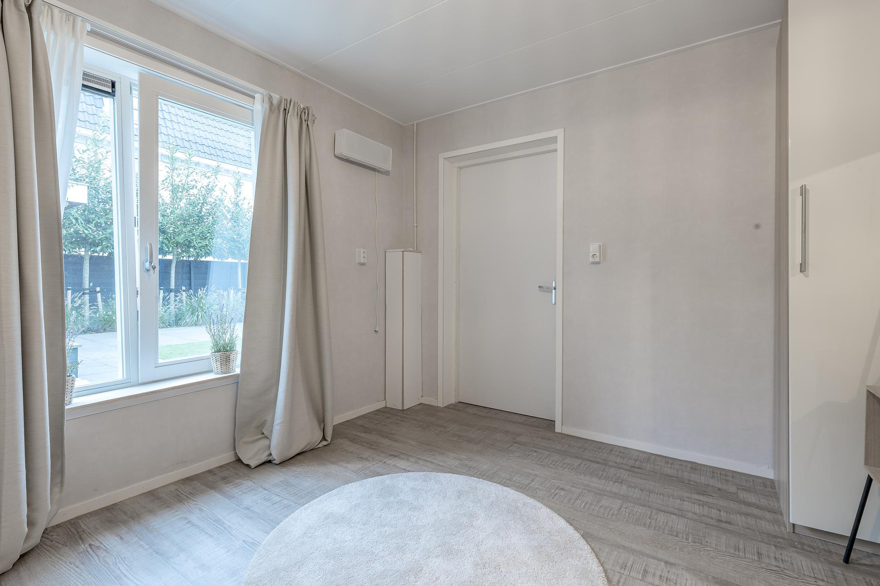 De slaapkamer is ruim van formaat en biedt voldoende plek voor een tweepersoonsbed en een kastenwand. Door de rechte wanden is deze kamer efficiënt in te delen.