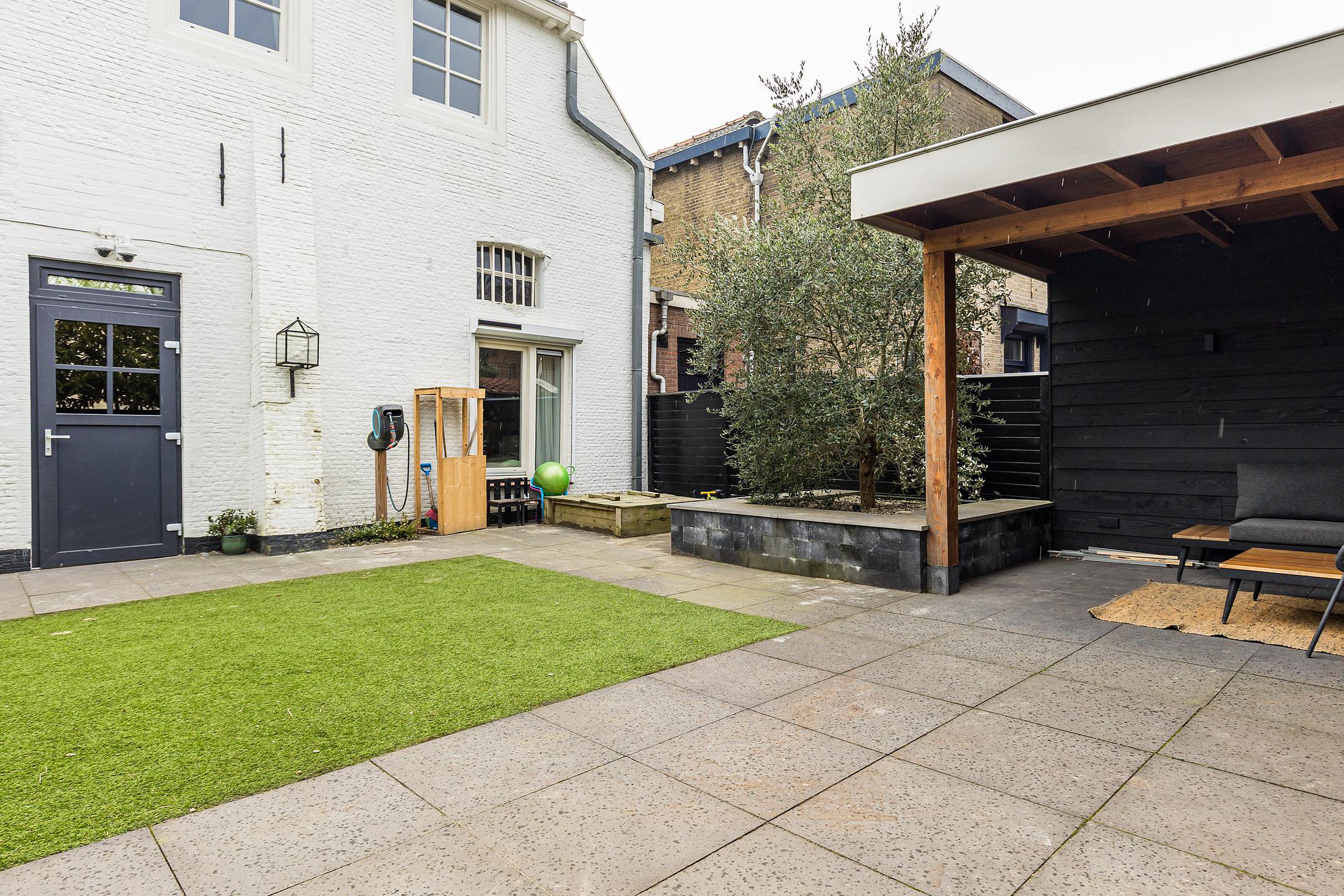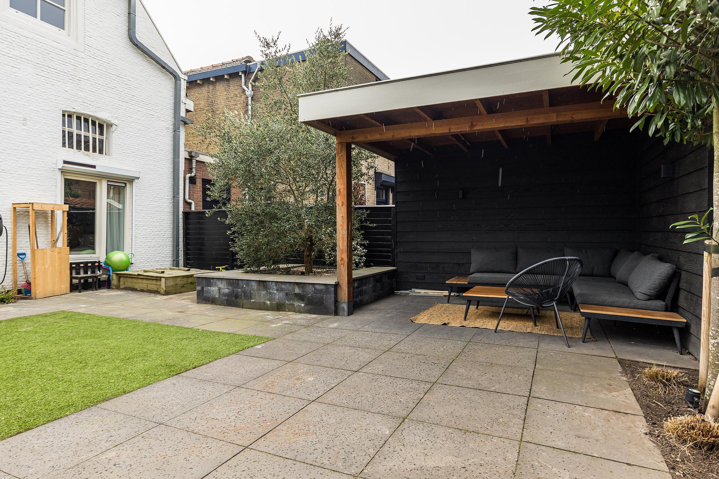 De achtertuin van ca. 55 m2 is een fijne, beschutte buitenruimte. Dankzij de overkapping zit je hier al vroeg in het voorjaar en tot laat in het najaar comfortabel buiten. De achterom zorgt voor extra gemak.