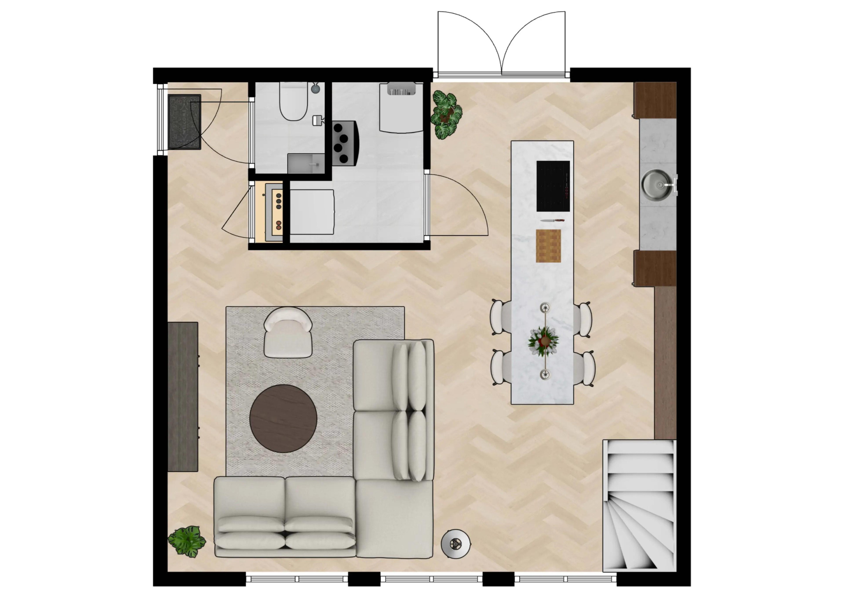 Bouwnummer A1 (76,5m2 / bruto 101m2) – split level, baden in het licht.