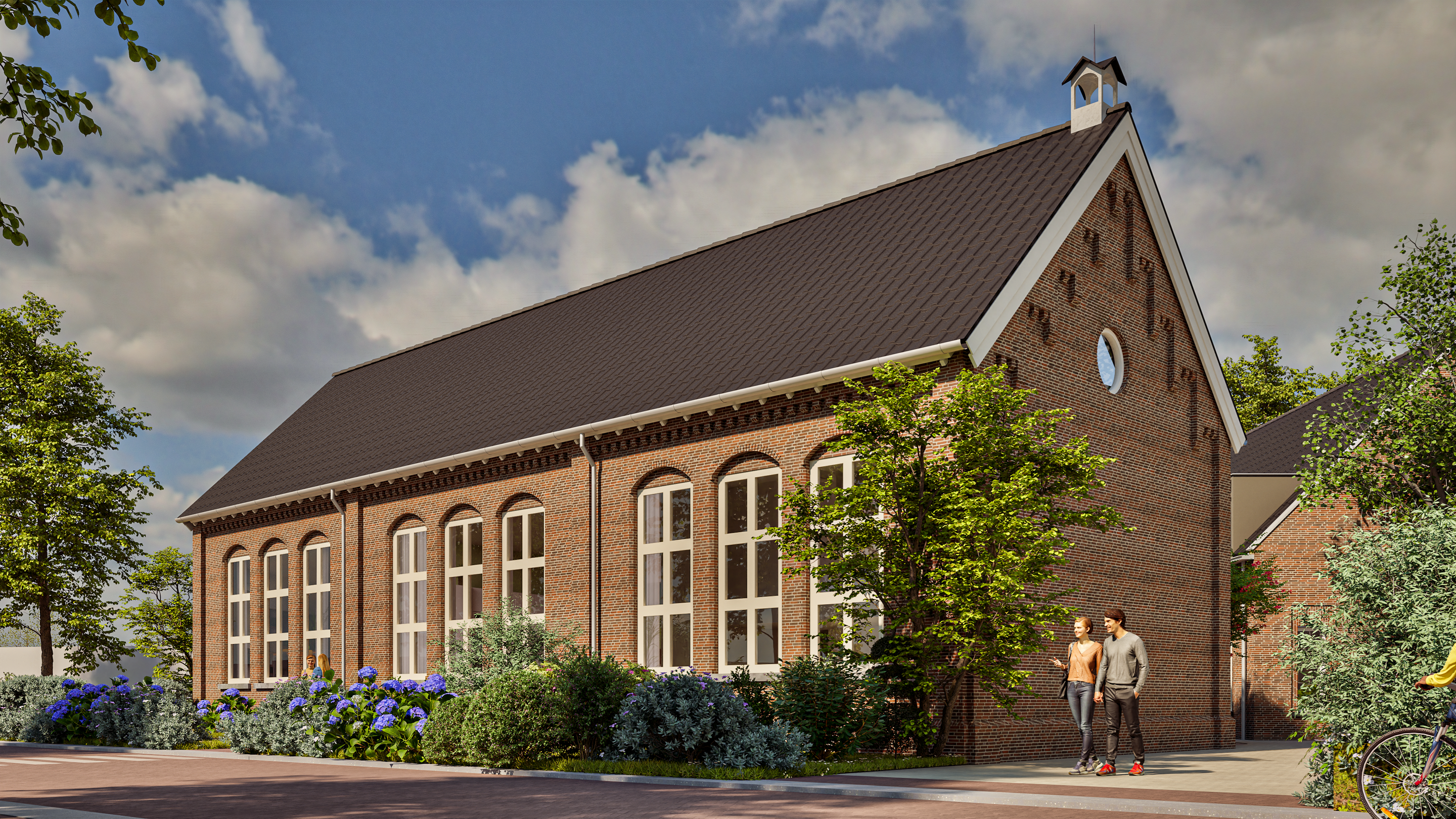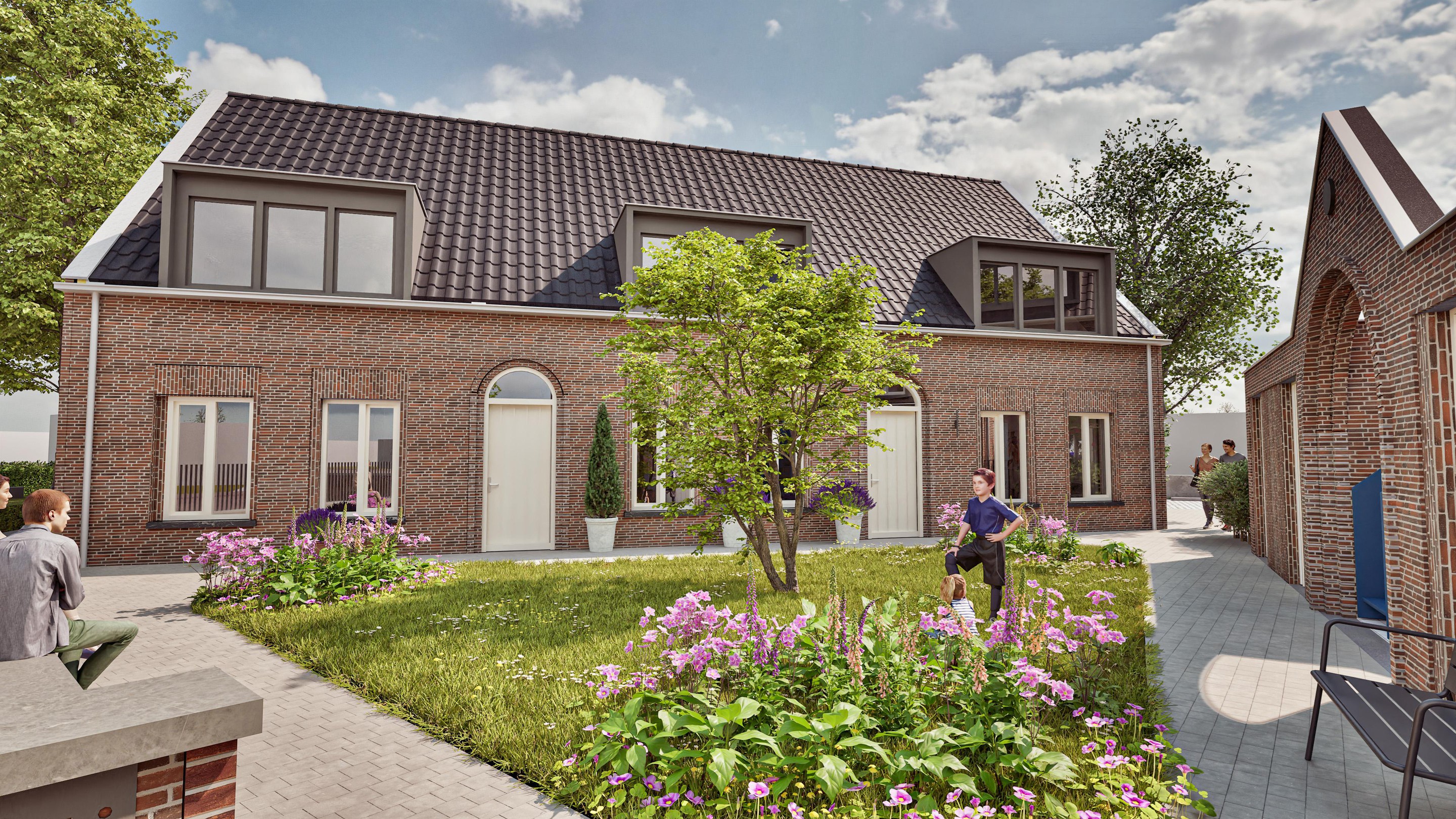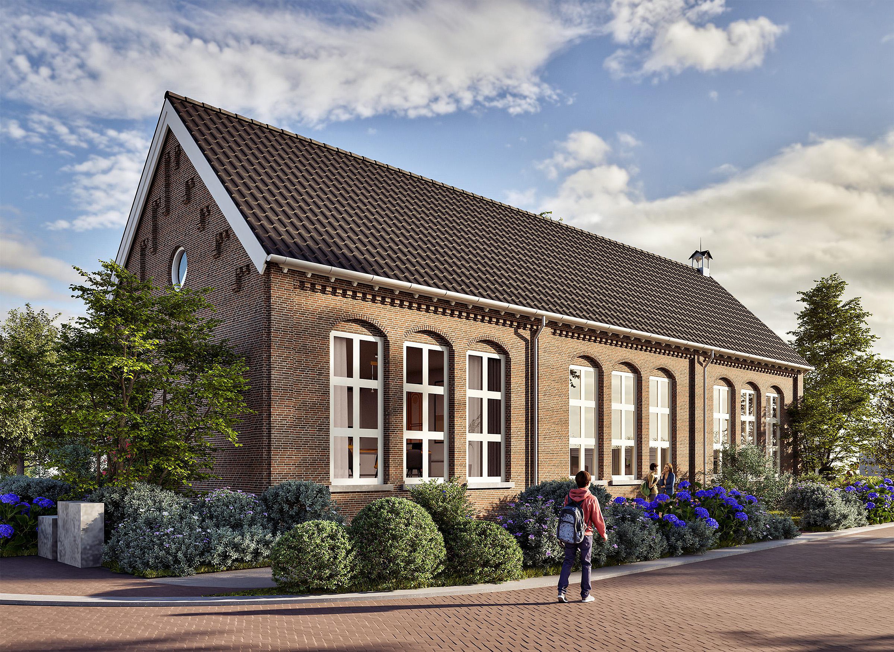 De warmte en het vakmanschap van 1891 worden gecombineerd met het compromisloze comfort en de duurzaamheid van nu. Rondom ontstaat een intiem woonensemble rond een groen hofje, precies waar vroeger het schoolplein lag. Een plek voor een praatje bij de voordeur, waar bewoners samenkomen en waar rust en karakter samen gaan.