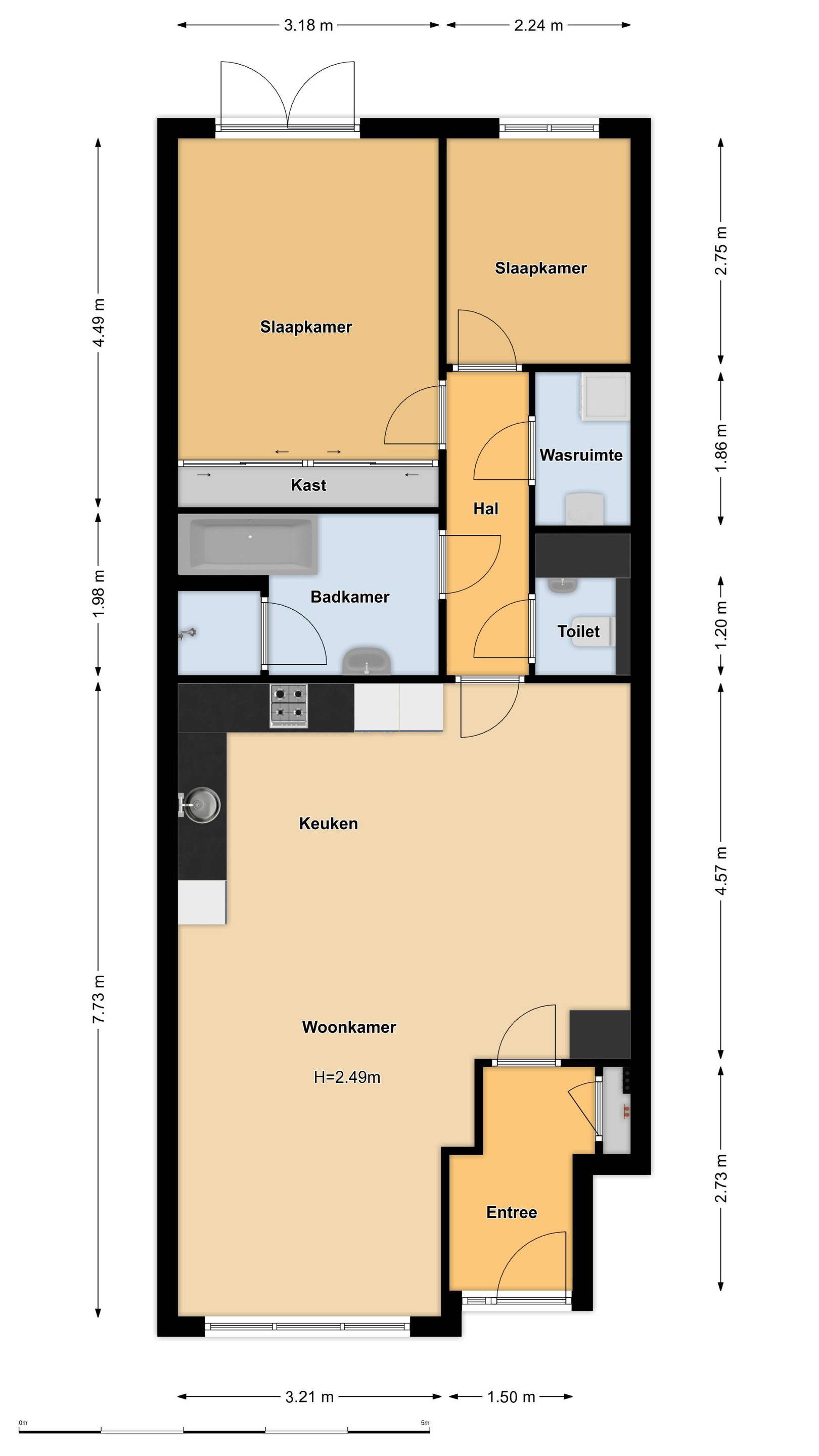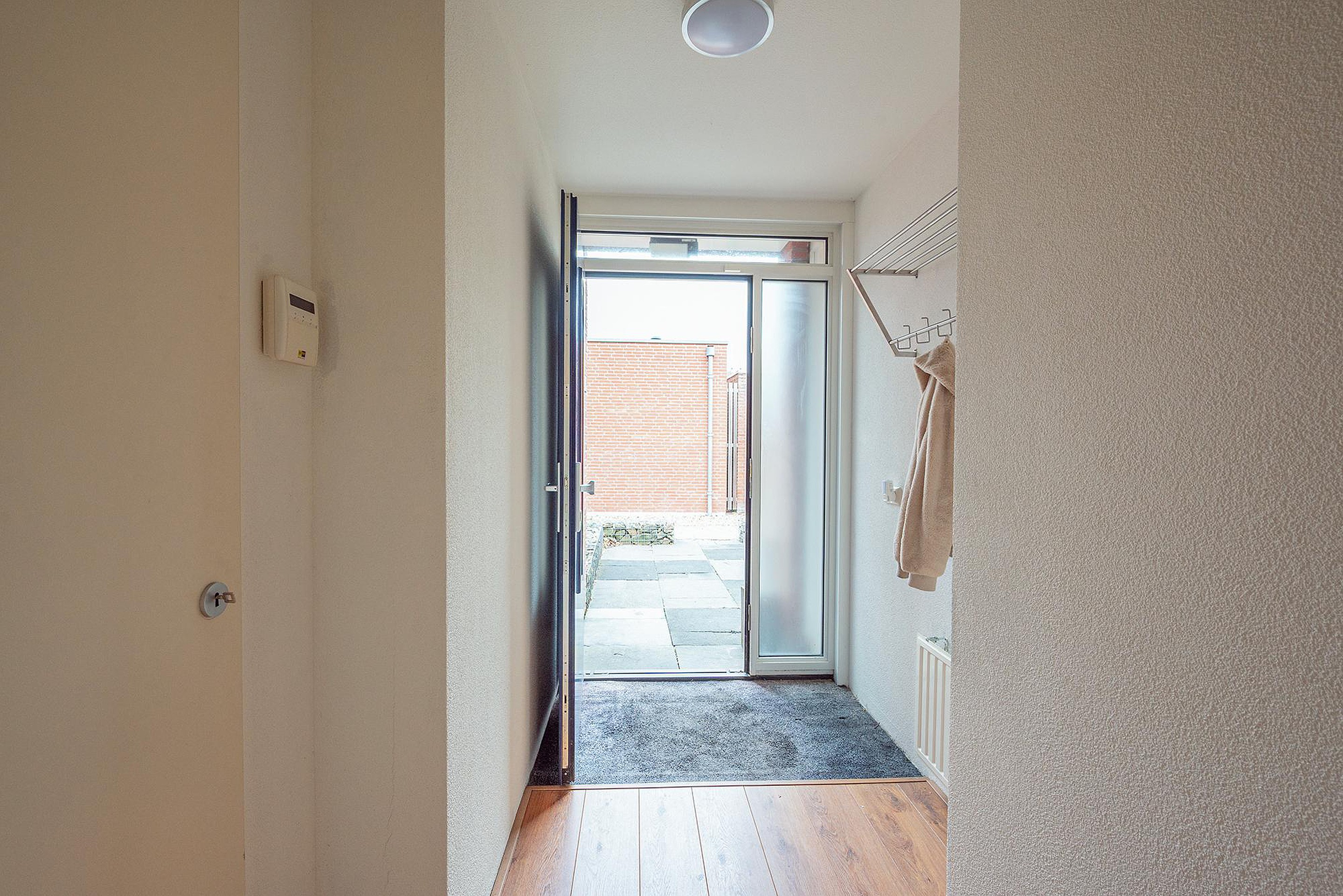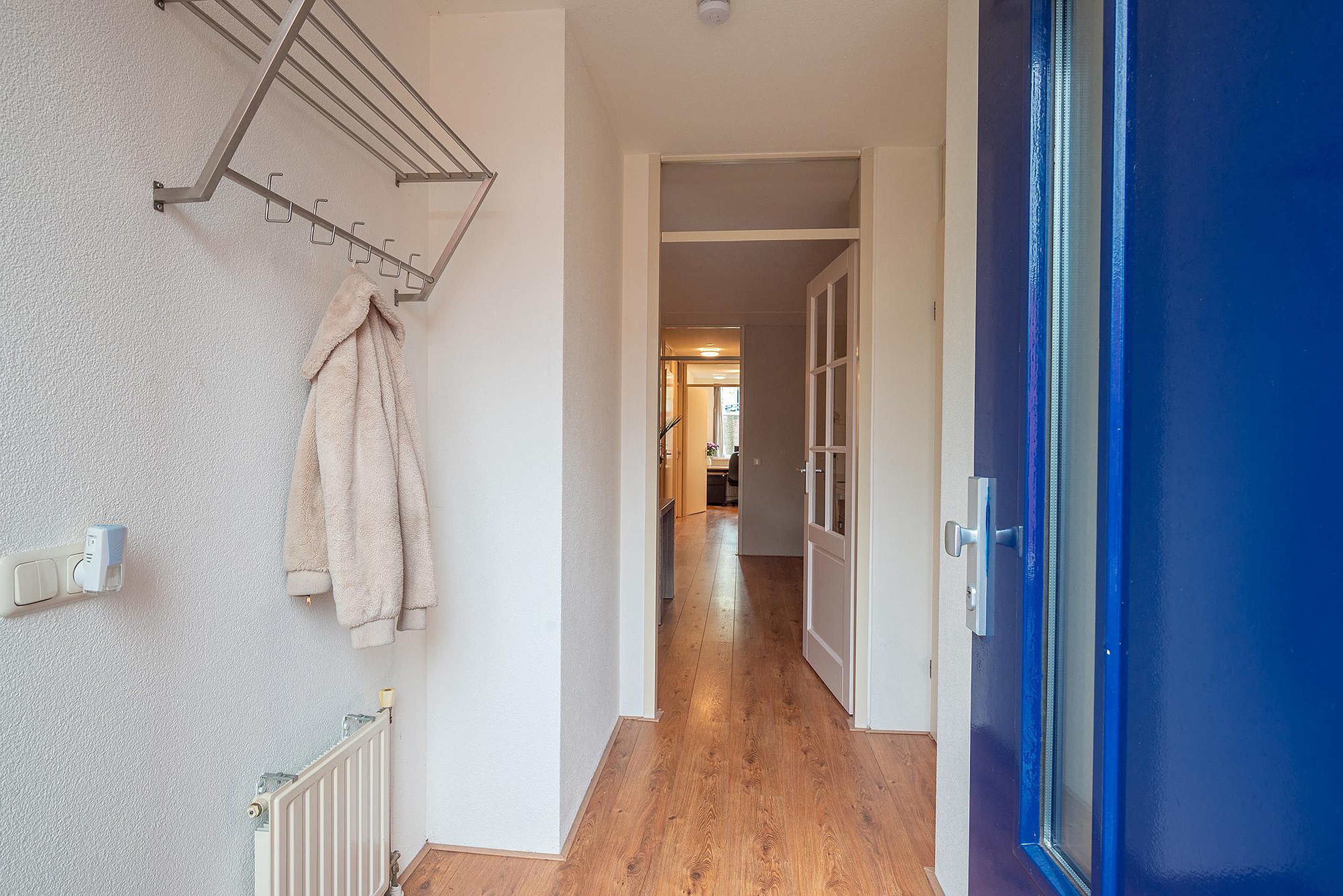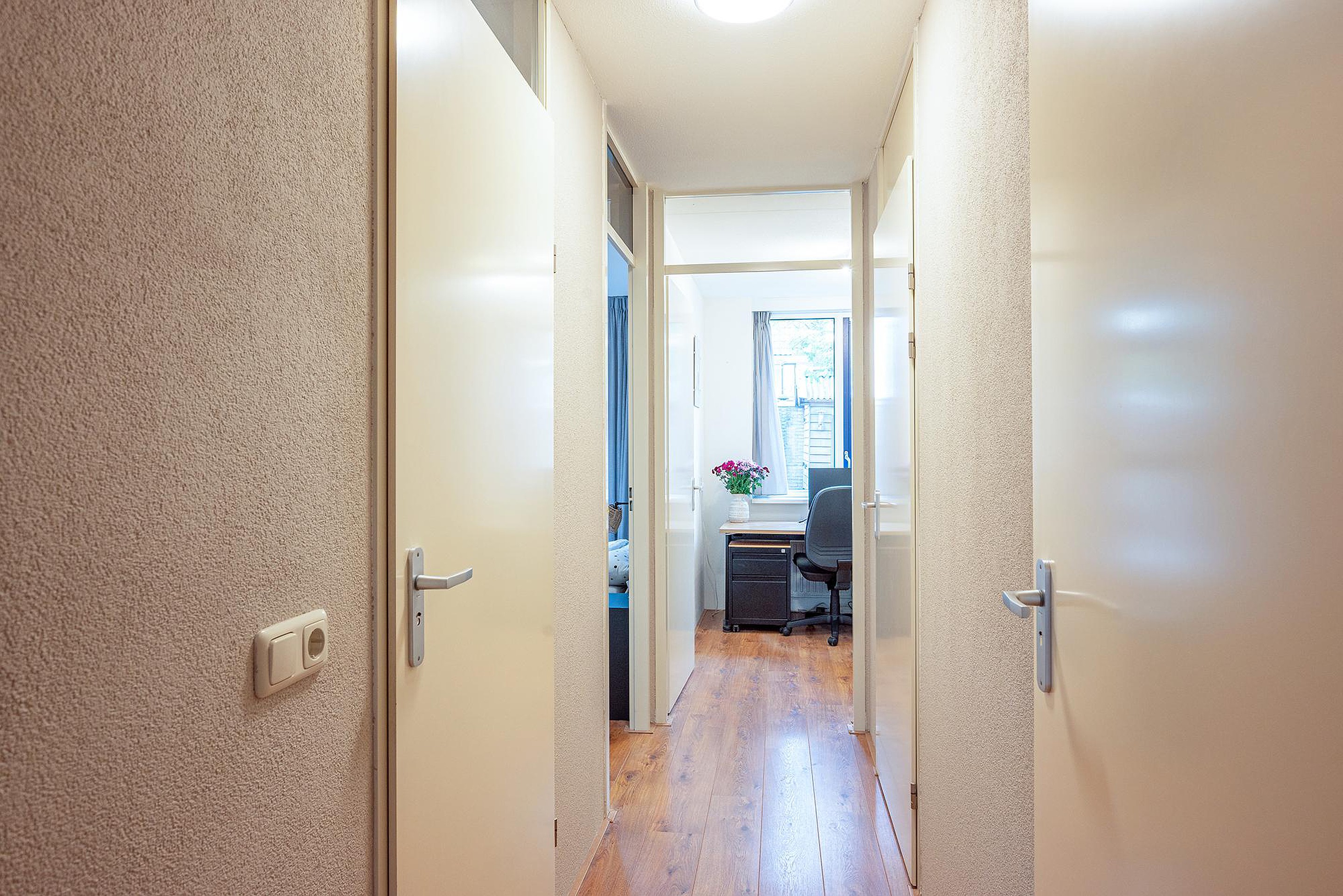 Vanuit de woonkamer een deur naar de gang met toegang tot de overige vetrekken. Twee ruime slaapkamers, toilet, badkamer en was-/stookruimte.